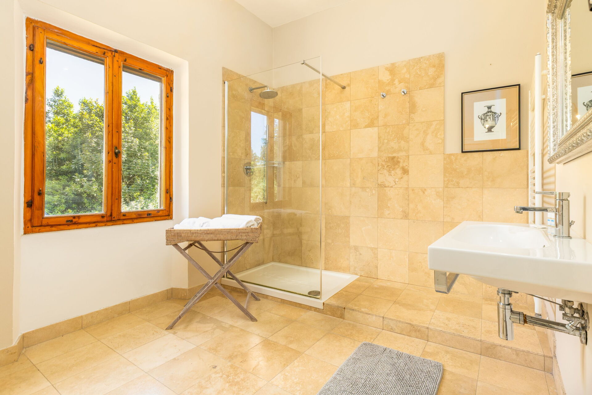 1st floor: air-conditioned double bedroom with ensuite bathroom with shower, large living-room with fireplace (not working), bedroom with French bed, 3 double bedrooms with air conditioning and ensuite bathroom with shower, twin-bedded room (air conditioning) with ensuite bathroom with shower.