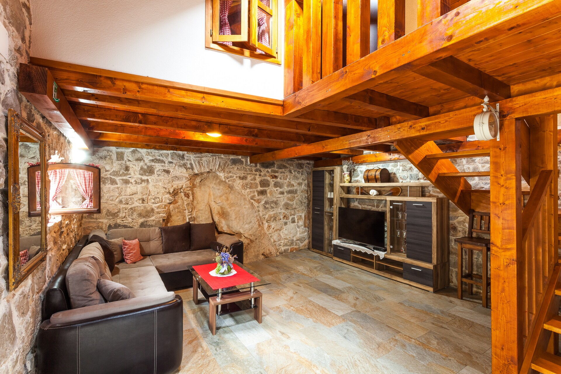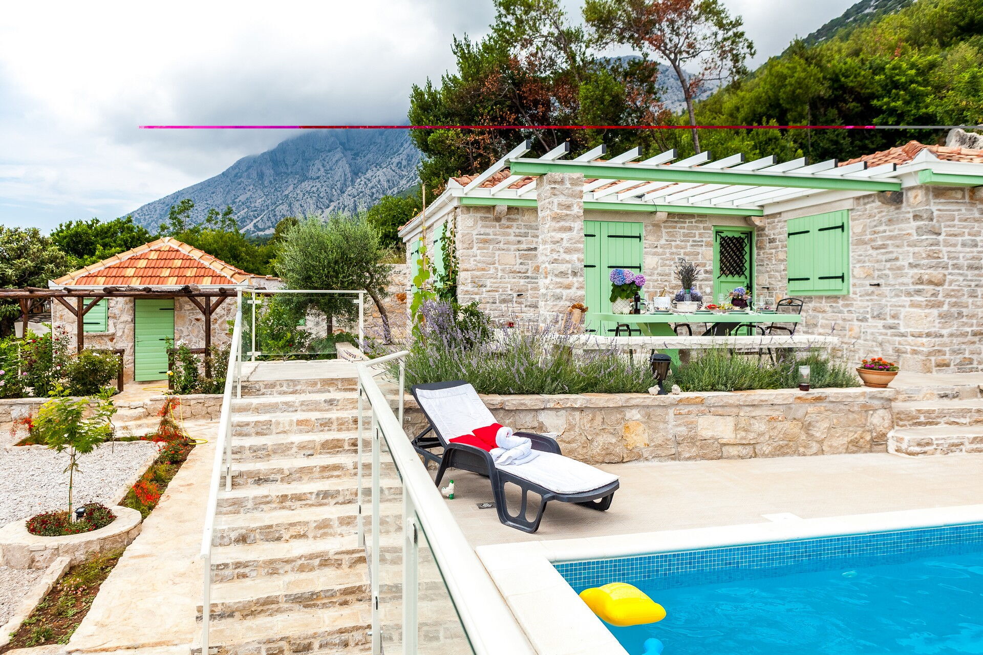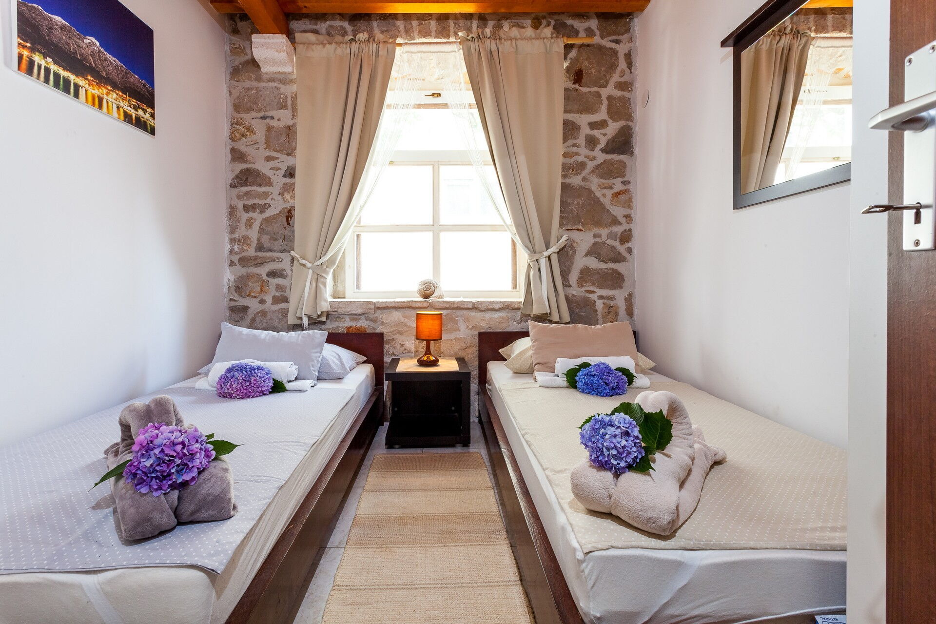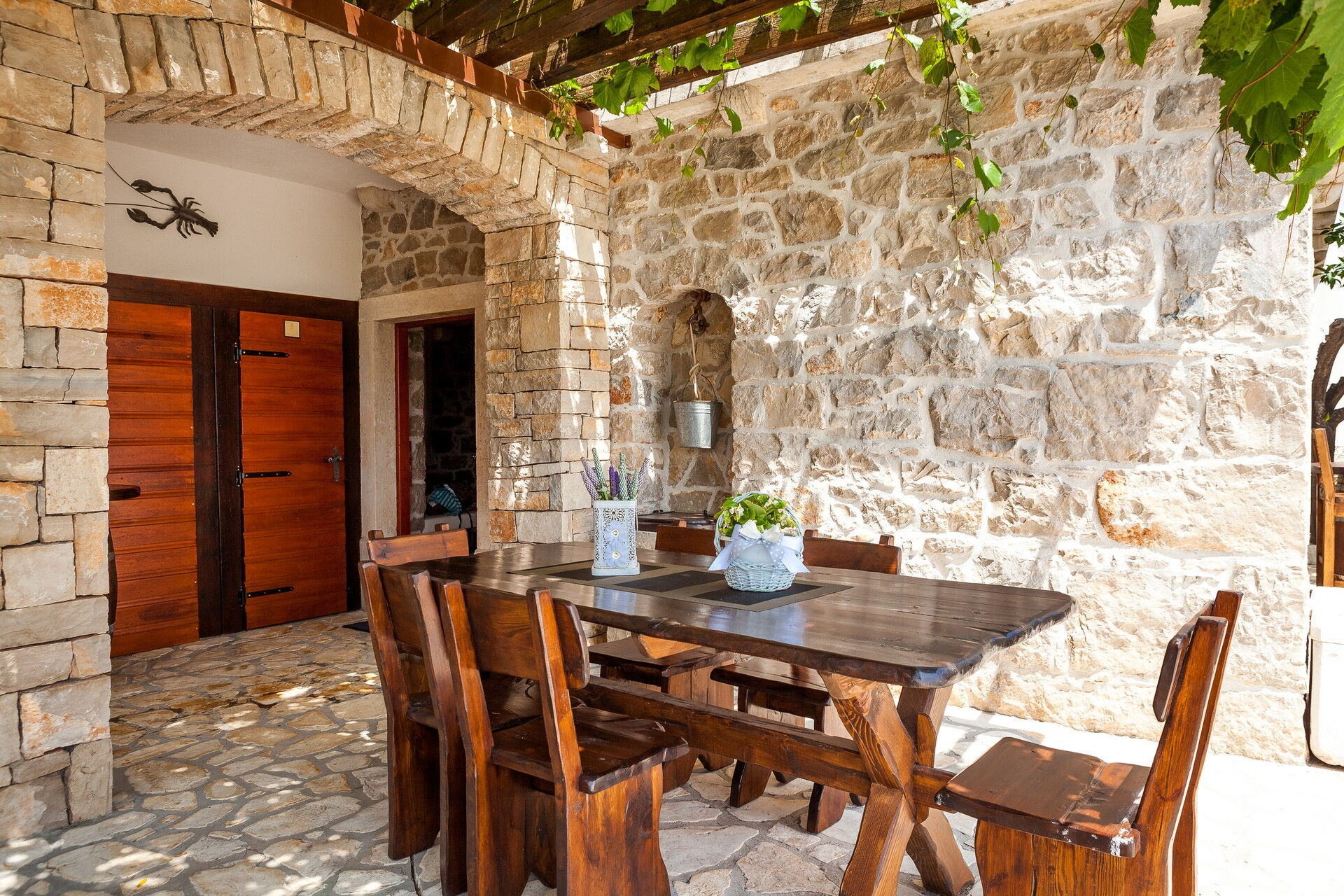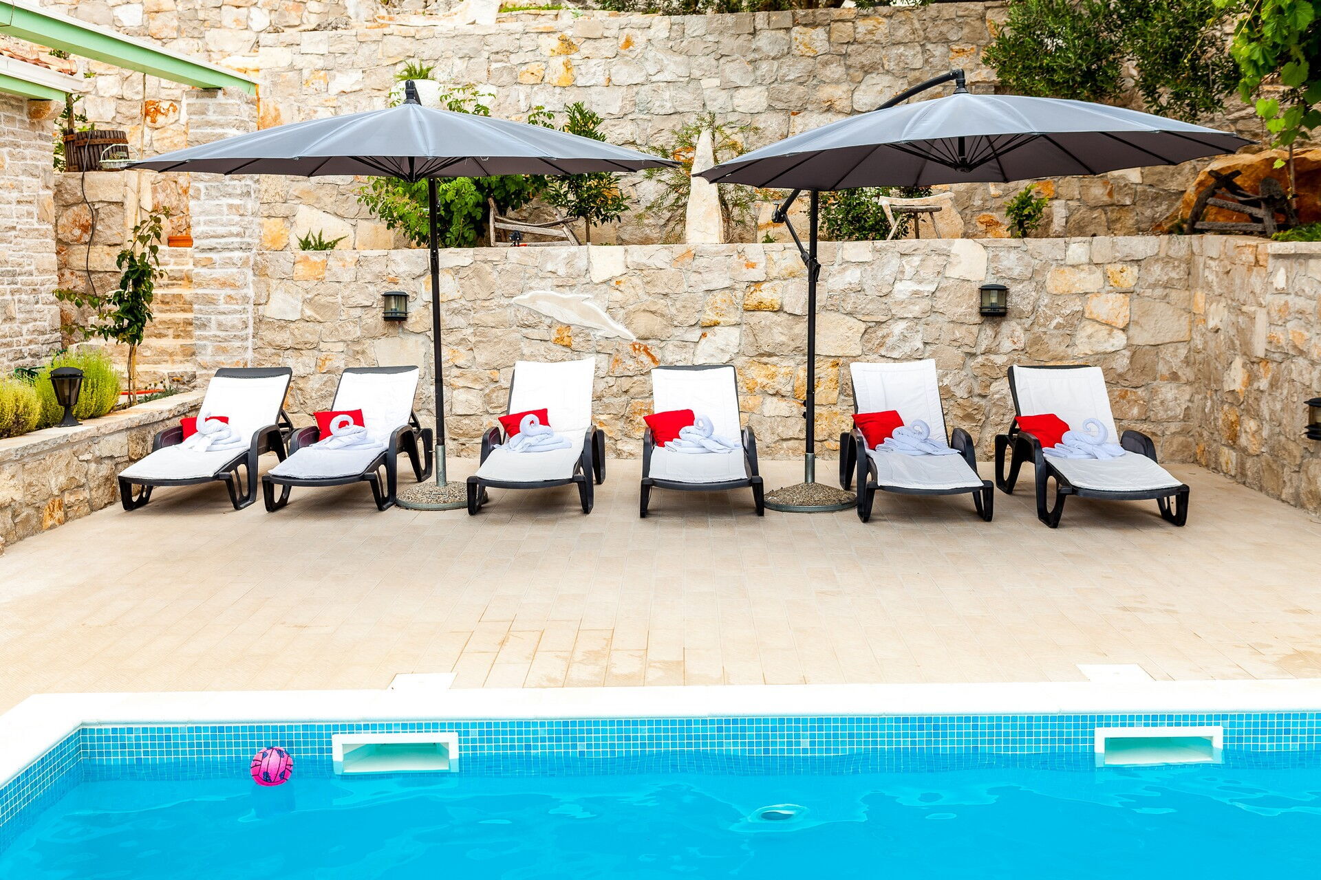 This exclusive vacation villa rental is made up of 3 apartments and can accommodate up to 14 people. The hamlet’s special feature is stone, which was used to build all the house walls, and pave the entire outdoor area. Two of the three apartments are old Dalmatian houses whose interiors have been renovated, while keeping their original character intact.