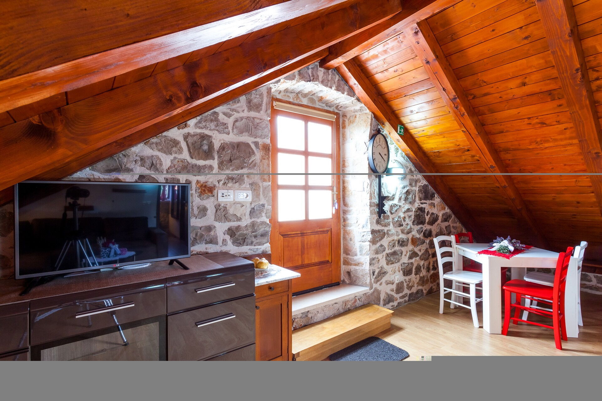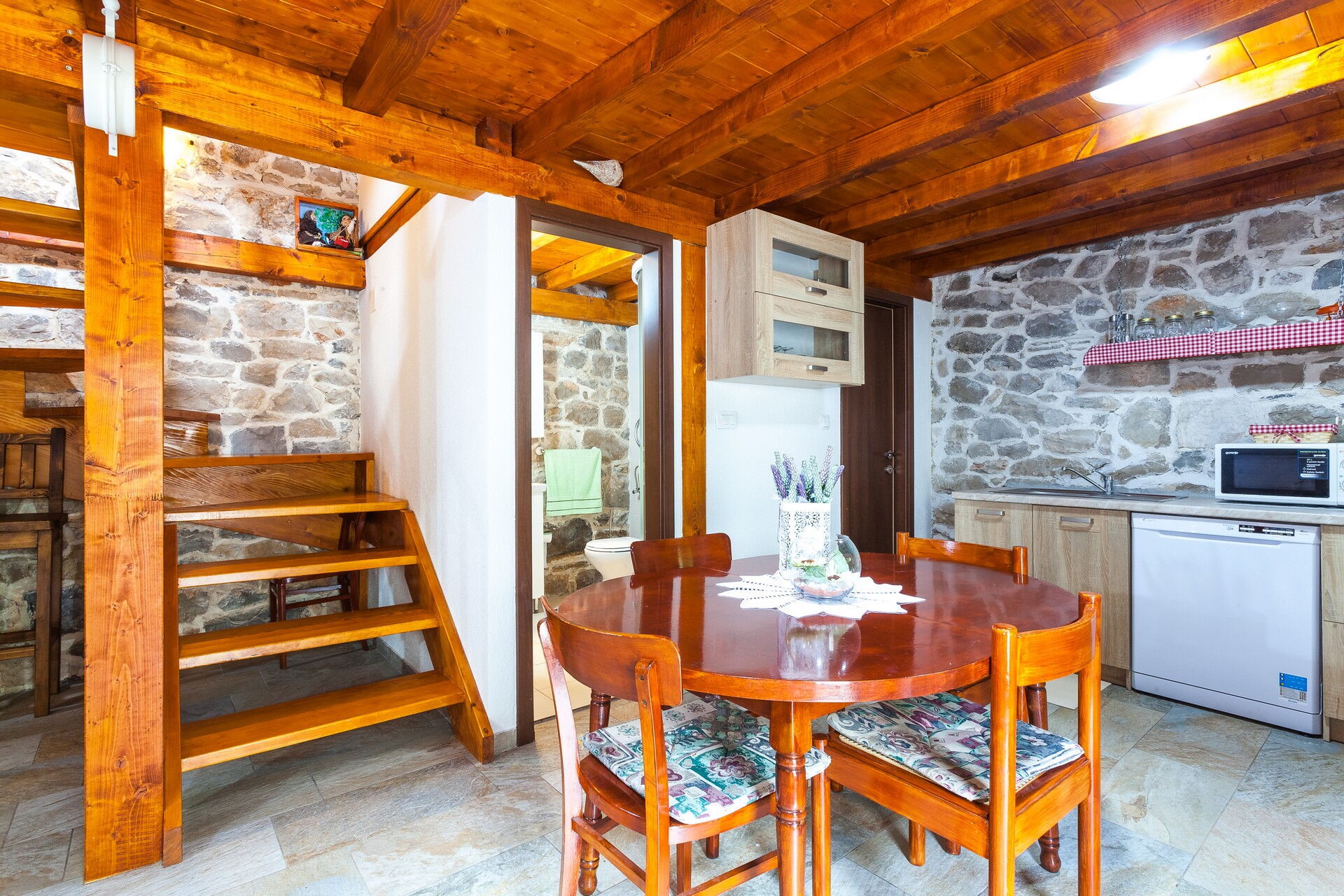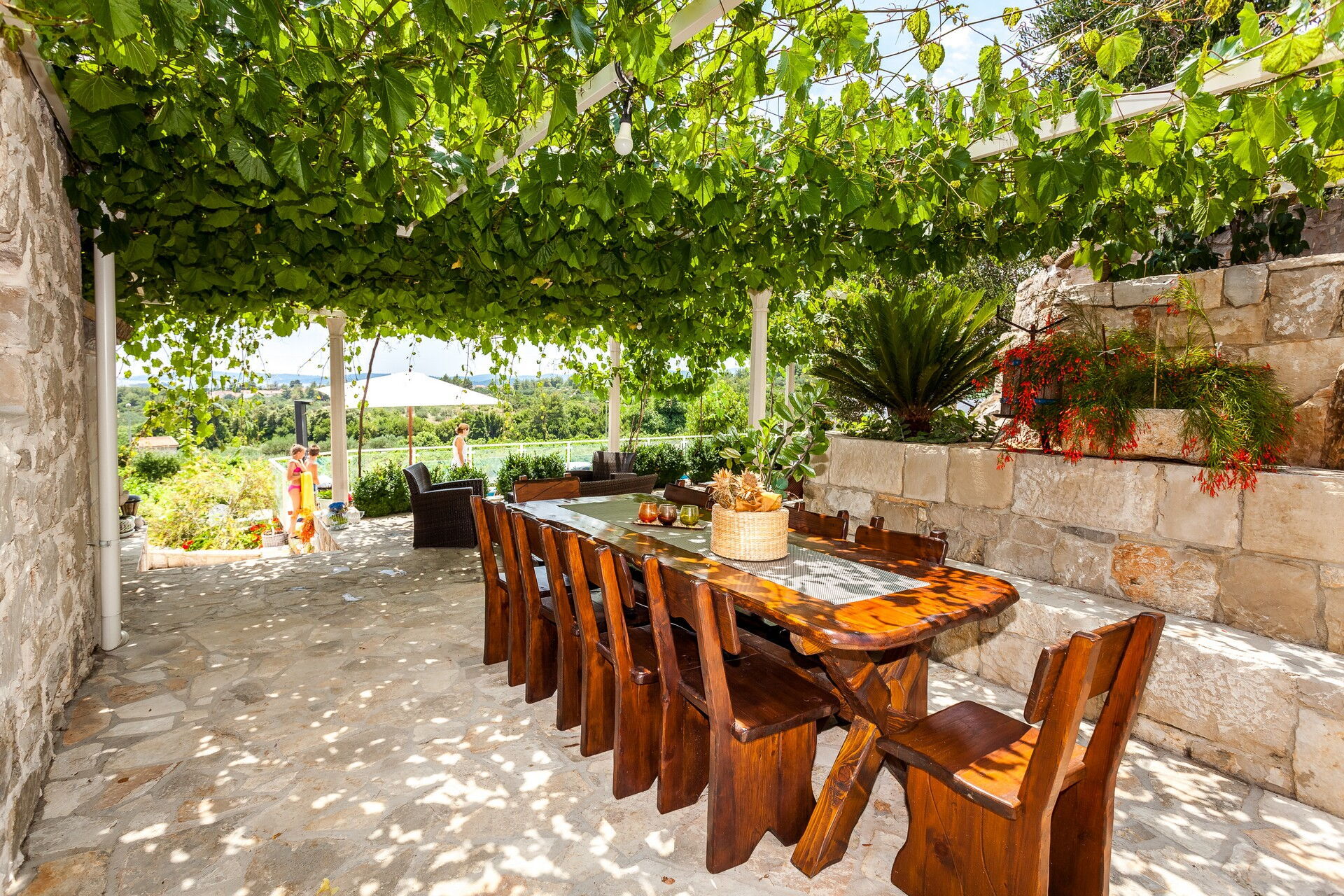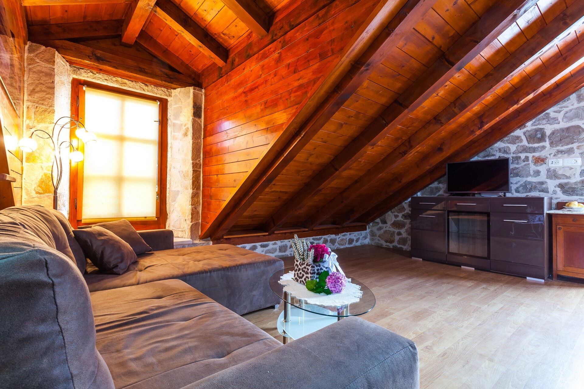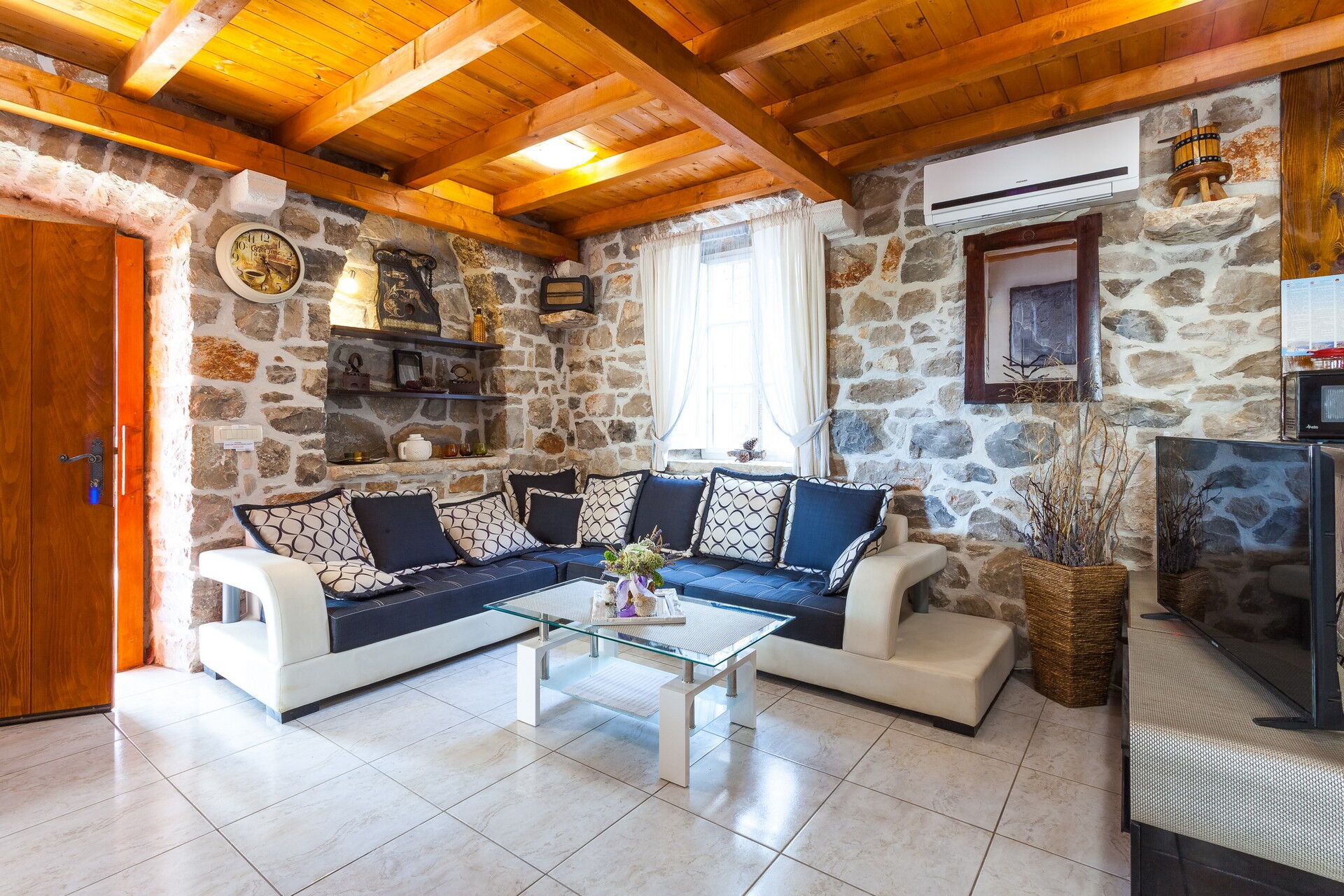 This exclusive vacation villa rental is made up of 3 apartments and can accommodate up to 14 people. The hamlet’s special feature is stone, which was used to build all the house walls, and pave the entire outdoor area. Two of the three apartments are old Dalmatian houses whose interiors have been renovated, while keeping their original character intact.