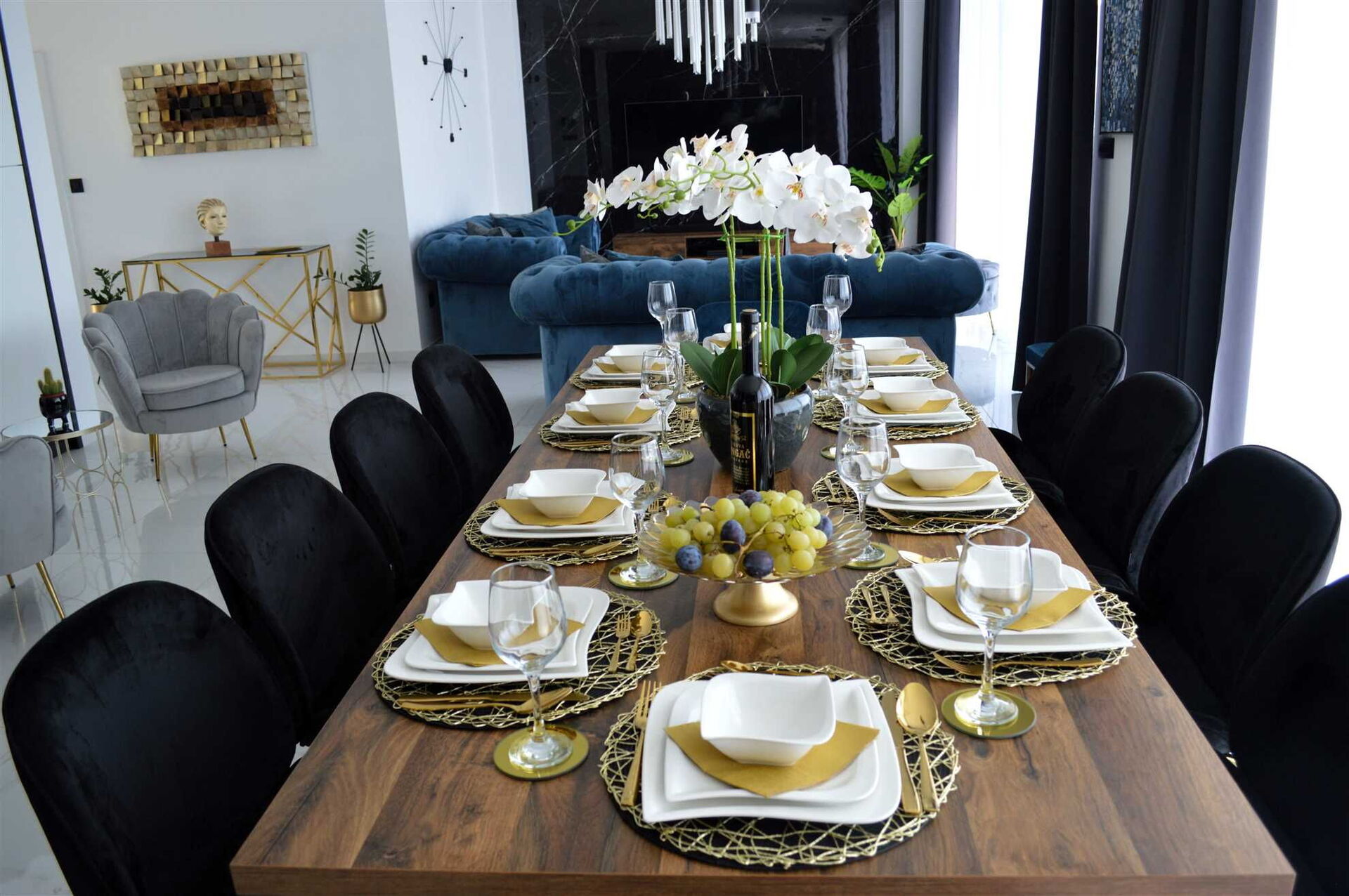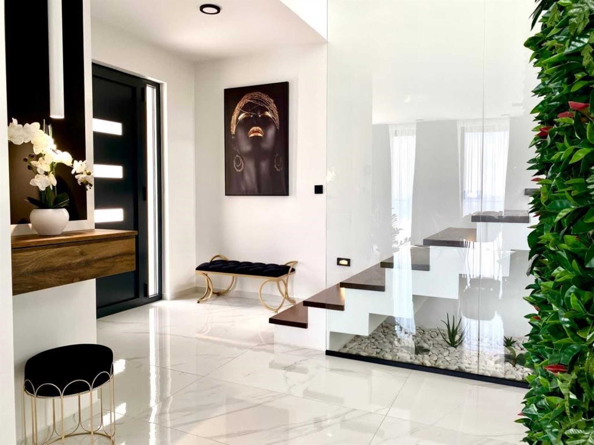 The bright, spacious interiors offer prestigious furnishings. This villa rental also has a small gym with garden access located below pool level, if you would like to stay in shape on your vacation.