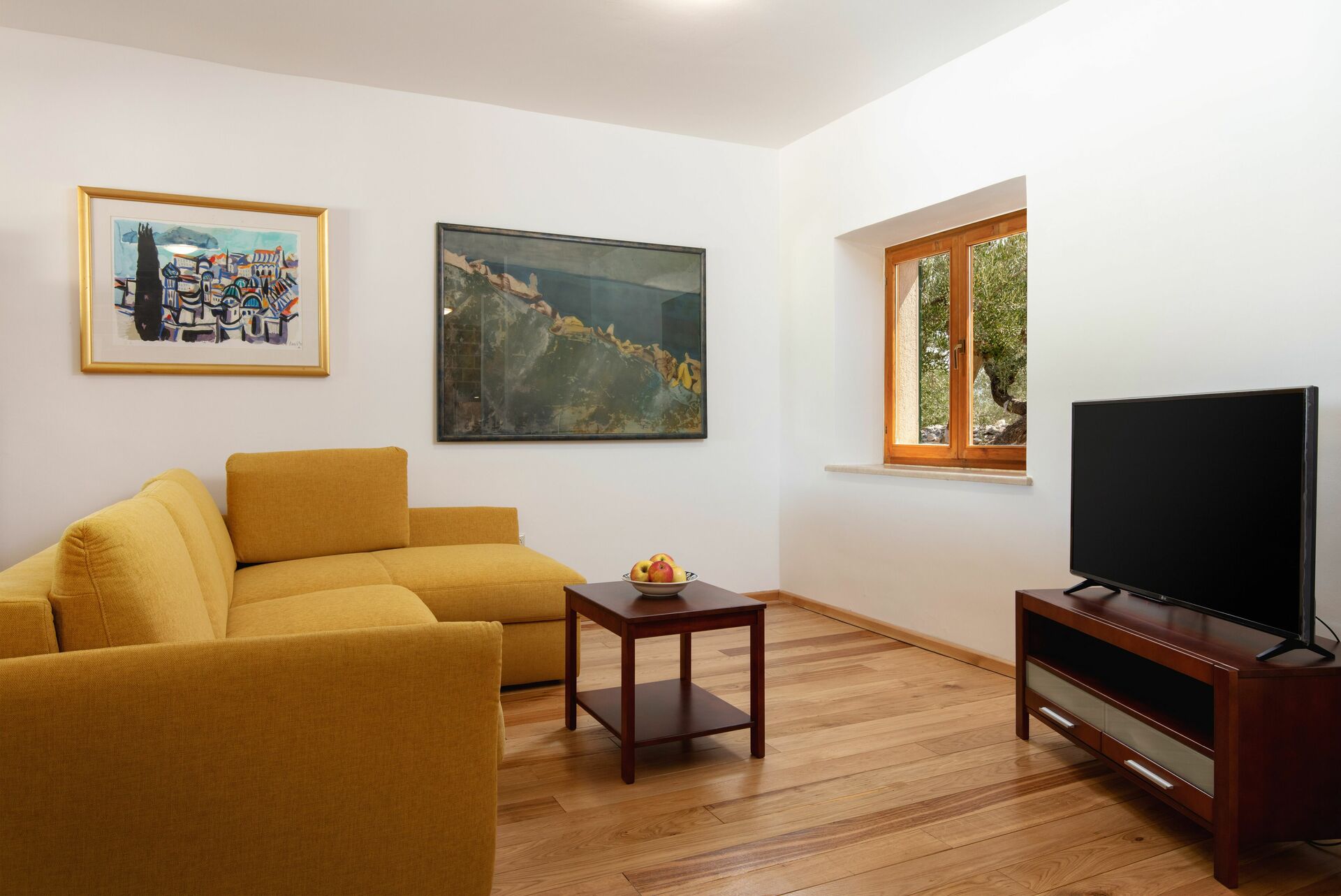Outside, Villa Dubrava is surrounded by the natural landscape of inland Brac Island. The expansive garden is lush with plants and trees, and hosts a splendid private pool with umbrellas and sun loungers. This is the perfect place to relax in utmost privacy on hot days! Under a beautiful olive tree there is an outdoor dining area with table and chairs for enjoying al fresco meals together with family and friends.