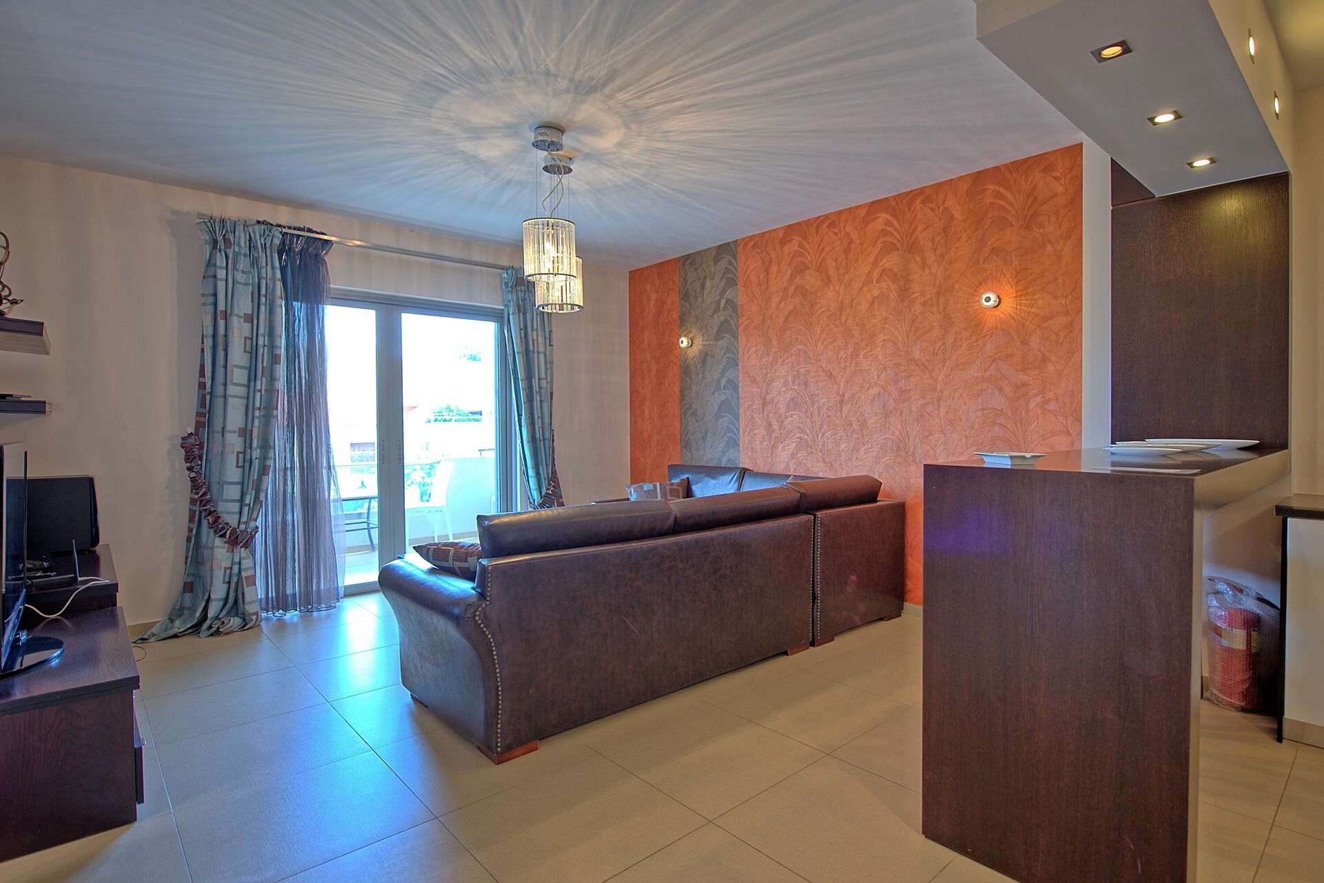 Distances: sea 100 meters away, Agia Marina (shops of all kinds) 100 meters, Cabana Mare Beach Club 300 meters, Chania 11 km, airport 30 km away.