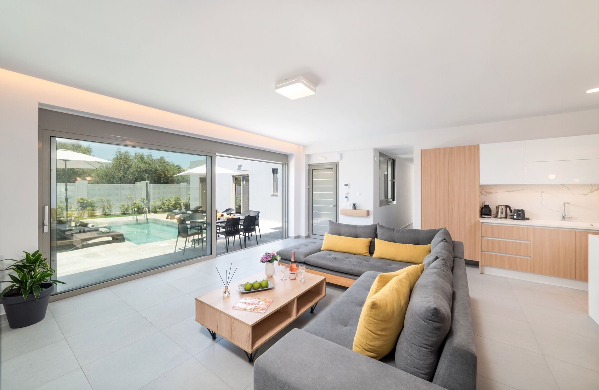 This villa was very well appointed with comfortable beds, very nice bathrooms and a large living space. The location was ideal - took about 7 mins to leisurely stroll to the beach. It was a sandy beach with beautiful clear water and lots of nice beach bars and tavernas. Tavernas and restaurants literally a 2-3 minute stroll away and yet the villa felt peaceful.