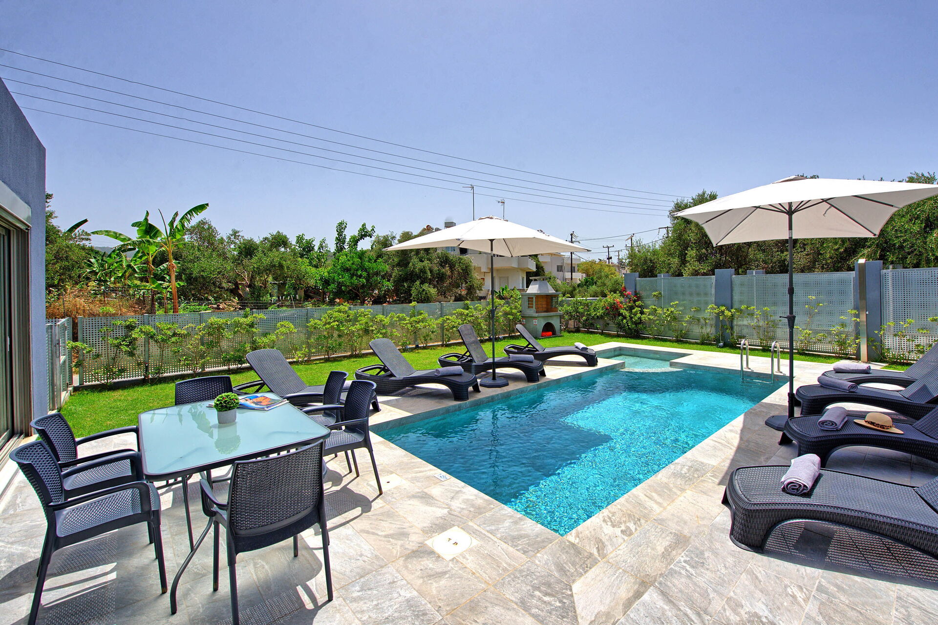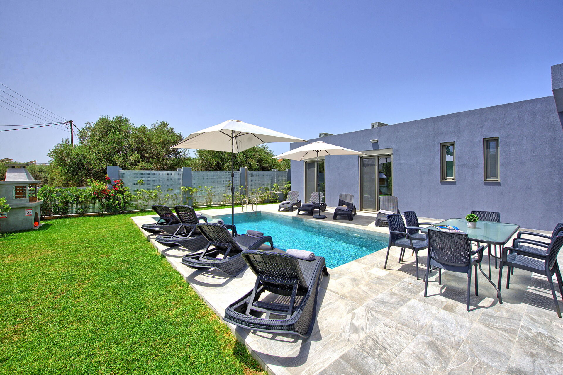 Villa Ampela is a new and modern independent villas for rent, both with private garden and private swimming pool, at just 600 metres from the seaside on the beautiful Island of Crete.