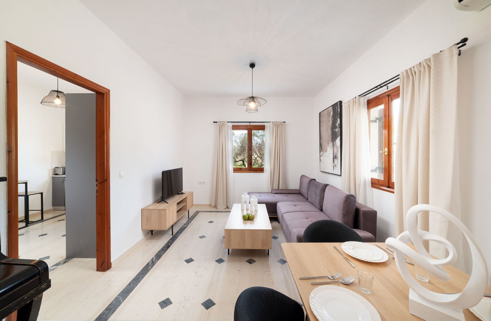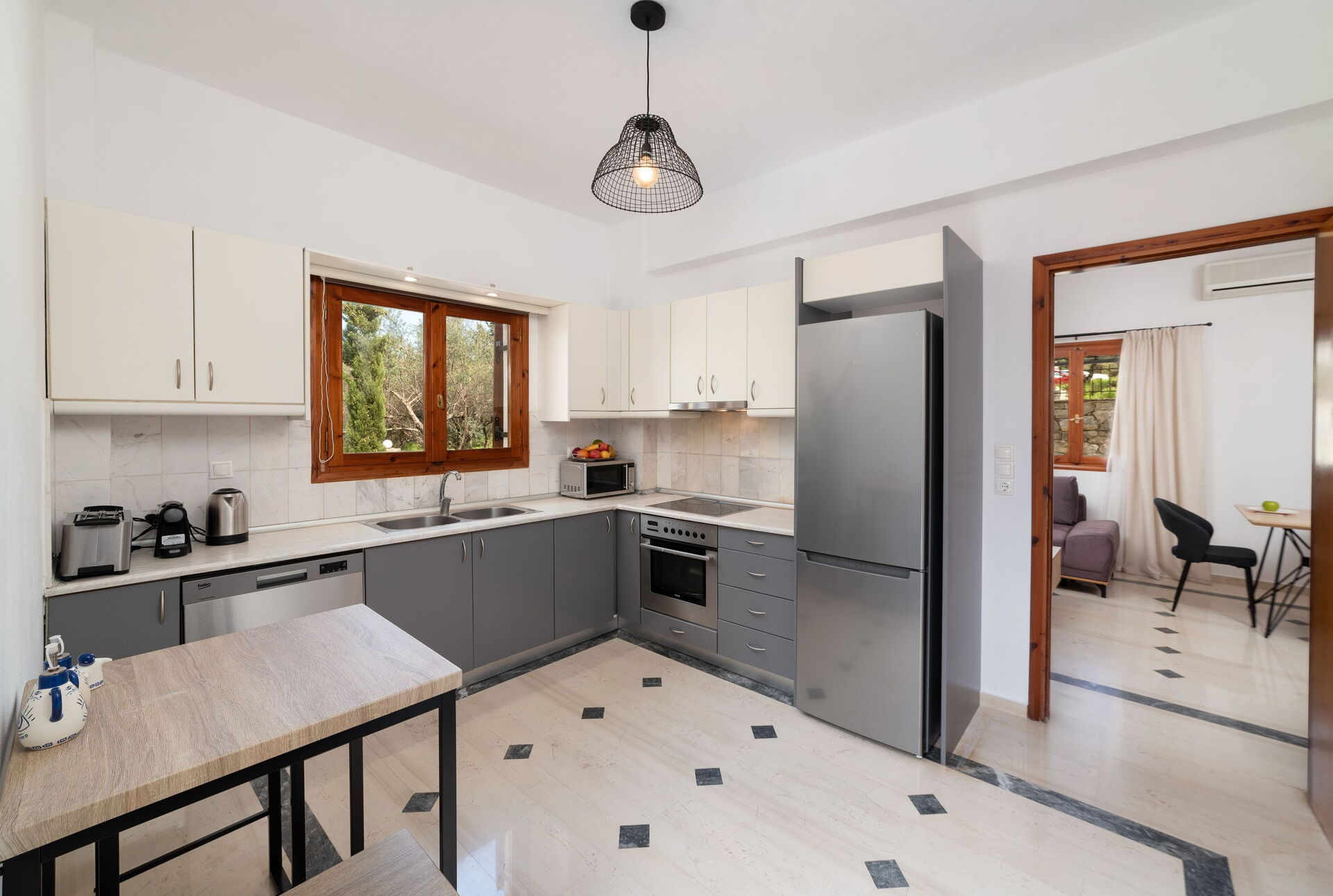 Distances: Vrisses (shops of all kinds) 2,5 km, Vamos 8 km, Georgioupolis (beaches, and shops of all kinds) 8 km, Almyrida 14 km, Rethymno 35 km, Chania a 38 km, airport 42 km, famous Knossos Palace 110 km, Heraklion 111 km.