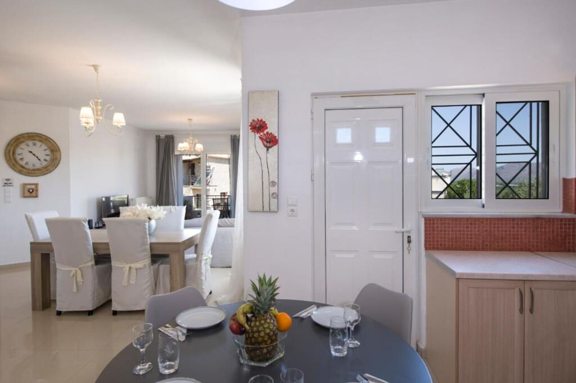 This property lies in a residential area just 5 km from the sea and only 12 km from the historic center of the beautiful town of Chania. The airport is just 3 km away.