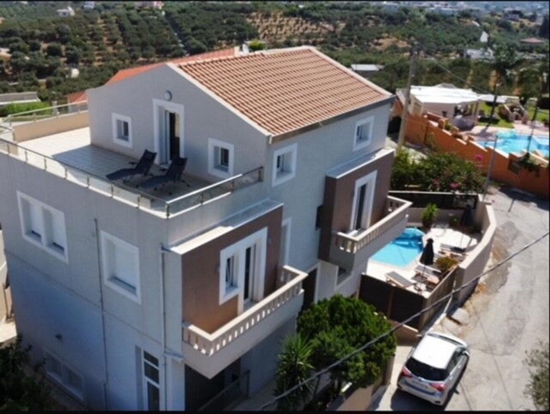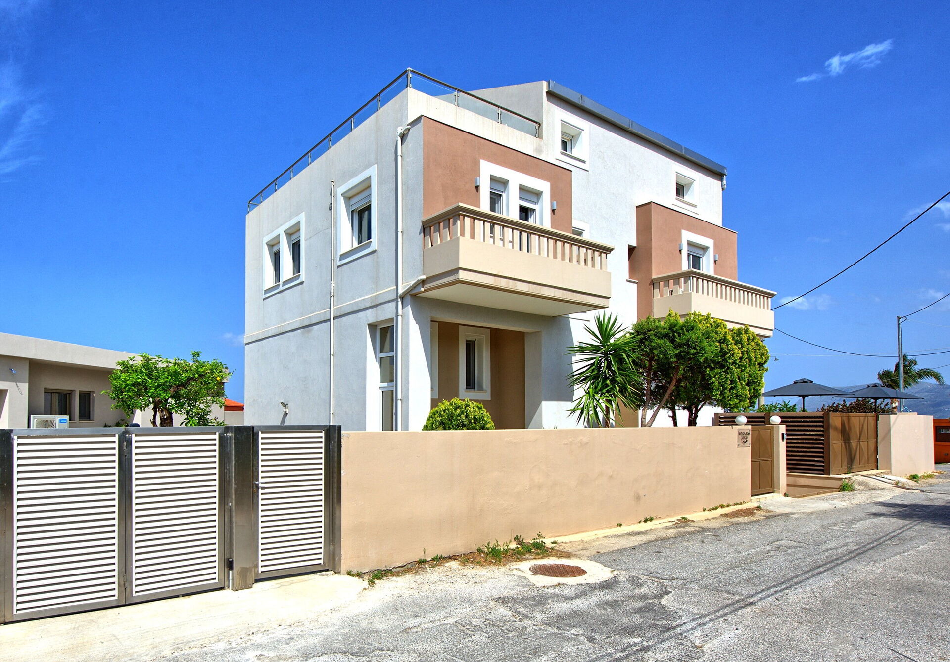 Distances: Galatas (shops of all kinds) 2 km, Agioi Apostoli (sea and beaches) 2,5 km, Chania 5 km, airport 25 km, Georgioupoli 40 km, Rethymno 40 km, Lake Kournas 45 km.