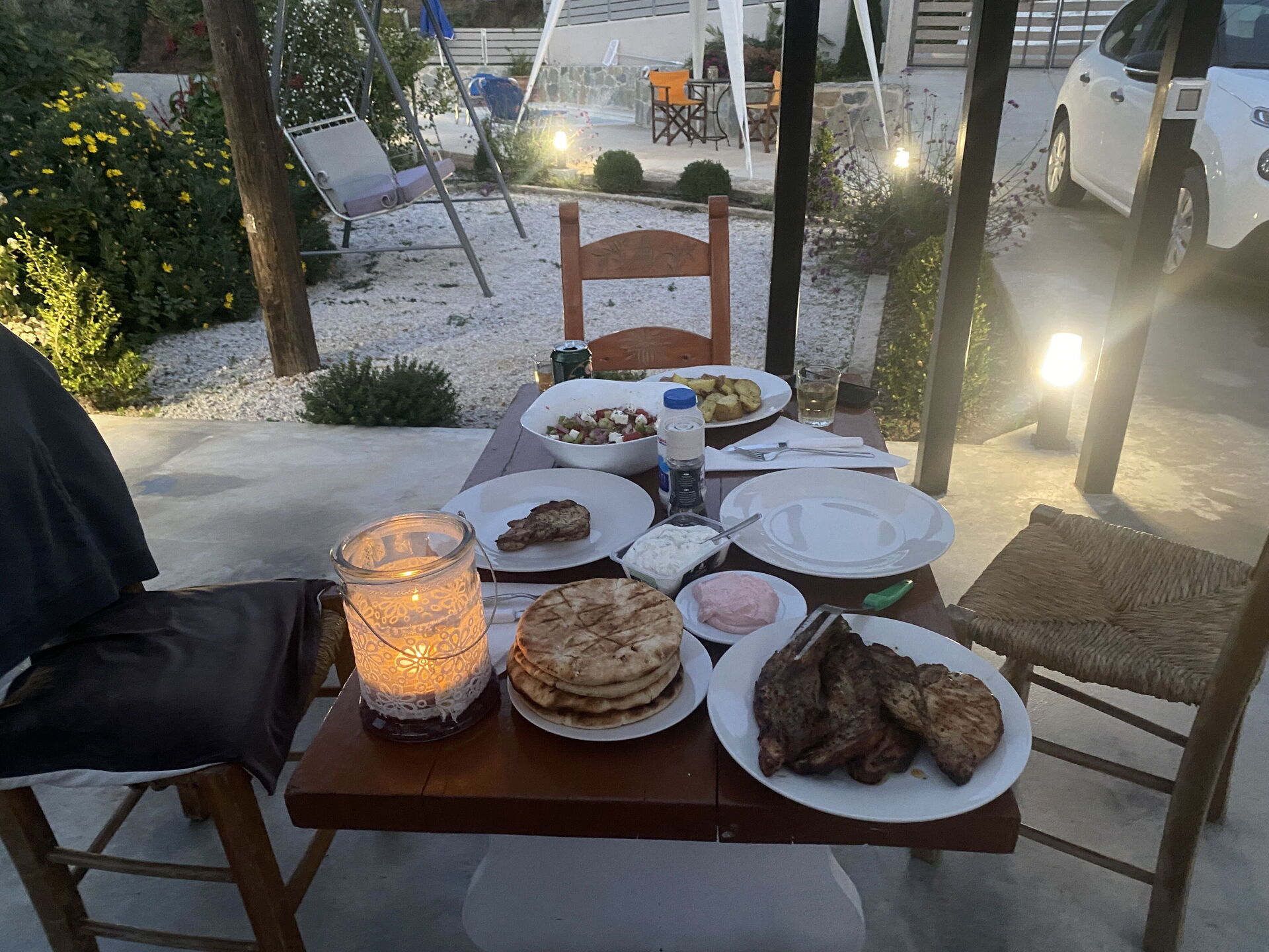 An excellent family holiday then location is extremely picturesque and surrounded by mountains. Everyday we saw the most wonderful sunset and sunrise. Sofia met us at the property, she cleaned and cooked delicious traditional food for us and completed check out, making these processes simple and personal. To enable a family to make the most of the island hiring a car is essential. We explored many beautiful beaches, ports and archaeological ruins as we were blessed with sunshine all week. I would recommend a visit for a lovely family holiday.