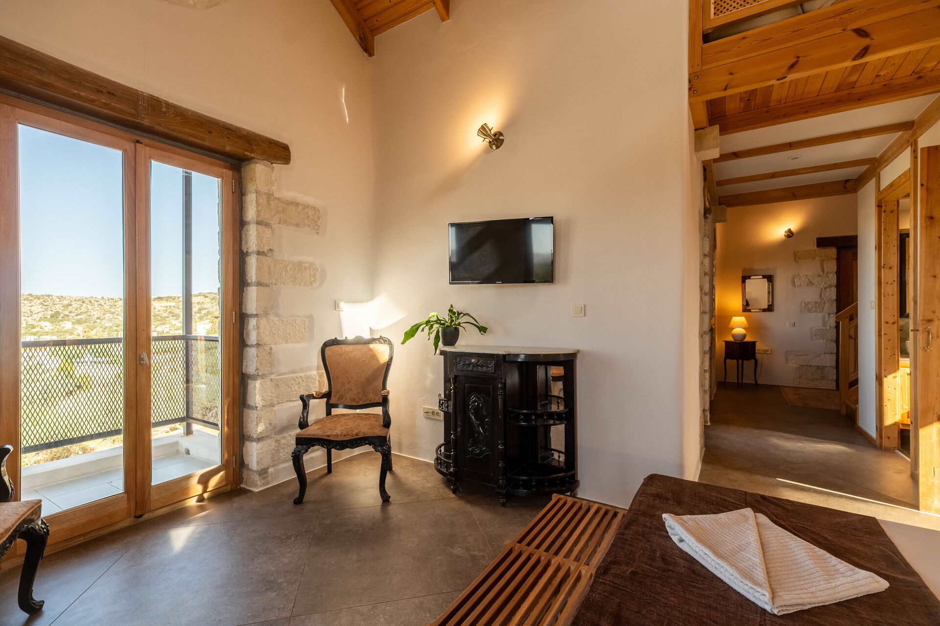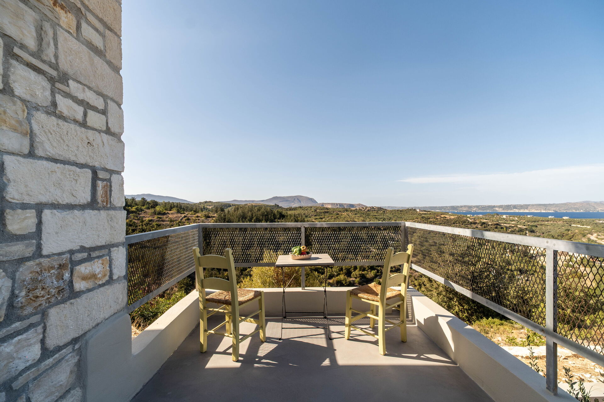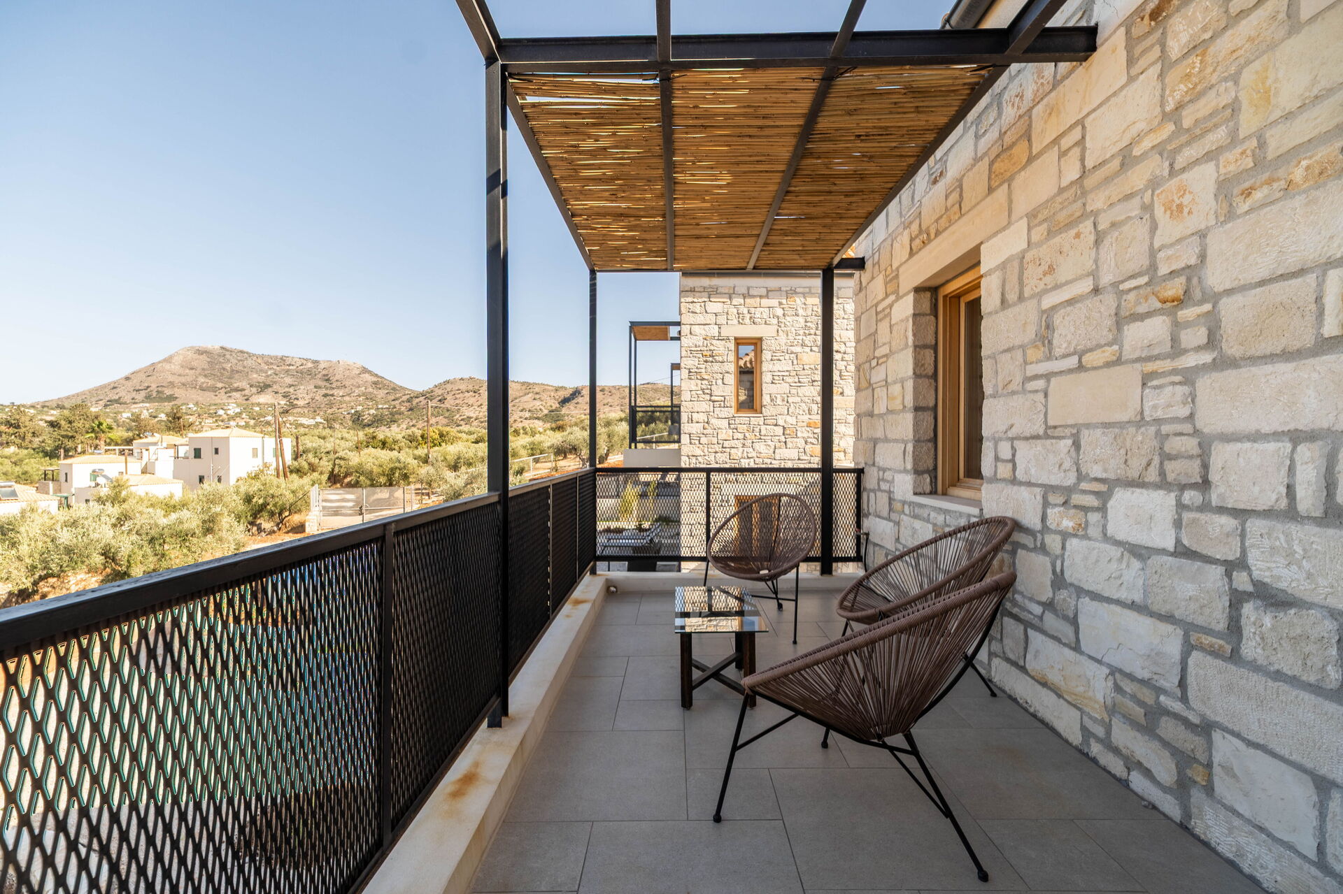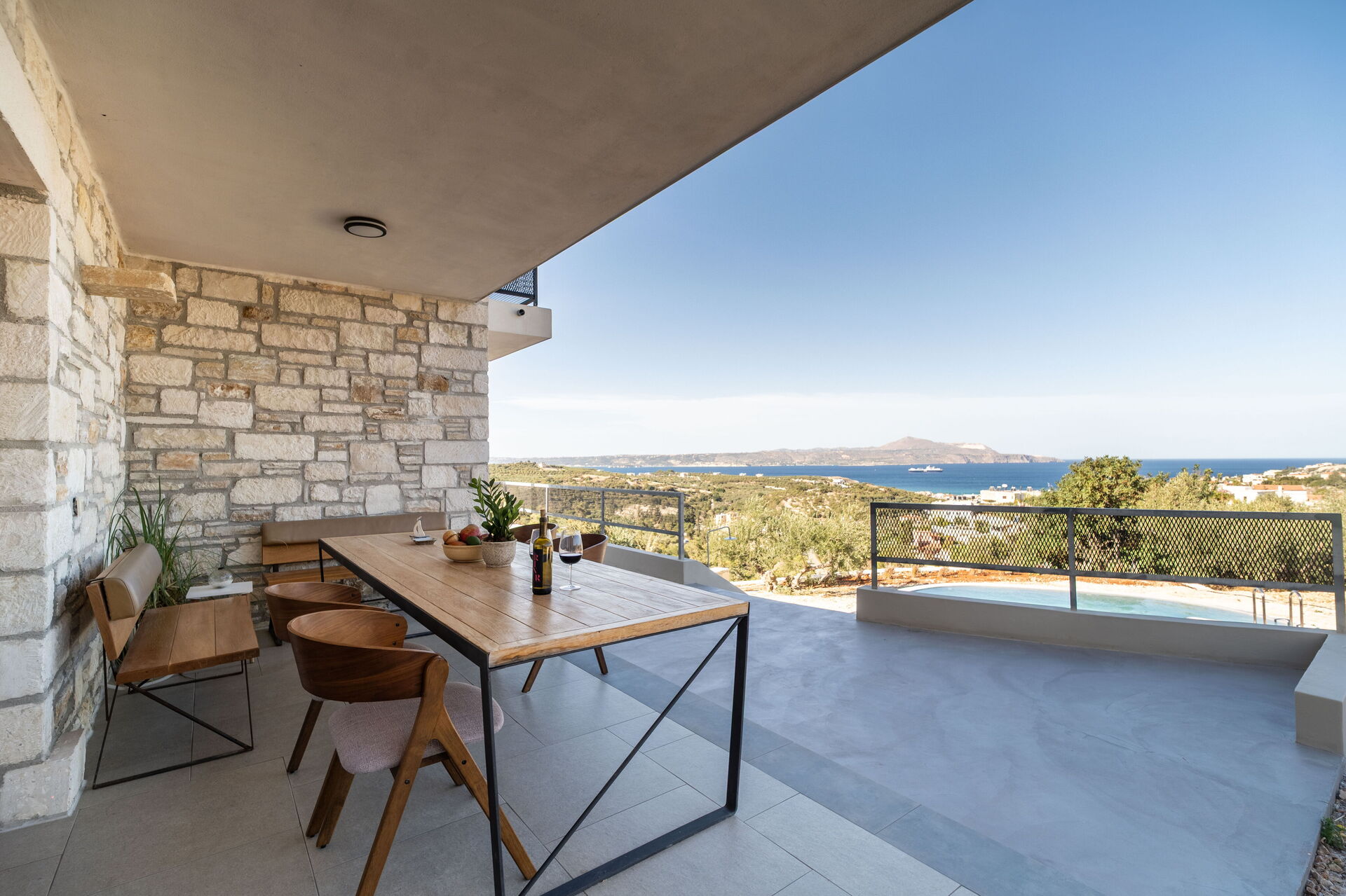 On the grounds, there is an area furnished with a barbecue and outdoor dining table, and a private pool where you can cool off on summer days and enjoy the peace and tranquility of the countryside; splendid panoramic views of Crete’s crystal clear sea are the icing on the cake.