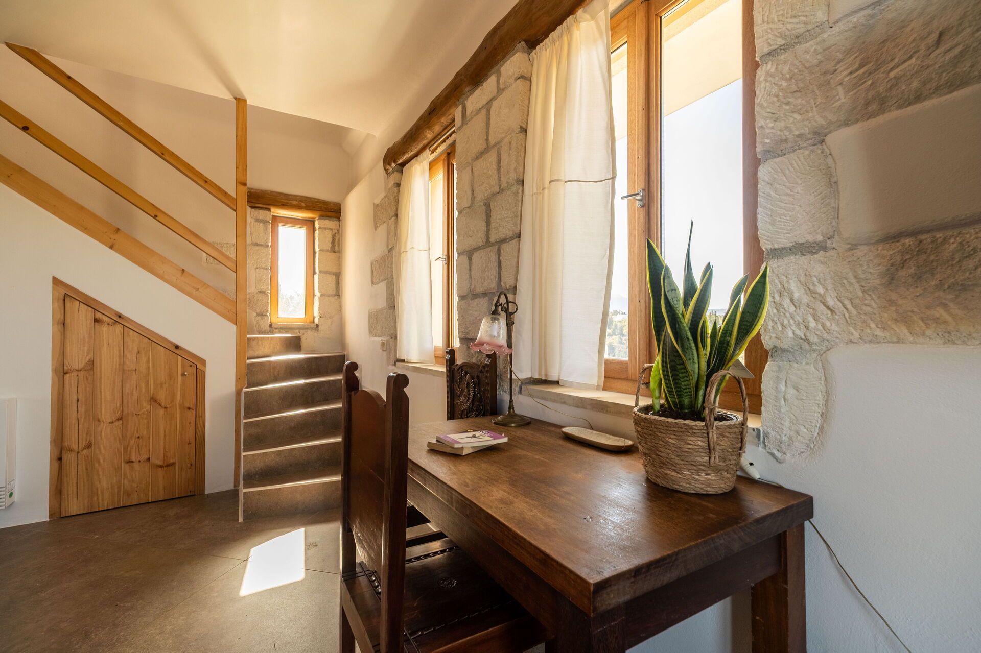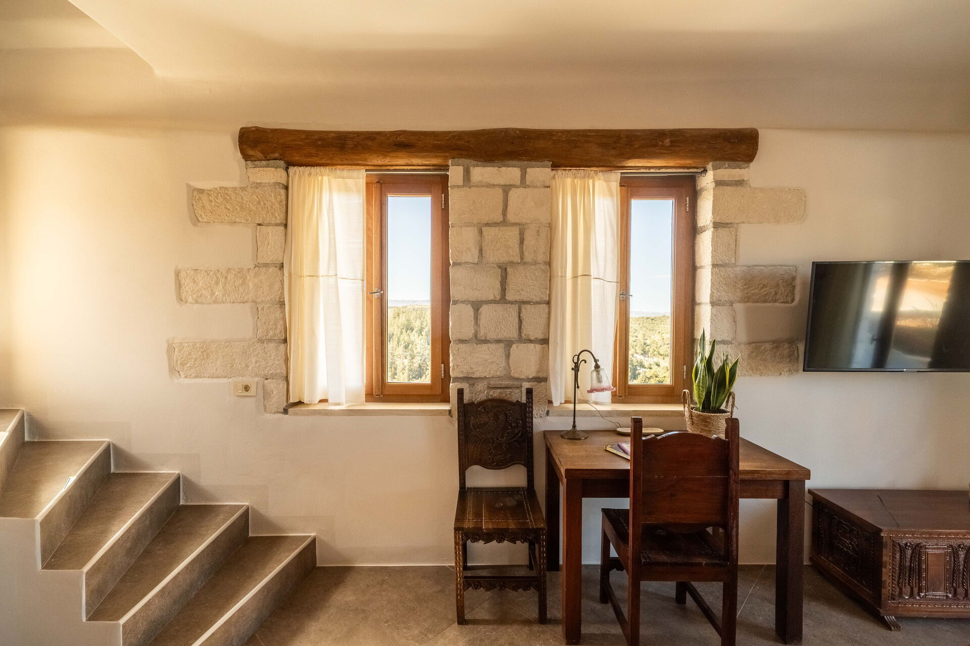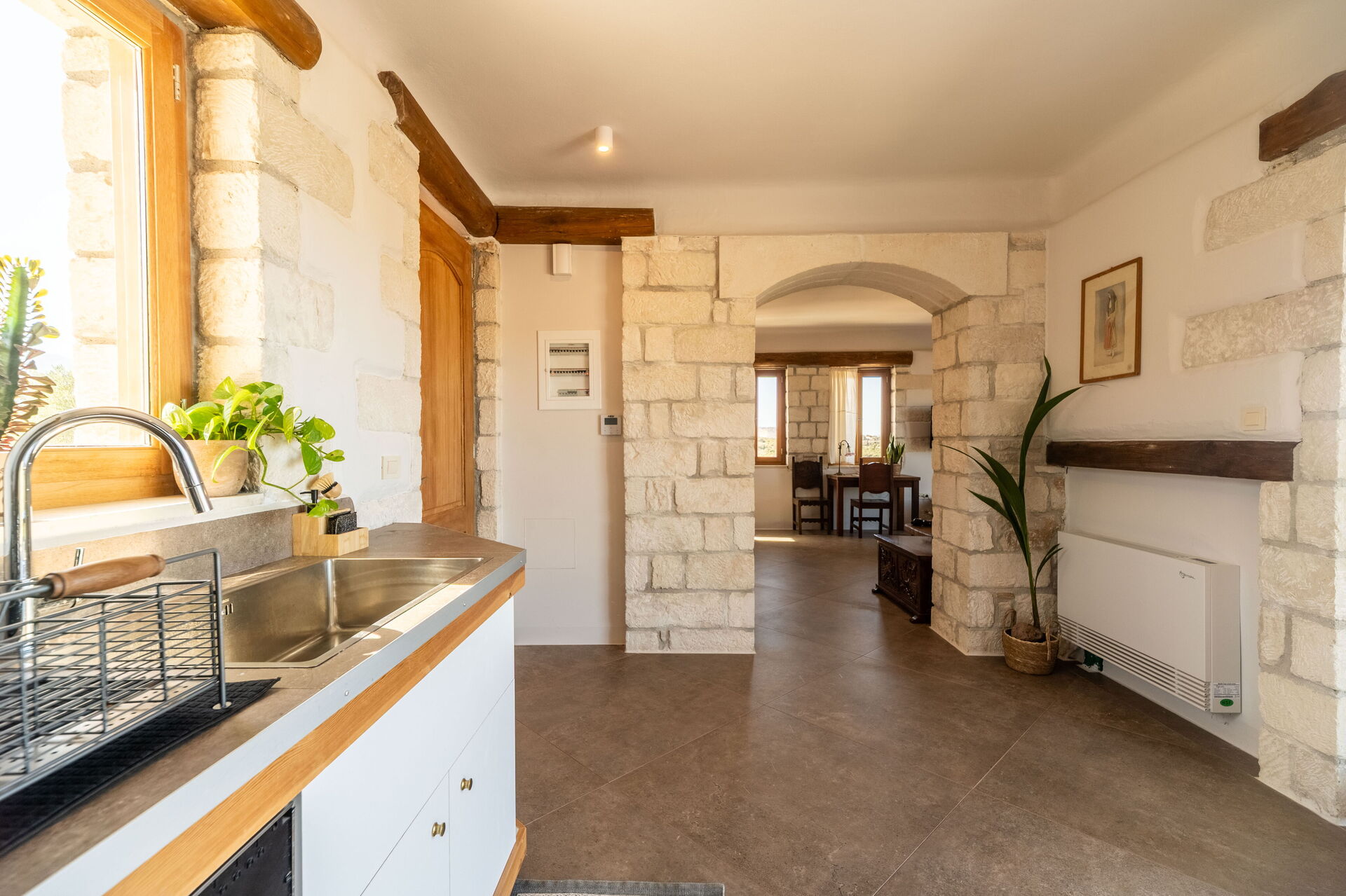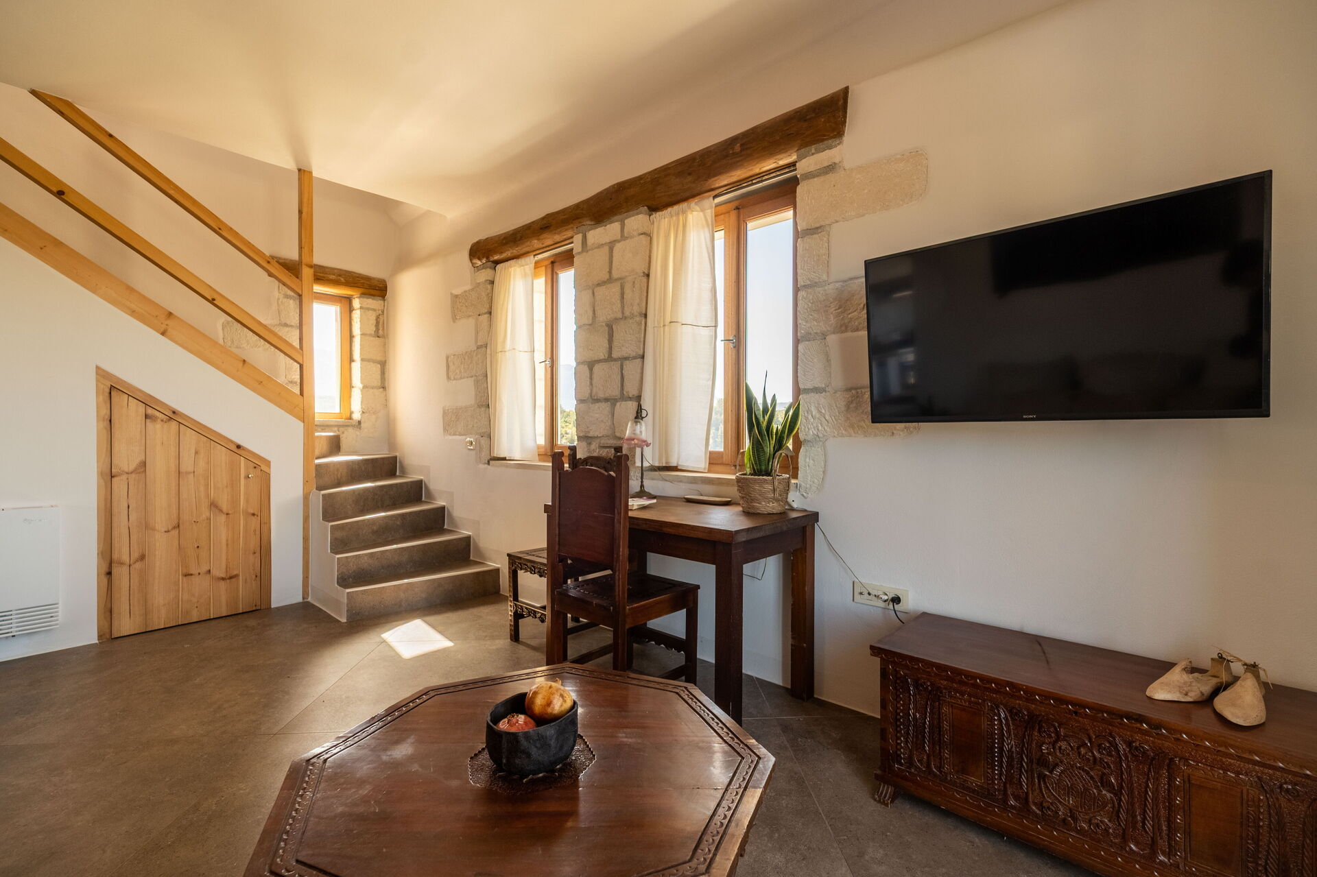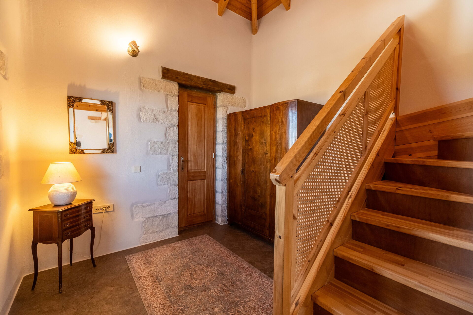 On the grounds, there is an area furnished with a barbecue and outdoor dining table, and a private pool where you can cool off on summer days and enjoy the peace and tranquility of the countryside; splendid panoramic views of Crete’s crystal clear sea are the icing on the cake.