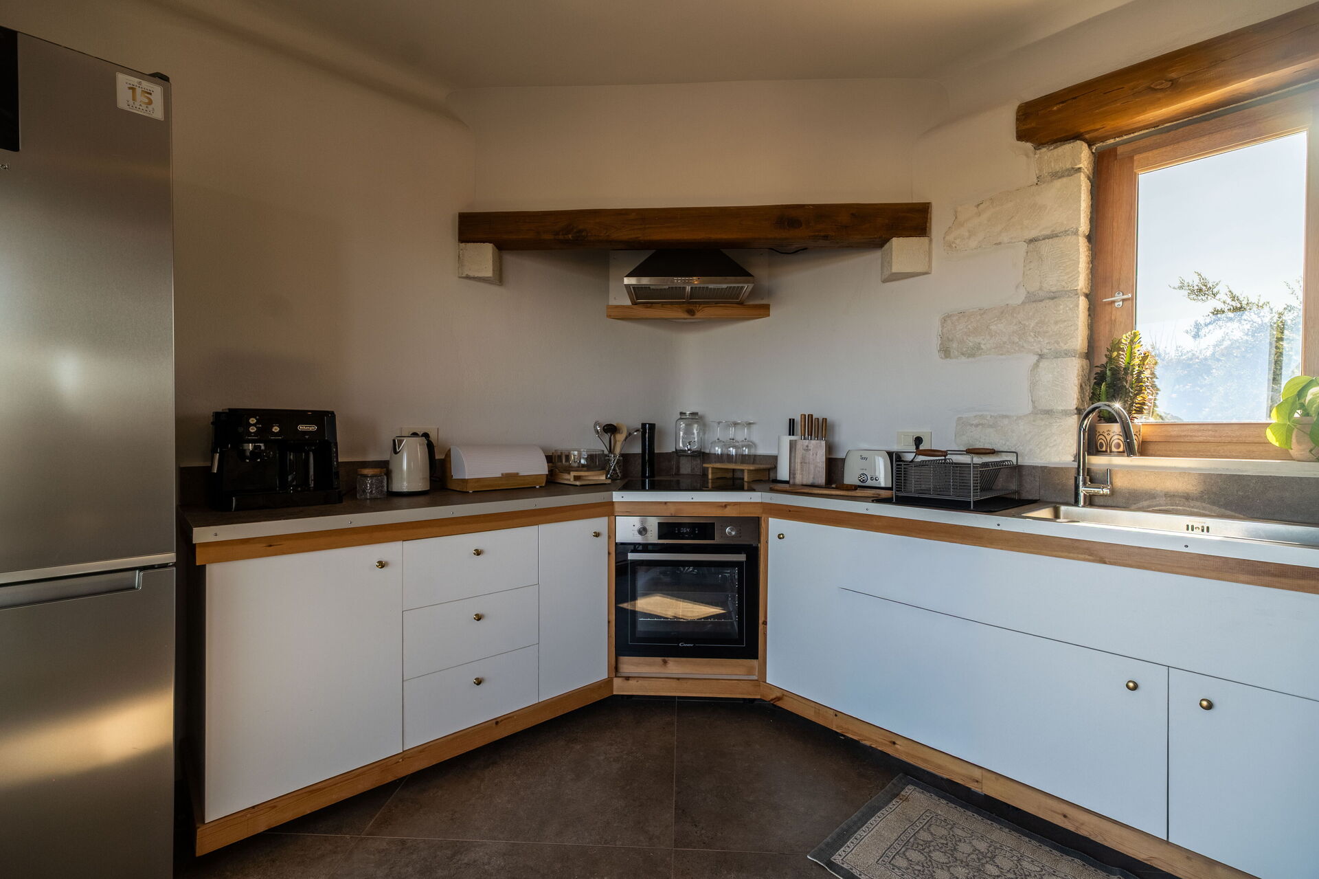 Ground floor: living room (air conditioning, tv) and dining area, kitchen (cooktop, oven, freezer, dishwasher, microwave, coffee maker, toaster), wc.