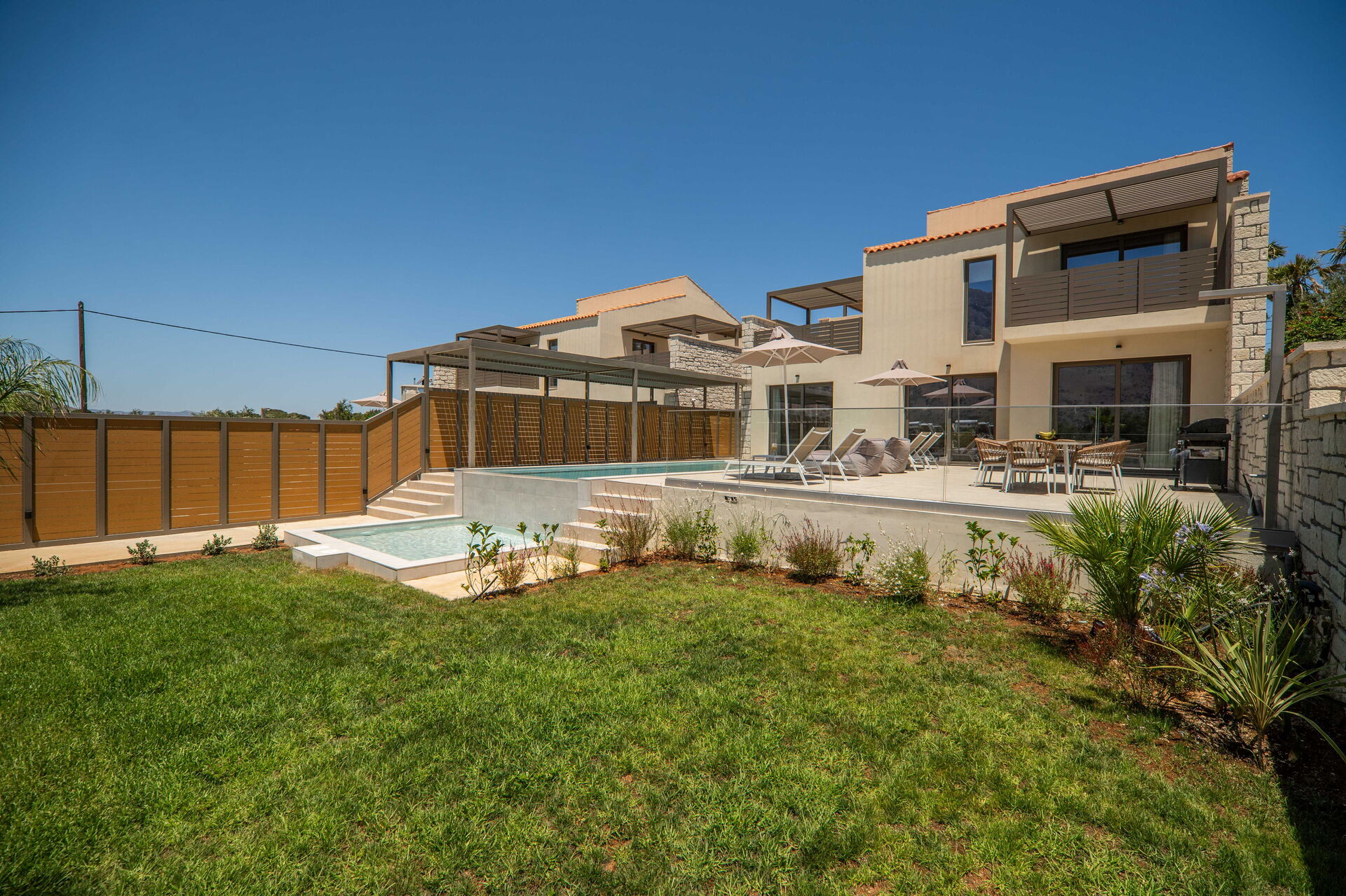 Each of the 4 villa pools also has a shallow area (0,5 meters) ideal for children.