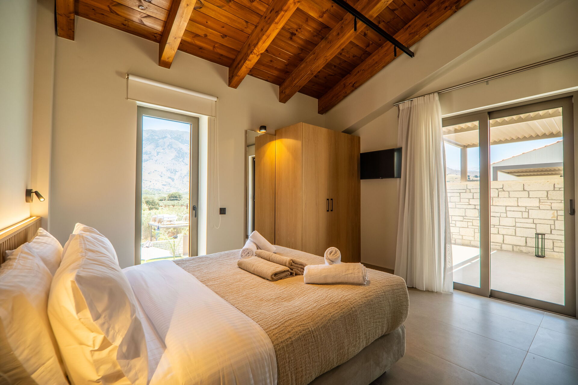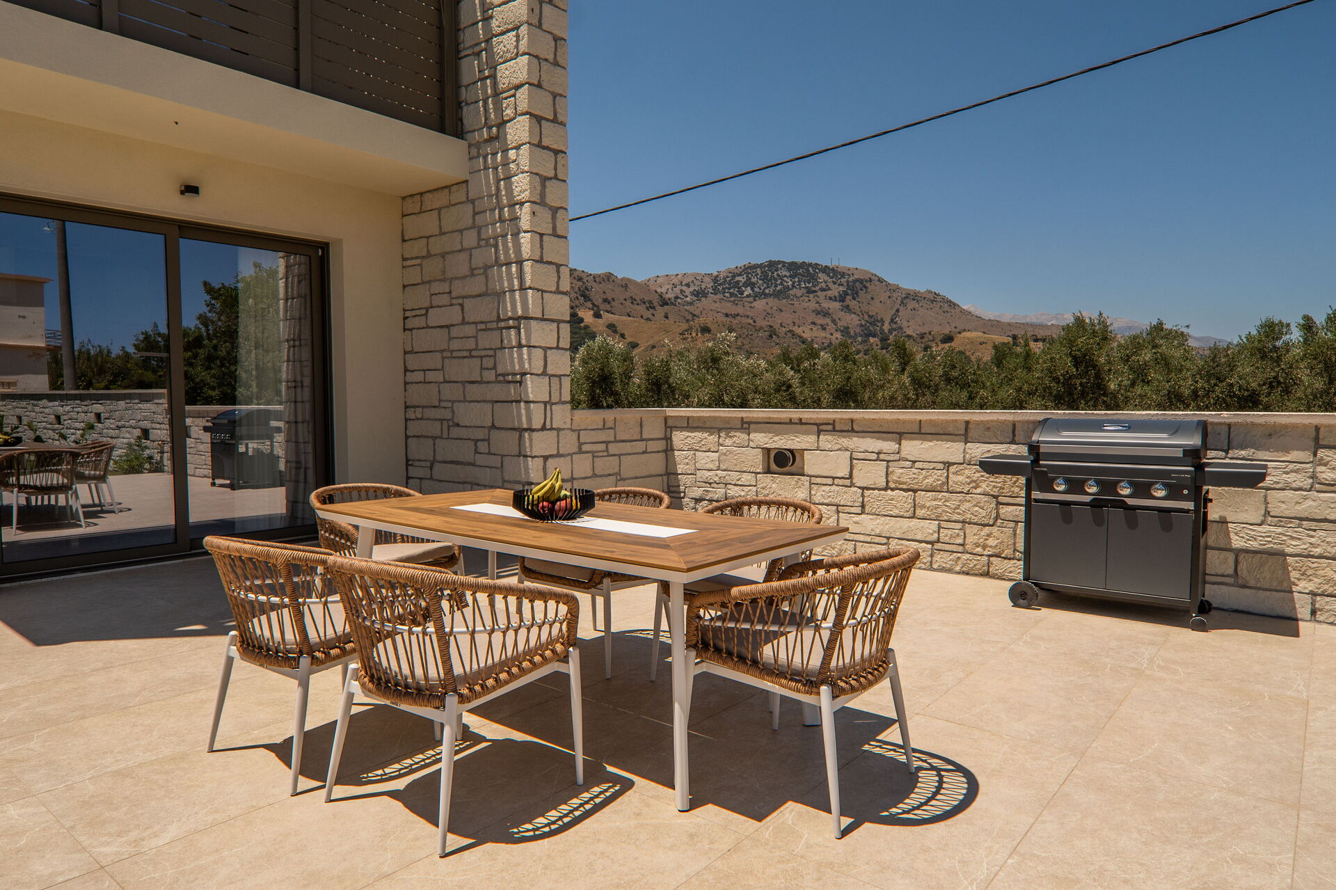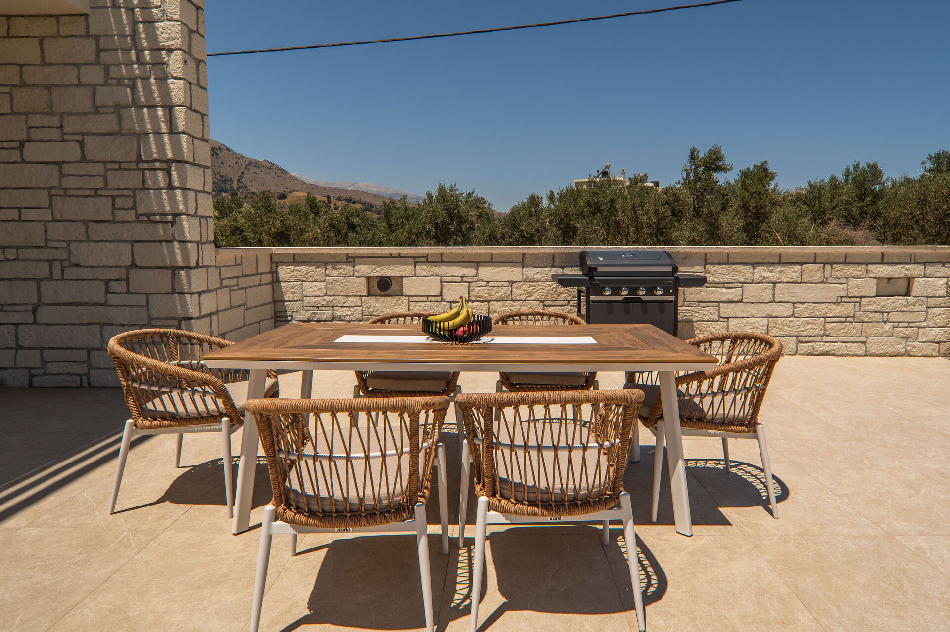 Distances: shops of all kinds 2 km away; beach 3 km away; Georgioupoli (beach and shops of all kinds) 3 km; Rethimno 20 km; Lake Kournas 5 km; Chania 40 km; Chania airport 50 km; Heraklion 100 km; Knossos Palace 100 km.