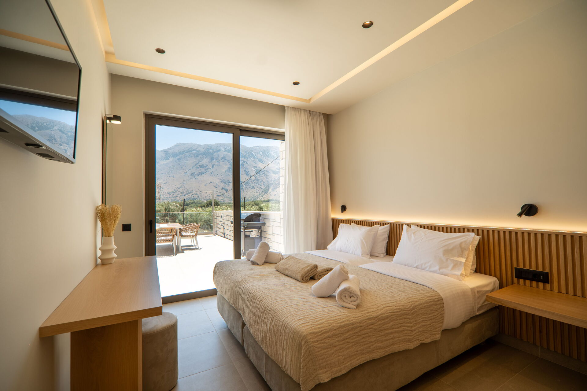 Distances: shops of all kinds 2 km away; beach 3 km away; Georgioupoli (beach and shops of all kinds) 3 km; Rethimno 20 km; Lake Kournas 5 km; Chania 40 km; Chania airport 50 km; Heraklion 100 km; Knossos Palace 100 km.