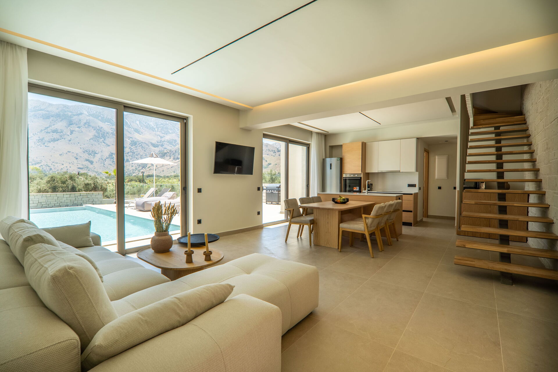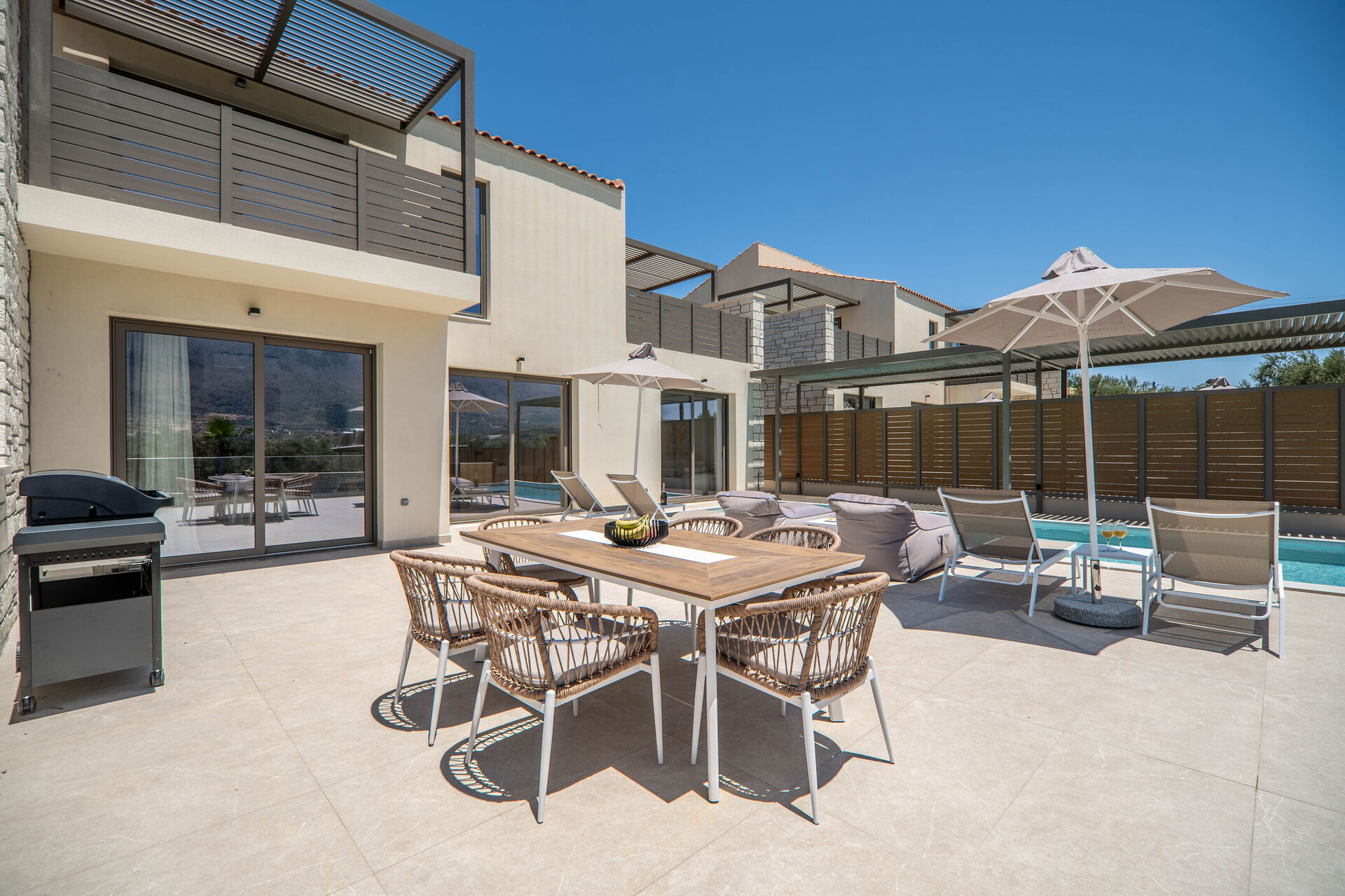 Each villa offers 3 bedrooms, 3 bathrooms, a lovely living area with a kitchen, air conditioning in all of the rooms, and a fantastic outdoor space with its own private pool.