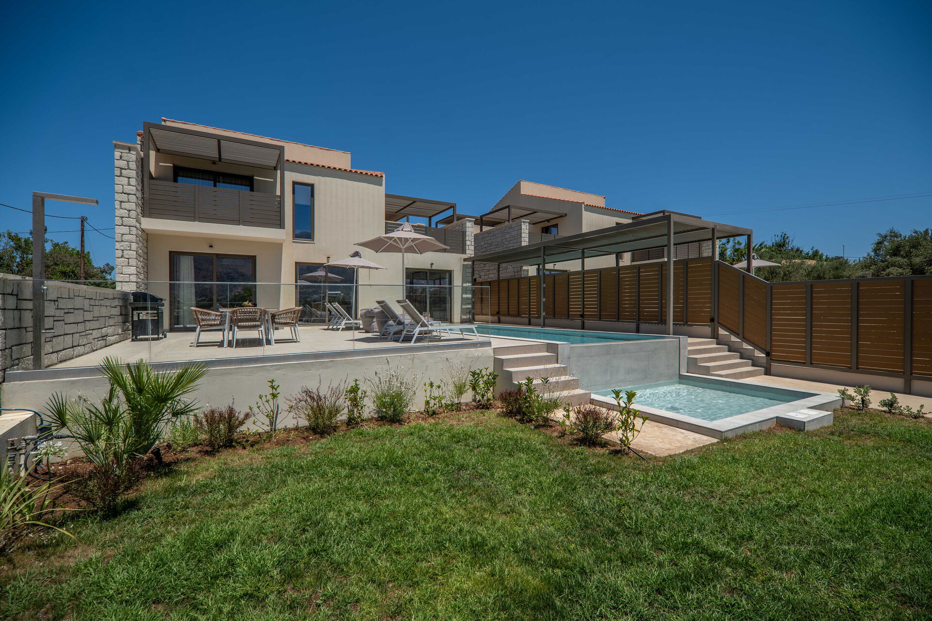 Each of the 4 villa pools also has a shallow area (0,5 meters) ideal for children.
