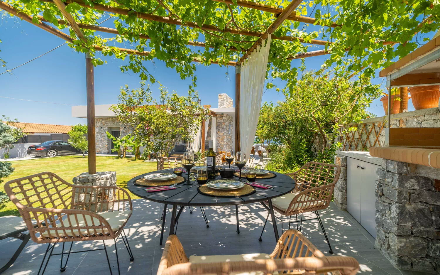 La Villa Katrine est un véritable havre de paix. Nichée dans le charmant village de Kastellos, elle bénéficie d’un emplacement idéal : seulement 10 minutes des supermarchés, commerces locaux et stations-service. La maison est décorée avec goût, dispose d’une cuisine parfaitement équipée, d’un superbe jardin et d’une piscine offrant une vue imprenable.