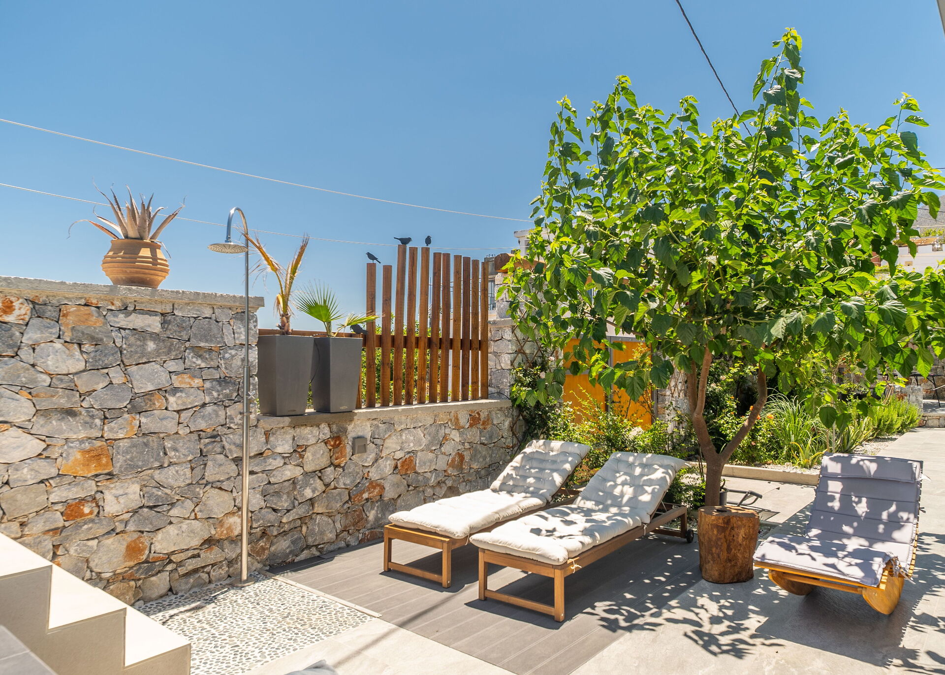 Distances: Kournas (bar, bakery and tavernas) 3 km; Kournas Lake (shops and tavernas) 7 km, Peristeris beach (sandy beach) 7,5 km, Episkopi beach (sandy beach) 7,5 km, Georgioupoli (shops of all kinds and beaches) 10 km, Rethymno 22 km, Almyrida 26 km, Chania 48 km, airport 54.50 km, Heraklion 103 km, the famous Knossos Palace 104 km.