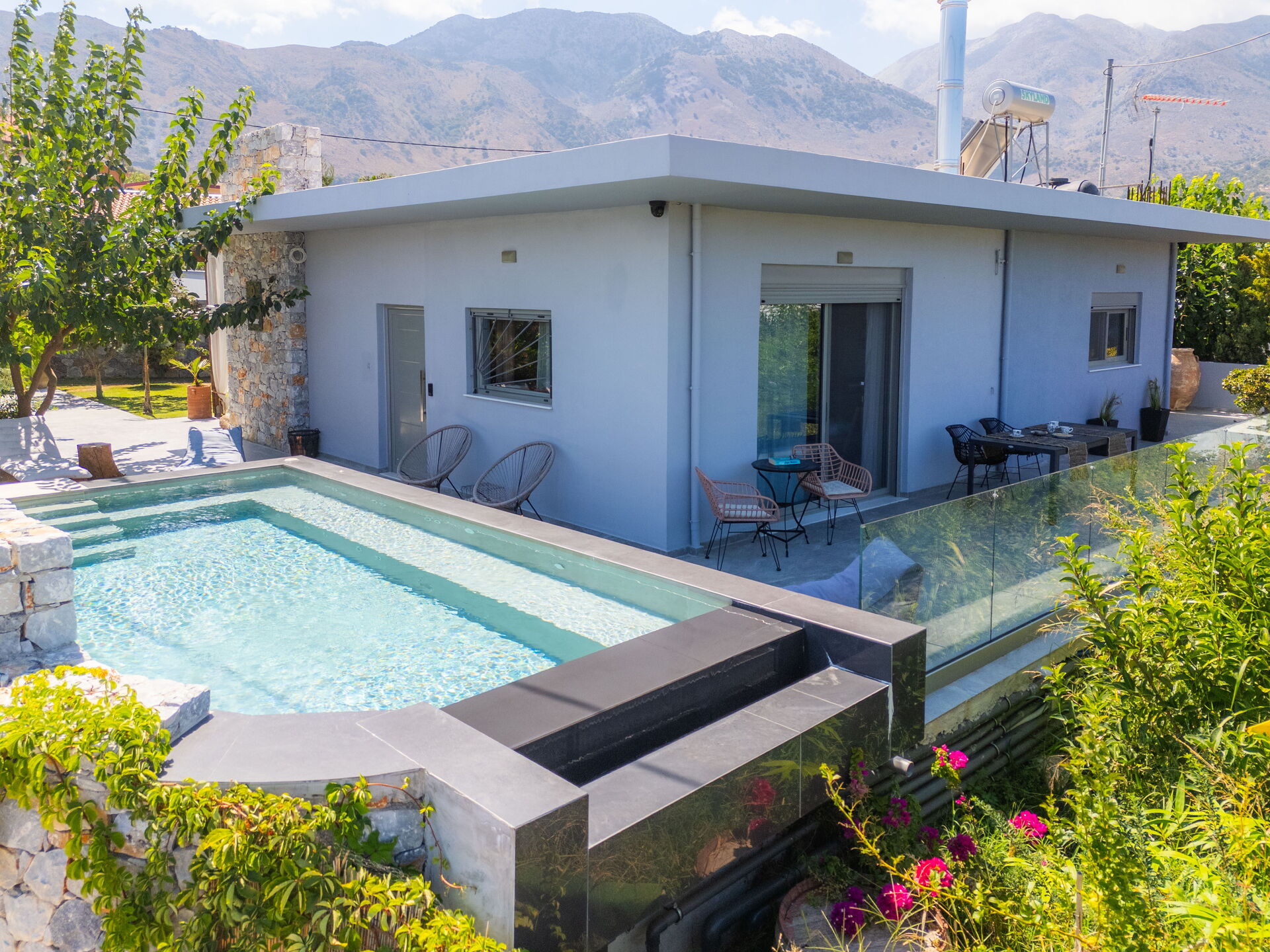 From the villa you can reach important places of interest like Chania, which has Venetian roots, and Rethymno; experience the romantic atmosphere of their old town centers, explore beachfront shops and taste Greek cuisine at traditional seafront restaurants.