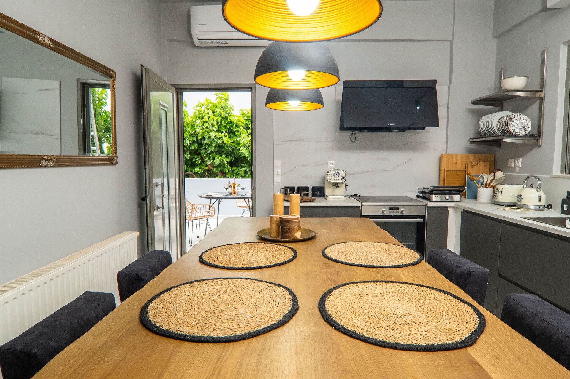 - patio with table and chairs for outdoor dining