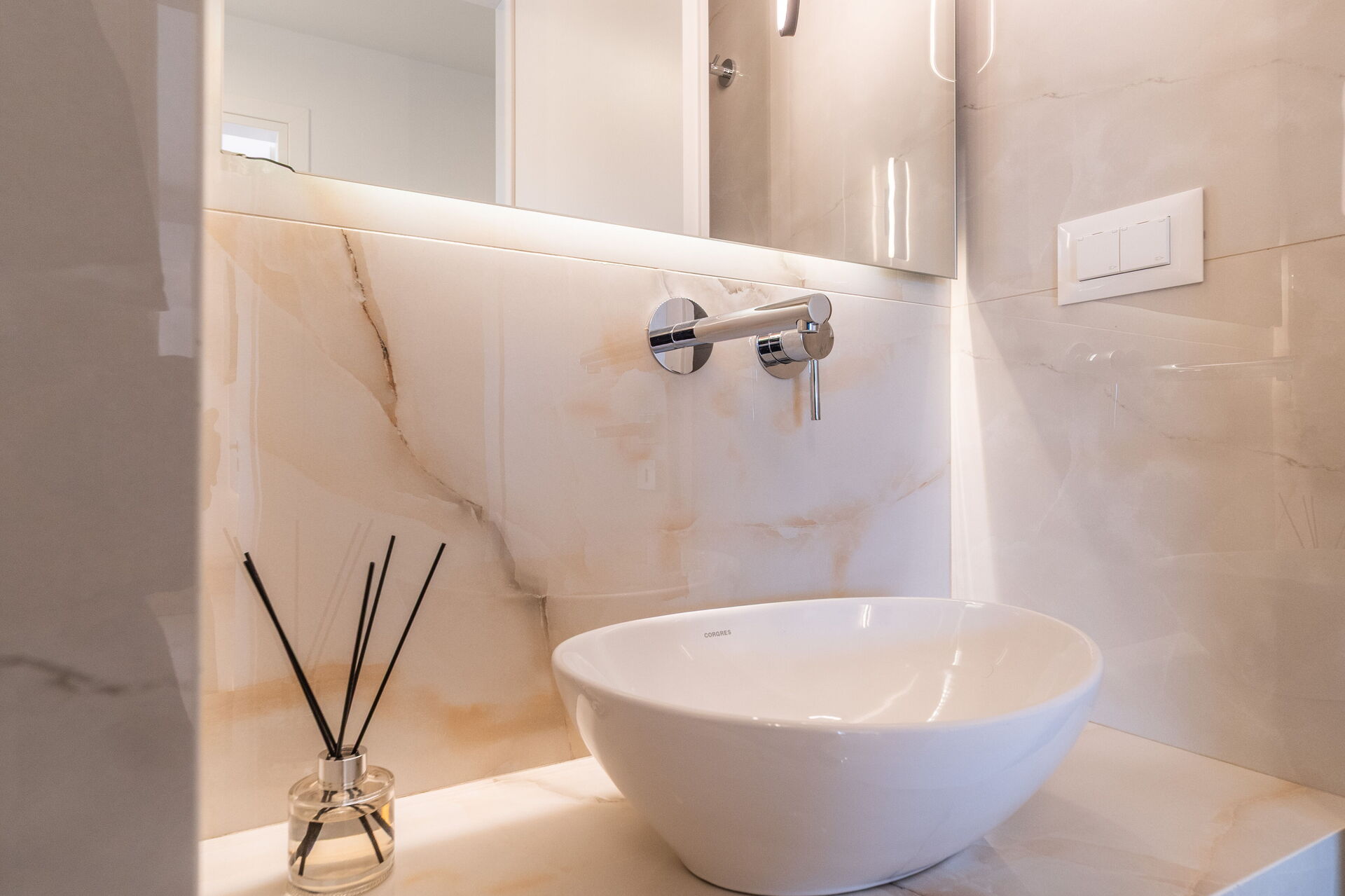 kitchen (oven, freezer, refrigerator, dishwasher, microwave, electric kettle, espresso coffee maker), wc, 4 double bedrooms (air conditioning) with private bathroom with shower.
