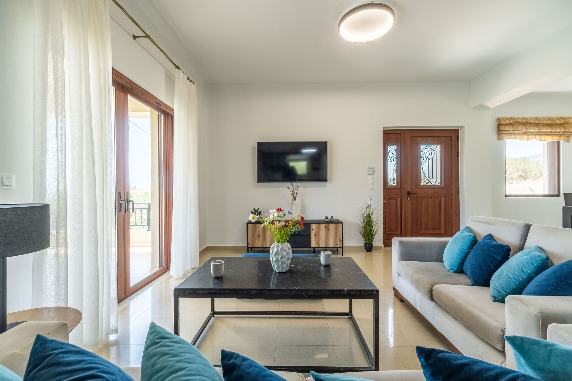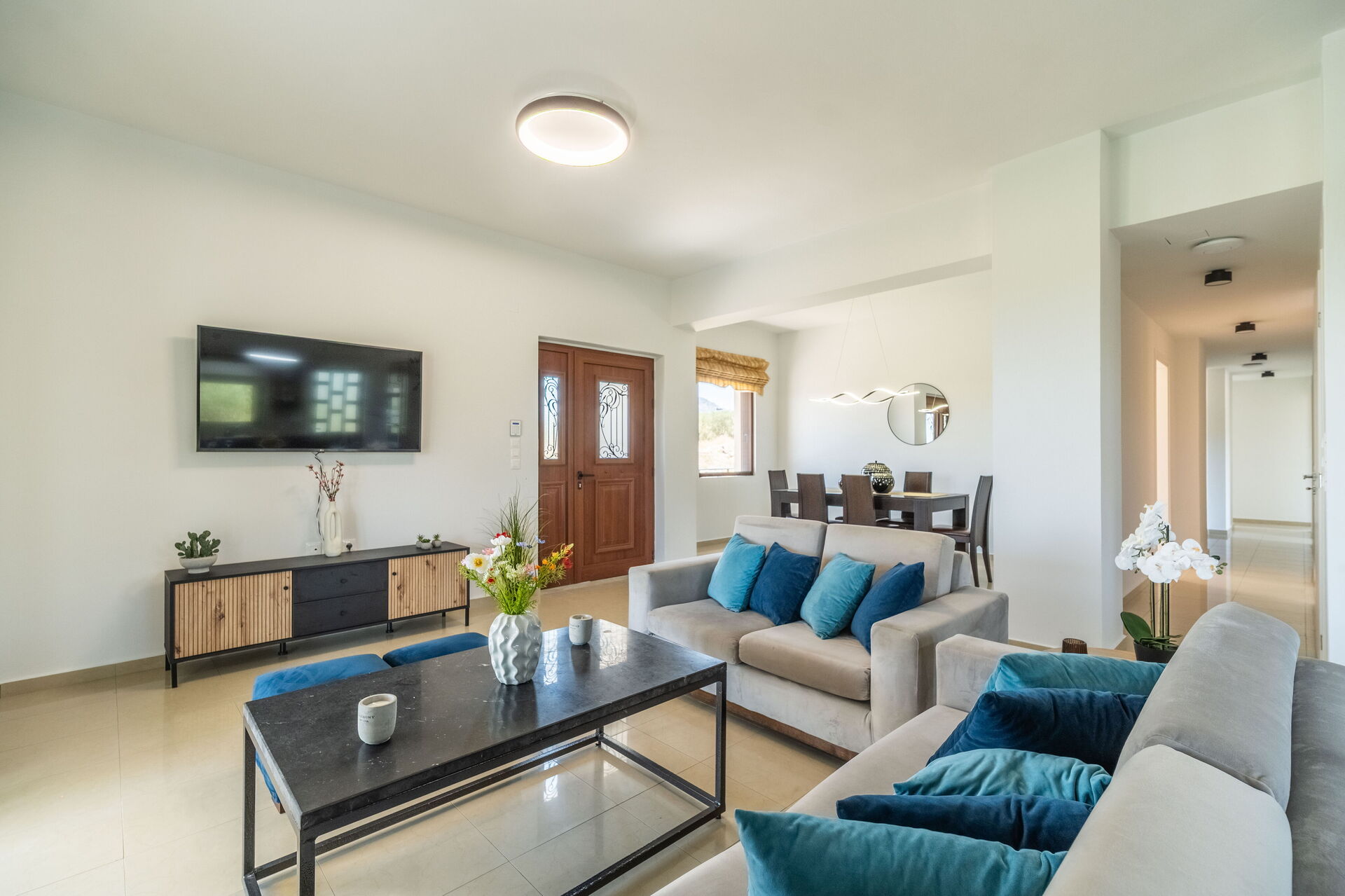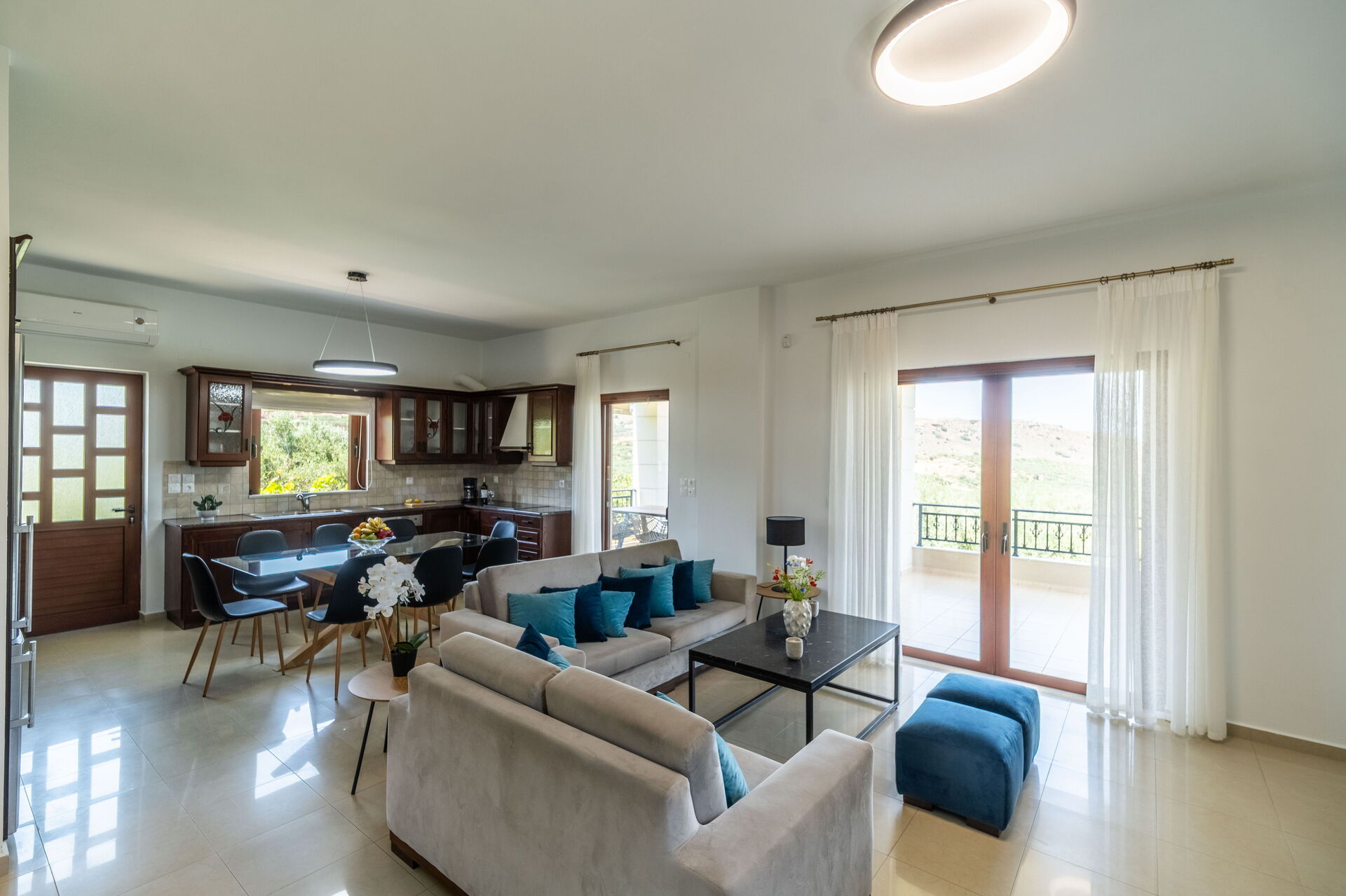 Villa Aetheria is perfect for a family or group of friends. The one-floor villa offers 4 bedrooms and elegant, welcoming, bright interiors to comfortably accommodate up to 8 people.