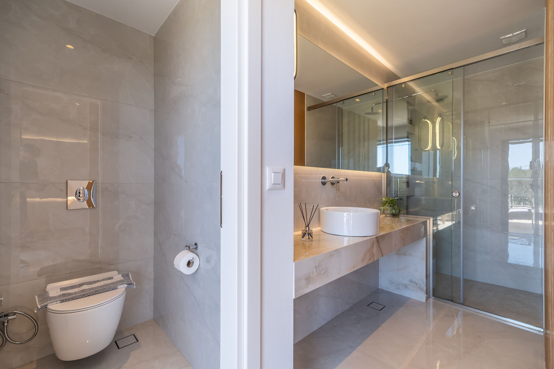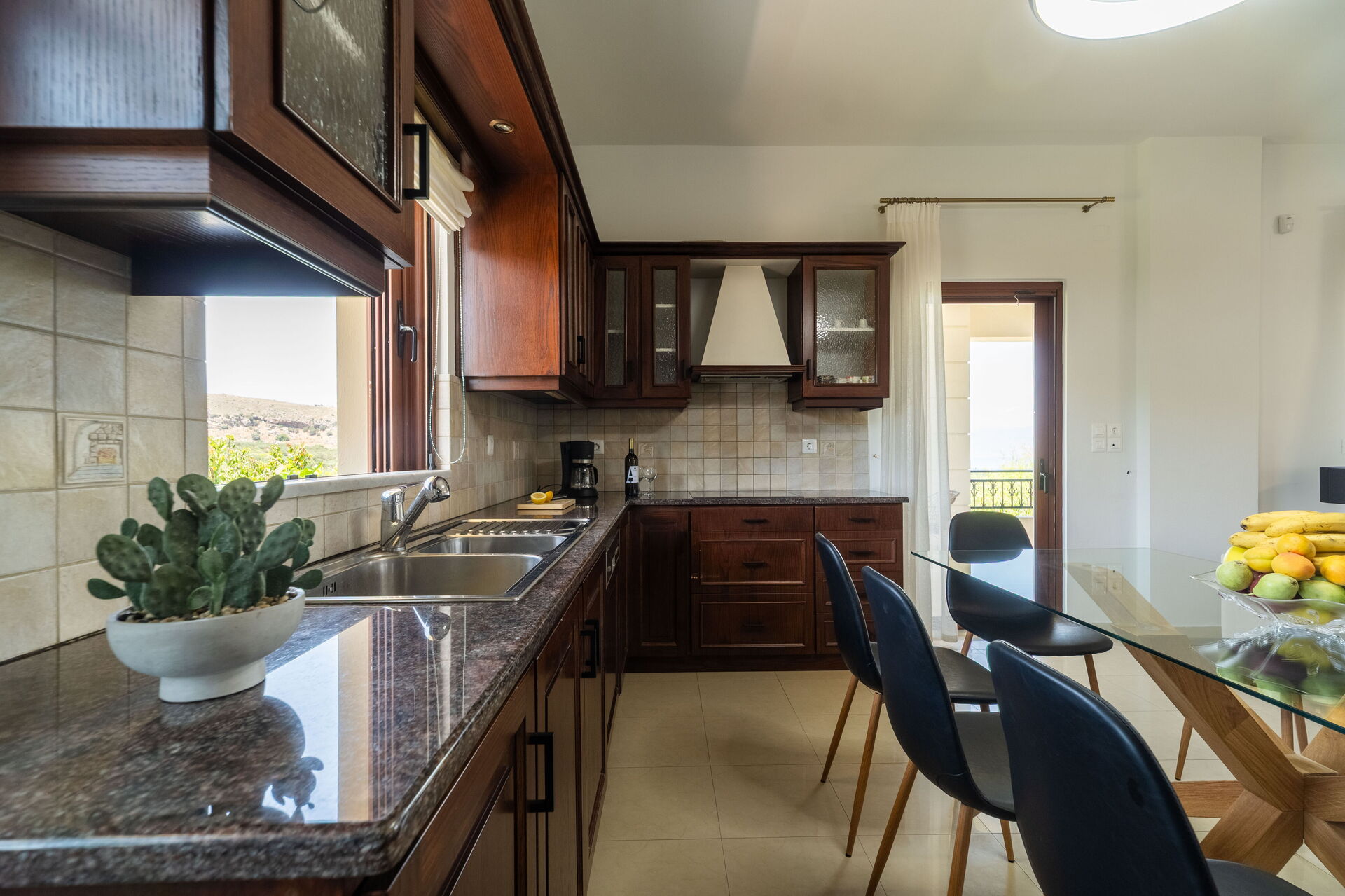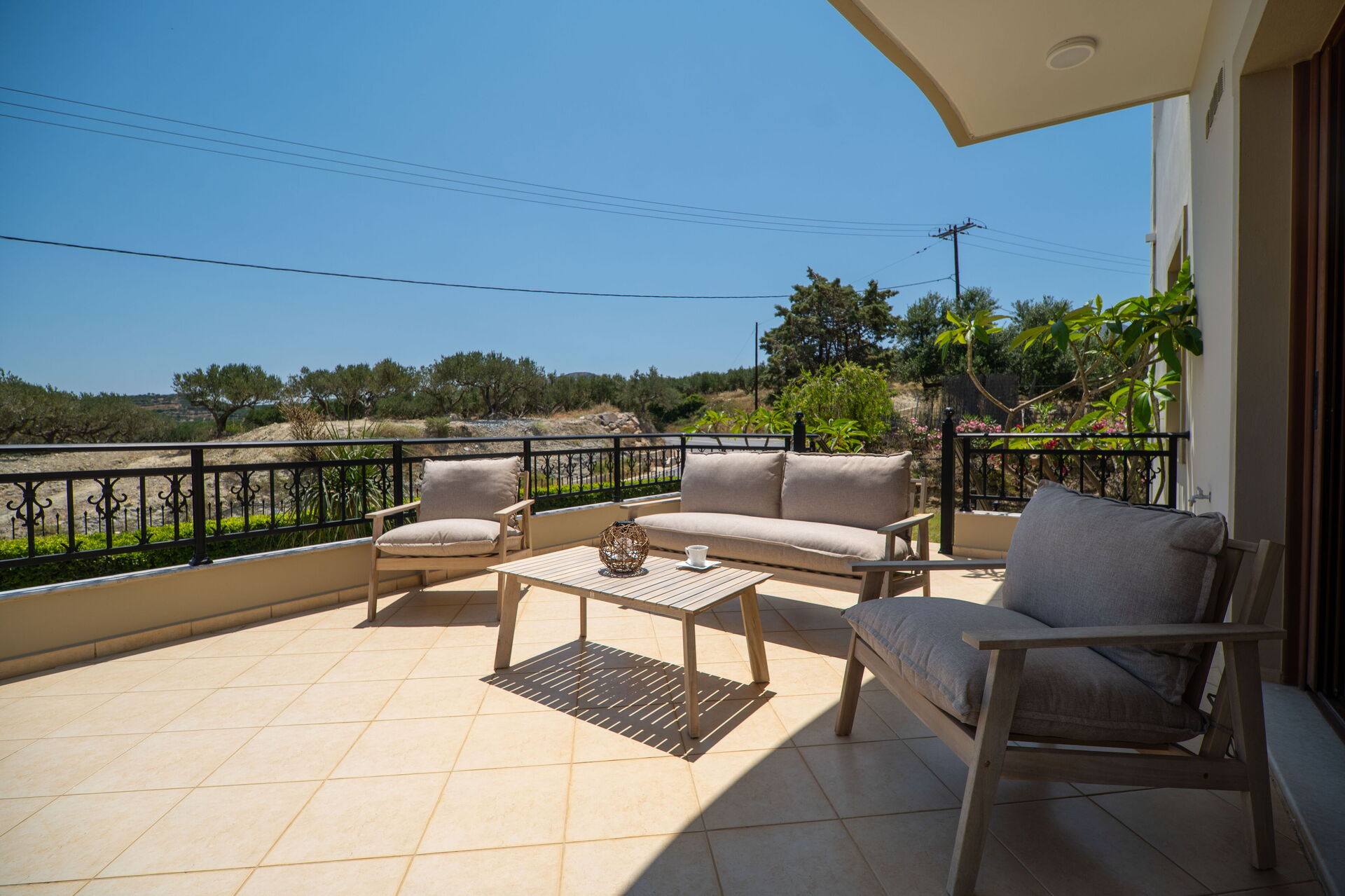 • covered terrace with panoramic sea views, and table and chairs for dining outside