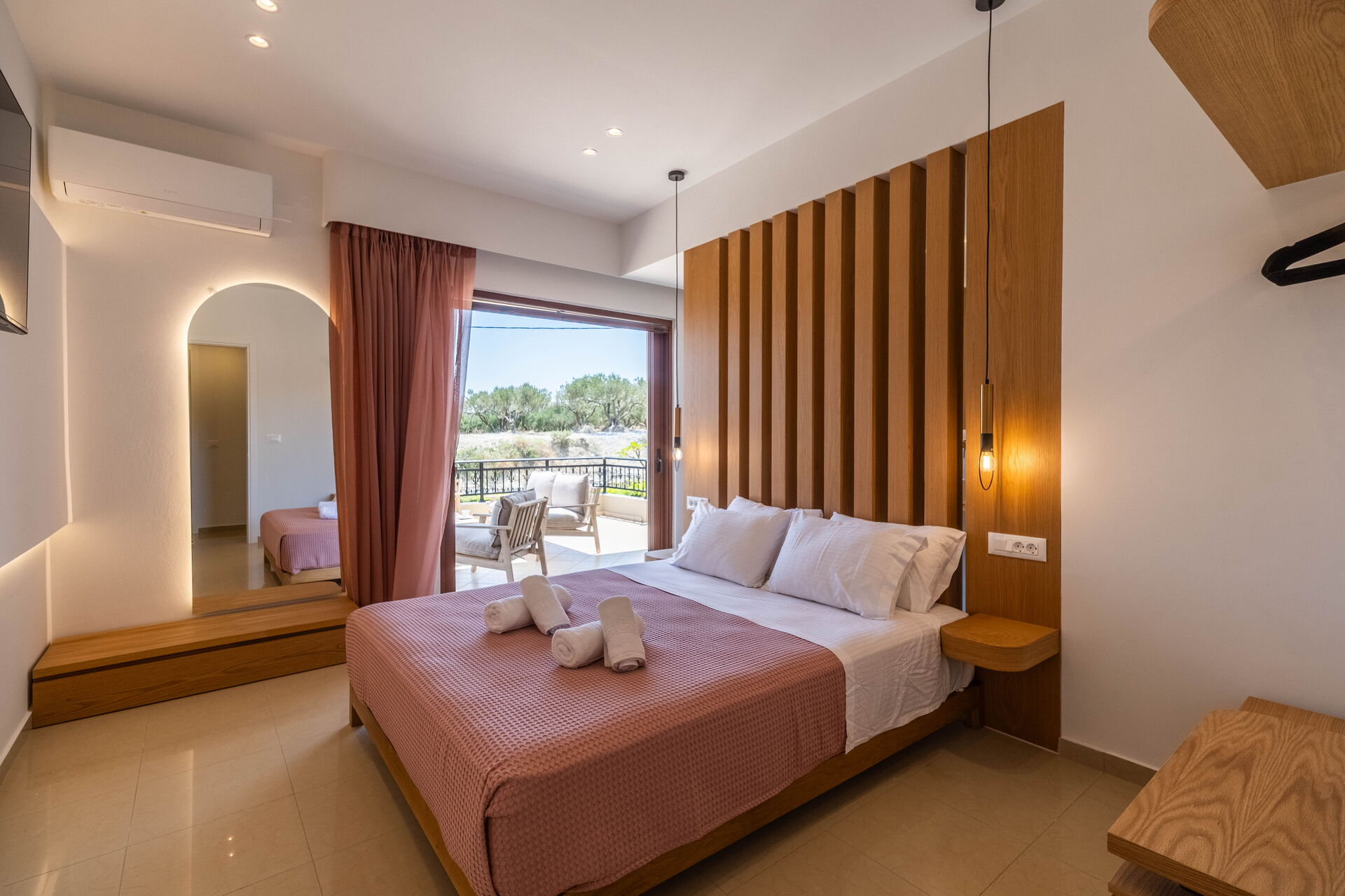 We had a wonderful stay at Villa Aetheria! Recently updated rooms - each with their own en suite bathroom - are very comfortable and equally sized making it easy to share with another family. The villa has stunning views (can see the sea in the distance), offers privacy but also located just a short 5-minute drive from Kissamos where we could find anything we needed.