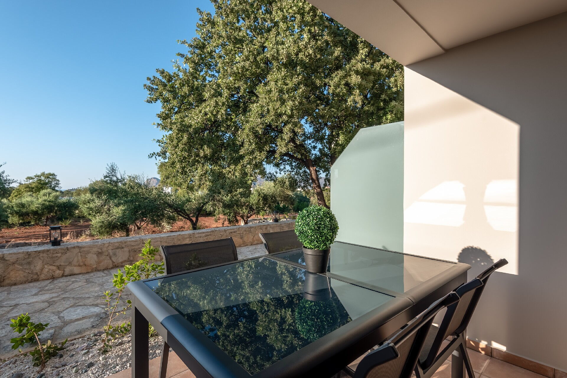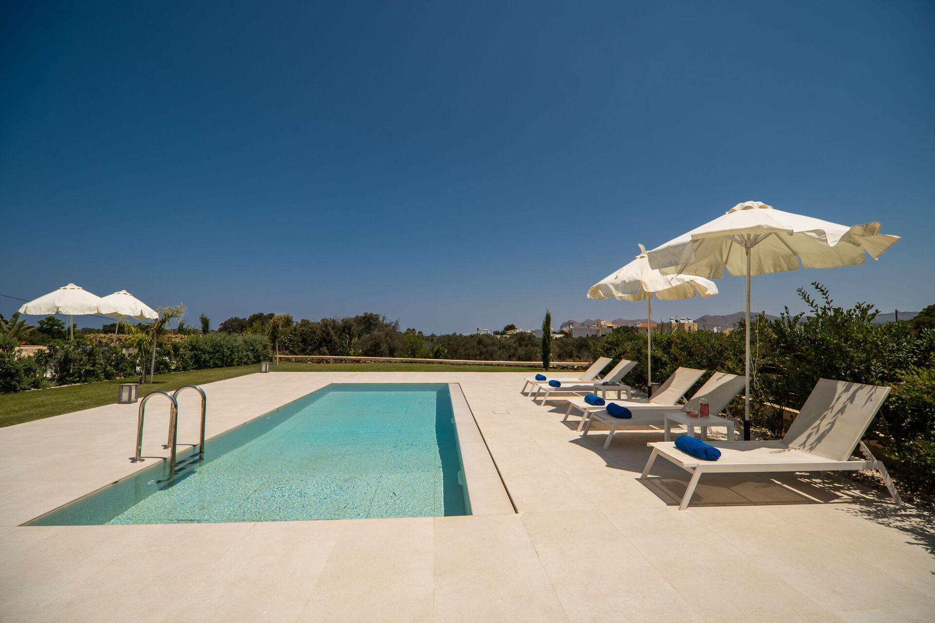 Phaedra offers various outdoor areas: at the villa entrance there is a covered table and chairs, on the first floor there is a large terrace with another dining area, and there is an enchanting roof terrace with a sun deck (accessible from the room on the top floor). The views of the sea and surrounding panoramas from the roof will take your breath away.