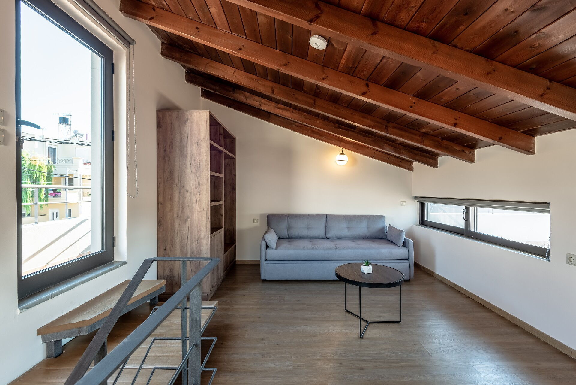 Second floor: room with a single sofa bed and access to the roof terrace (sun deck).