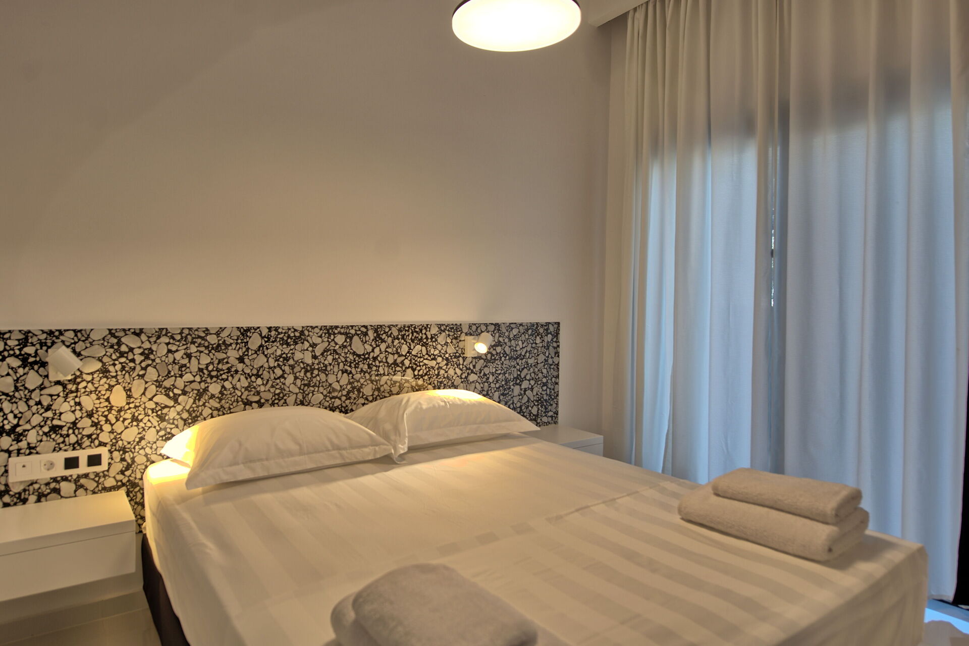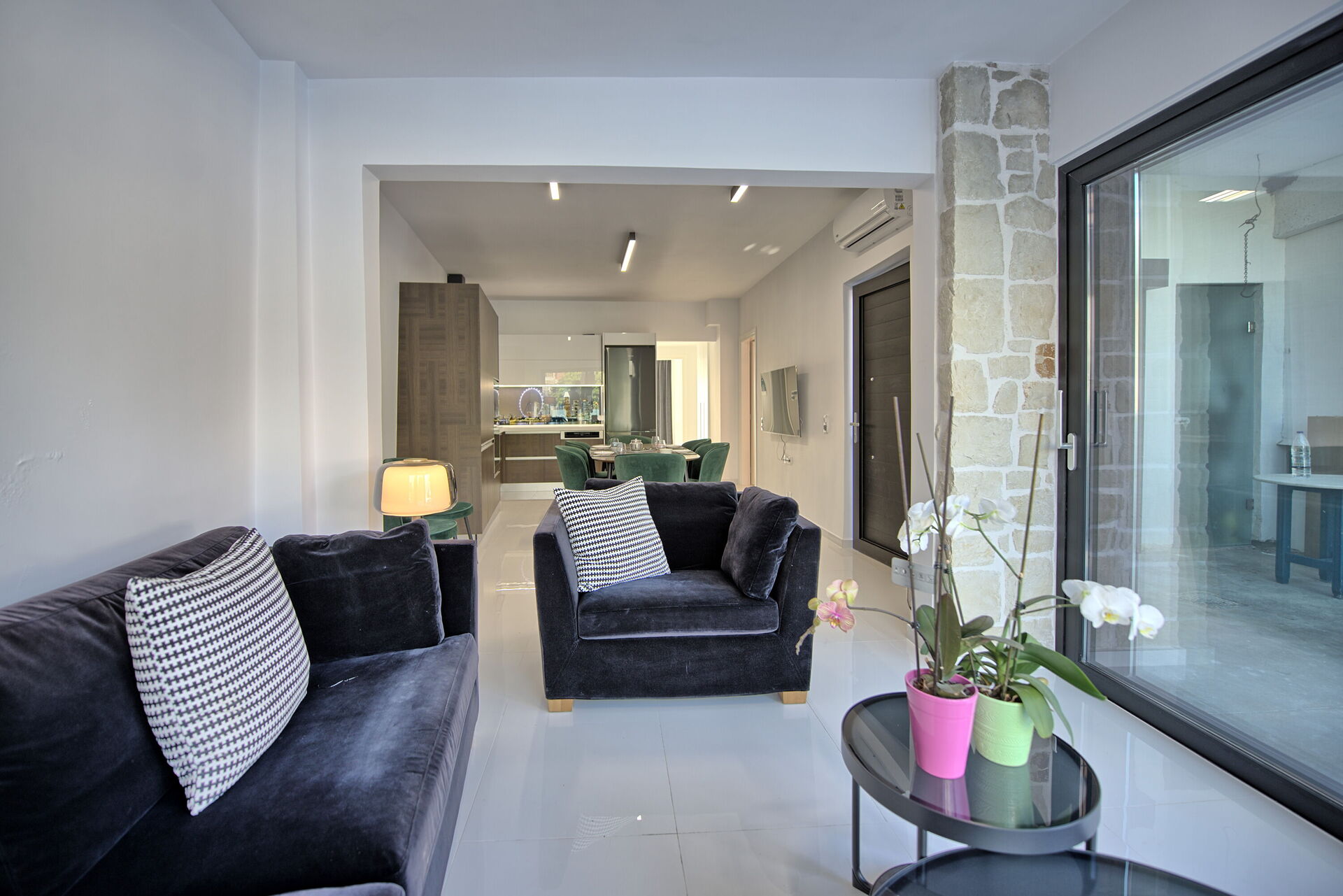 Set out over a single level, the villa comfortably accommodates up to 6 guests. The bright interiors blend historic character with functional furnishings. The open-plan living area features a fully equipped modern kitchen, while the air-conditioned sleeping quarters guarantee maximum comfort after a day of exploring.