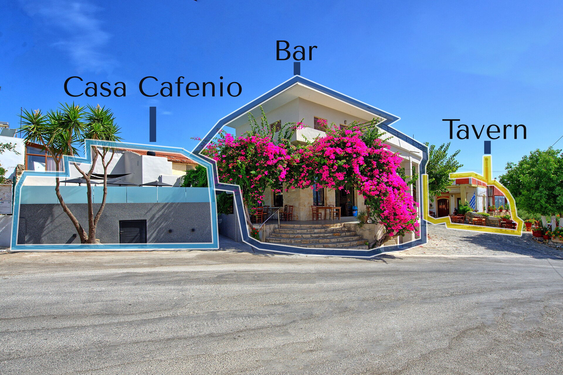 - Strategic location: taverna and café just a few metres from the gate