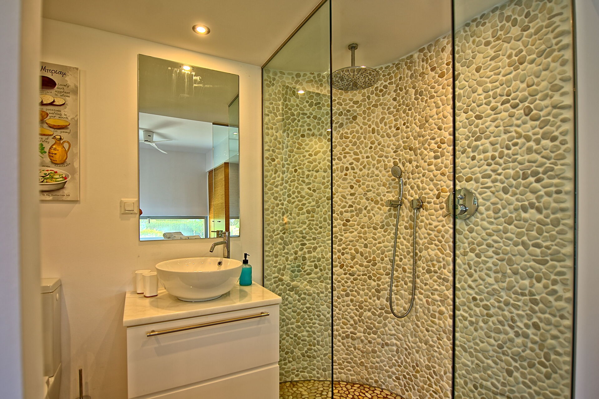 The villa was everything we had hoped for ! We used all the outdoor spaces especially the pool, tennis court and boules pitch, we were an inter-generational family group and really appreciated having lots of activities for teenagers on site. We also used the in the very instructive handbook to find the small beaches near to the house to swim and snorkel in. The villa itself was very well equipped, very tastefully done out and the teenage annex was a god send! Only 2 queries - maybe bathmats in the bathrooms, slippy floors can be a little bit dangerous for the old and the young and we wondered if a credit card could be used for the deposit rather than cash.