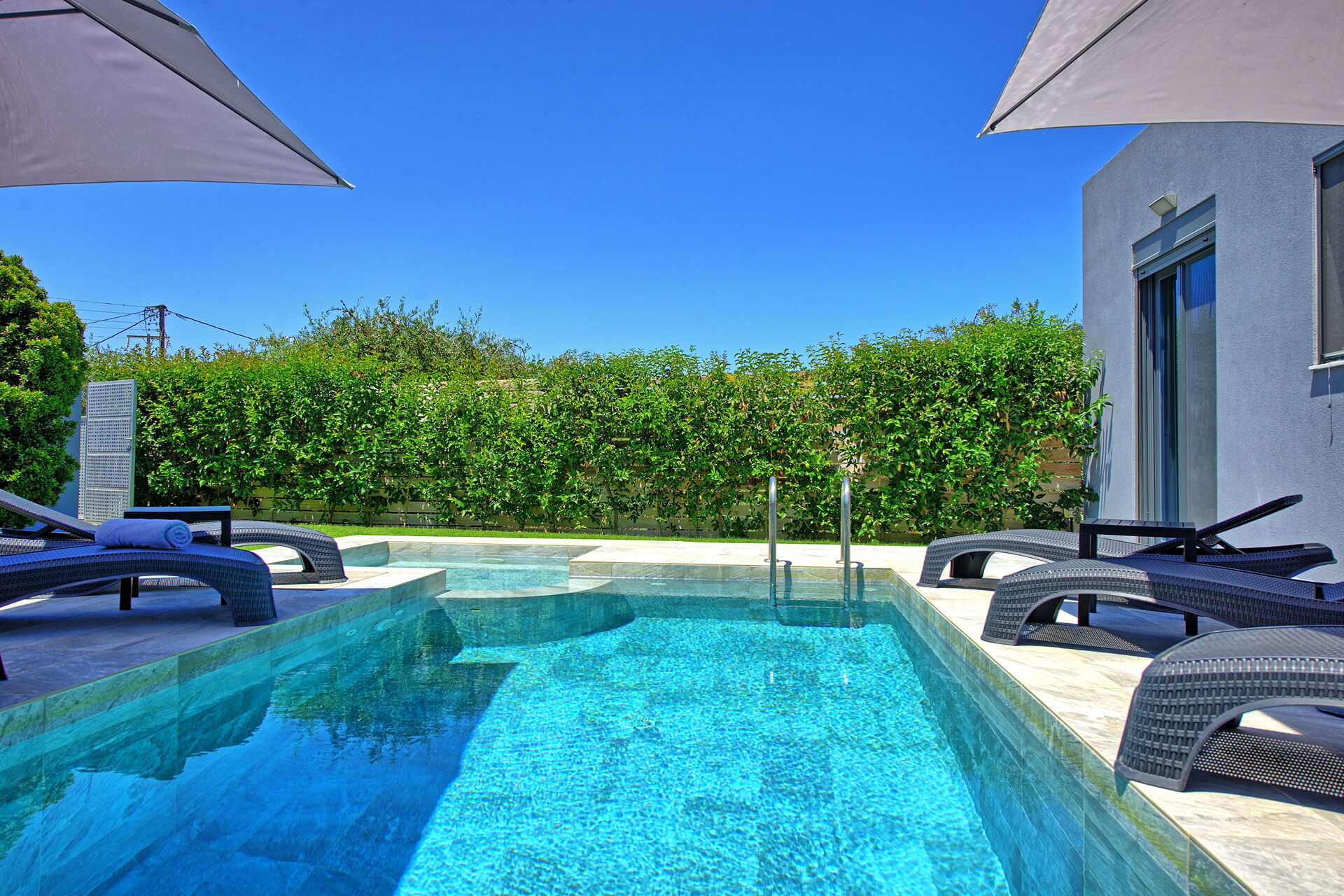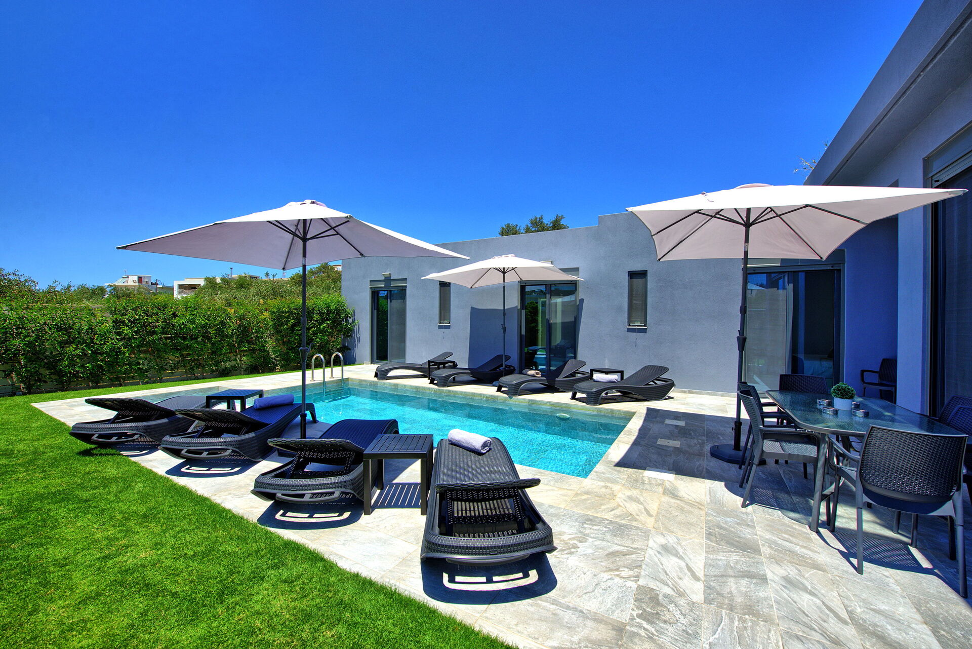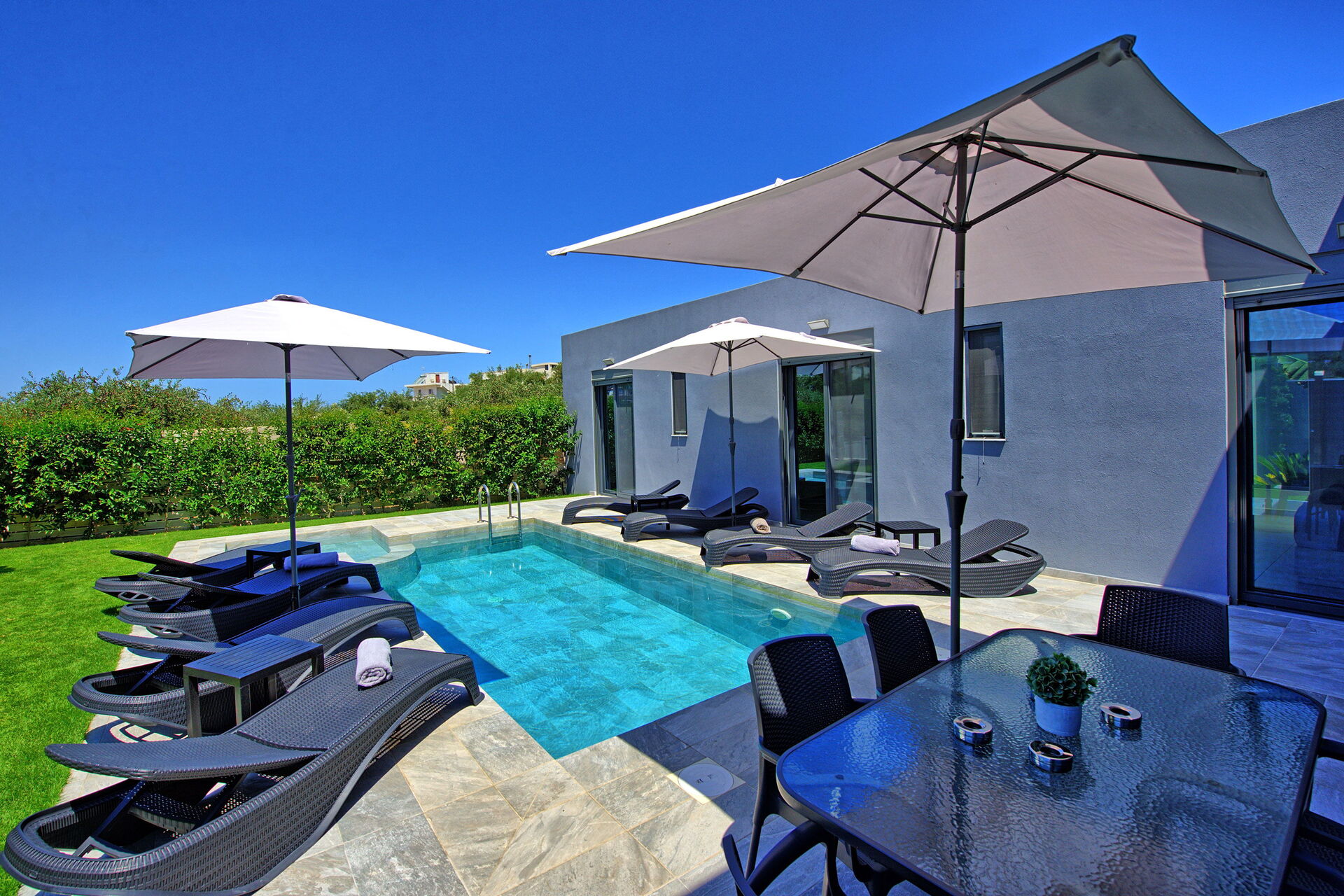 Villa Zaneti is a new and modern independent villas for rent, both with private garden and private swimming pool, at just 600 metres from the seaside on the beautiful Island of Crete.