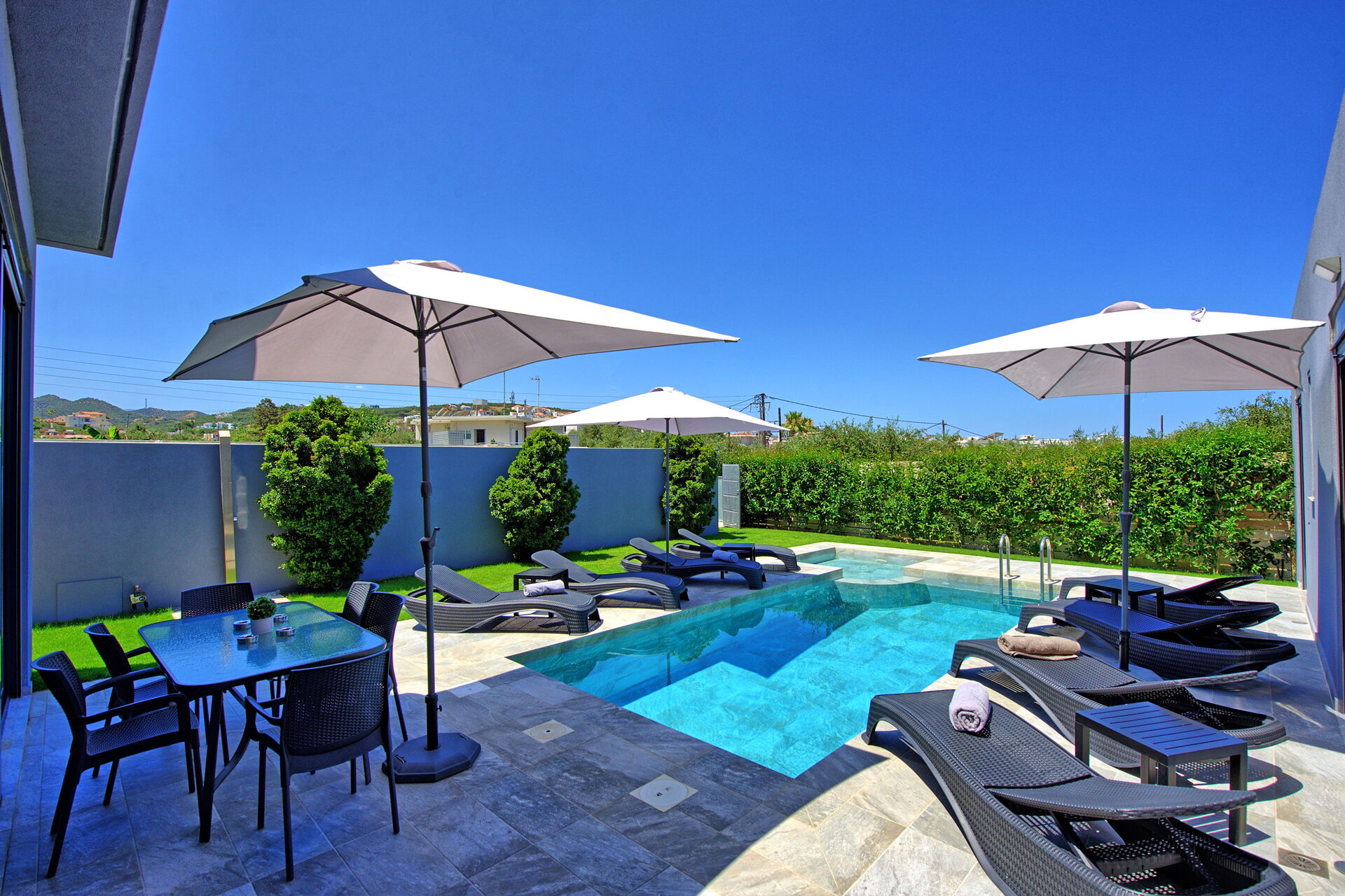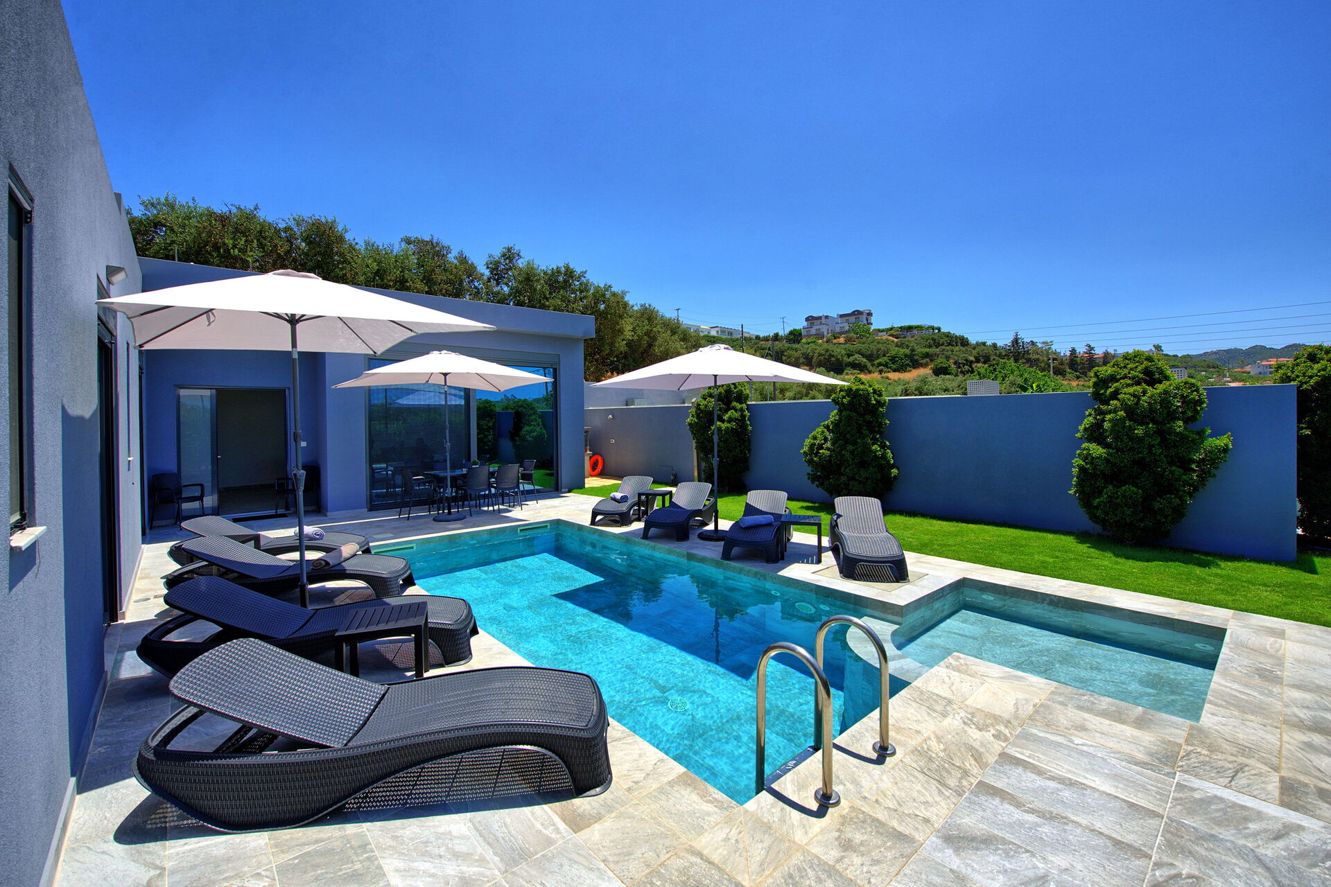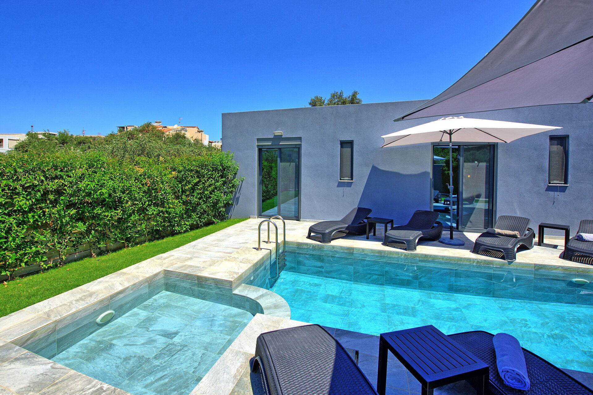 Villa Zaneti is a new and modern independent villas for rent, both with private garden and private swimming pool, at just 600 metres from the seaside on the beautiful Island of Crete.