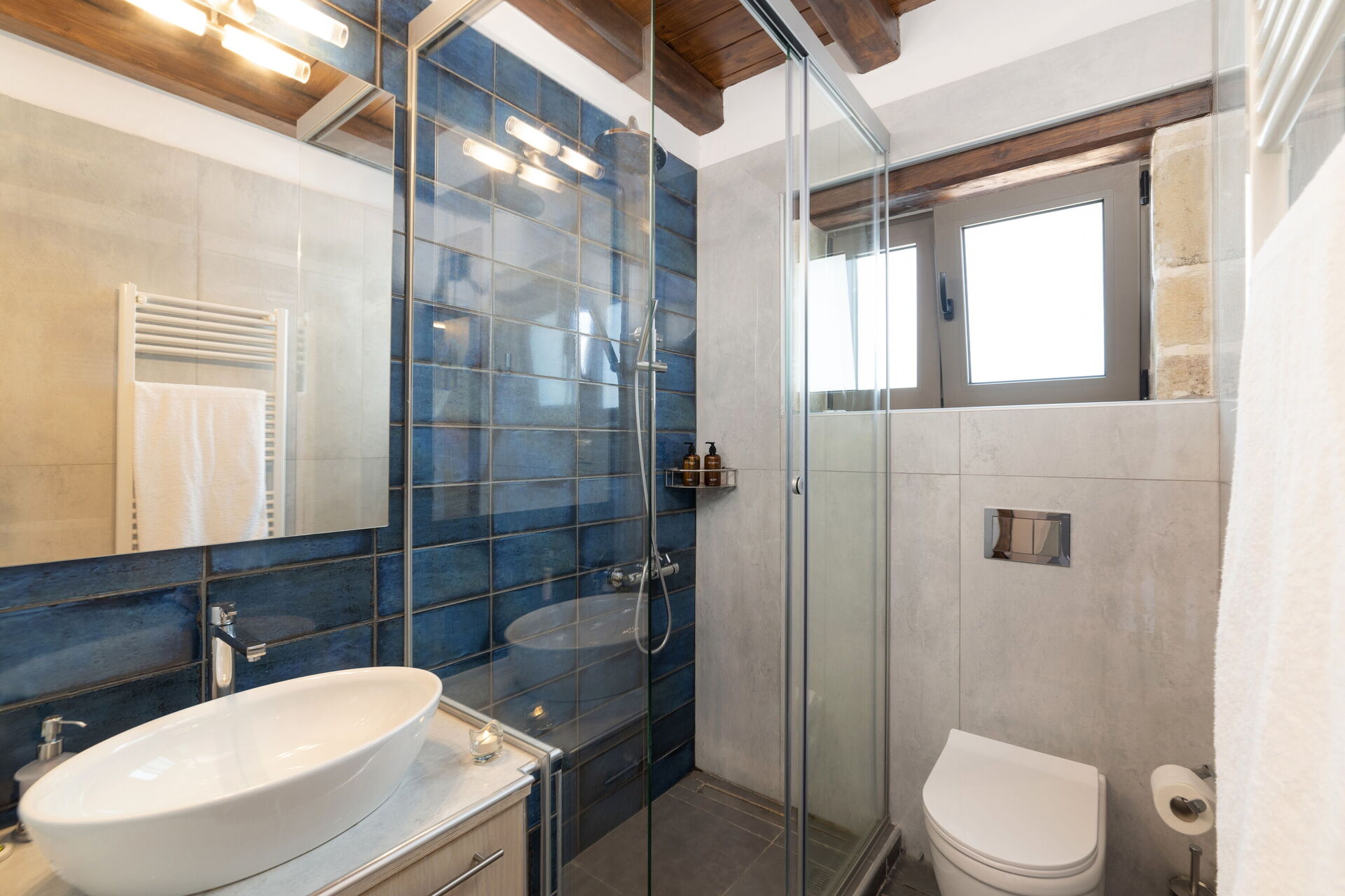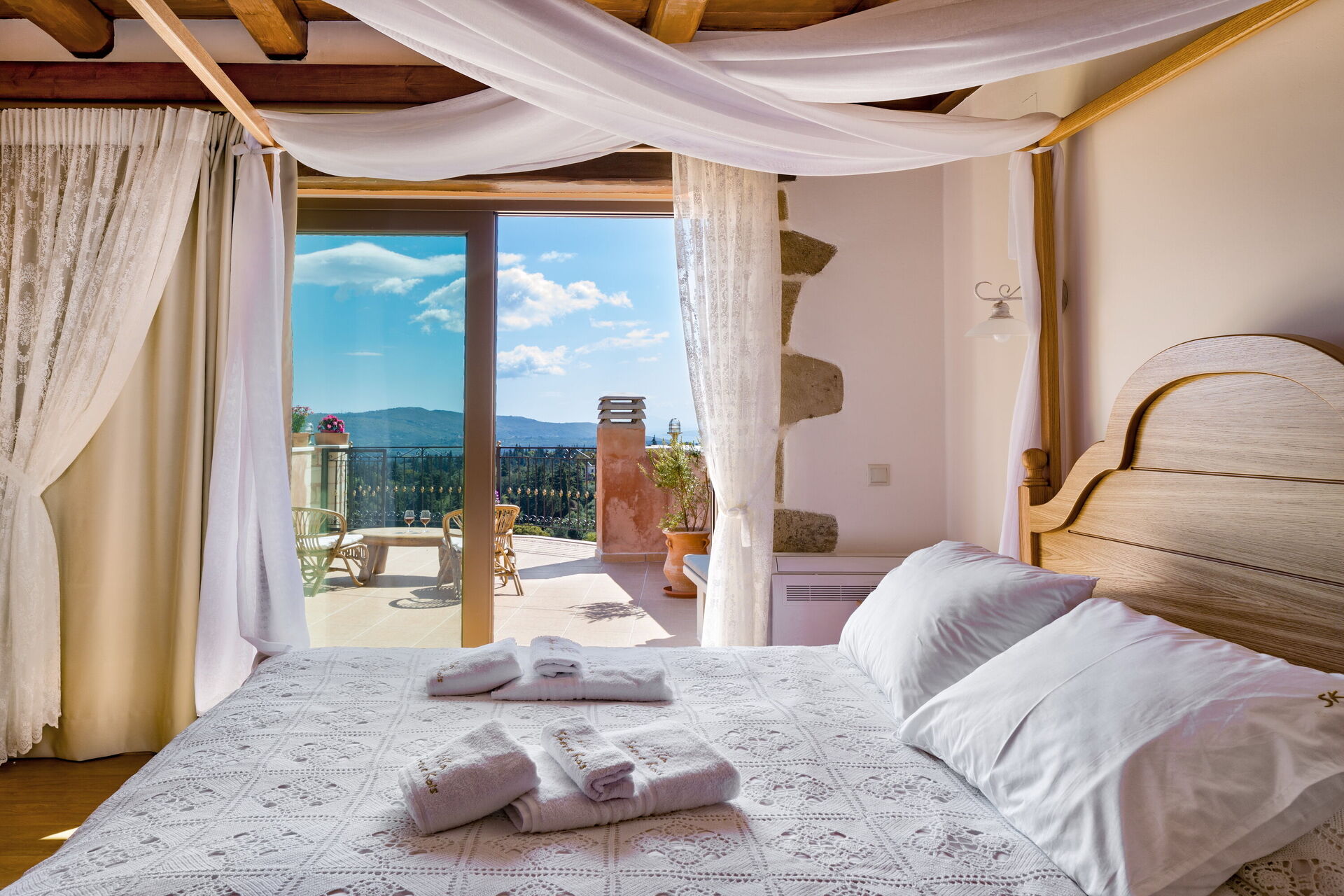 The pool (heatable upon request) also offers a whirlpool corner with views of the sea and surrounding countryside. Olive trees, cypress trees and Mediterranean scrub bushes will frame your unforgettable moments living under the Greek sun.