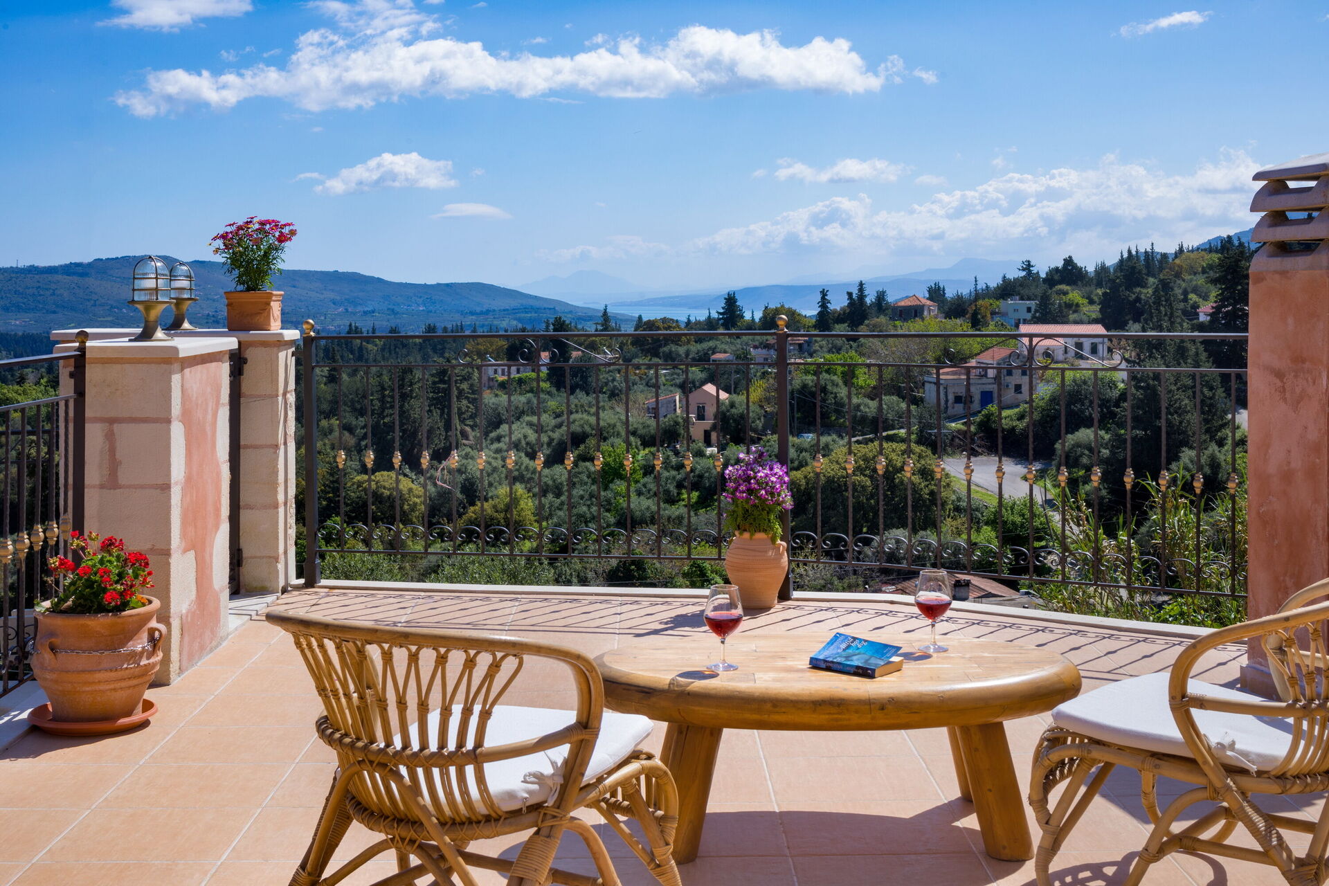 • terrace and balconies with sweeping views of the hills and sea in the distance