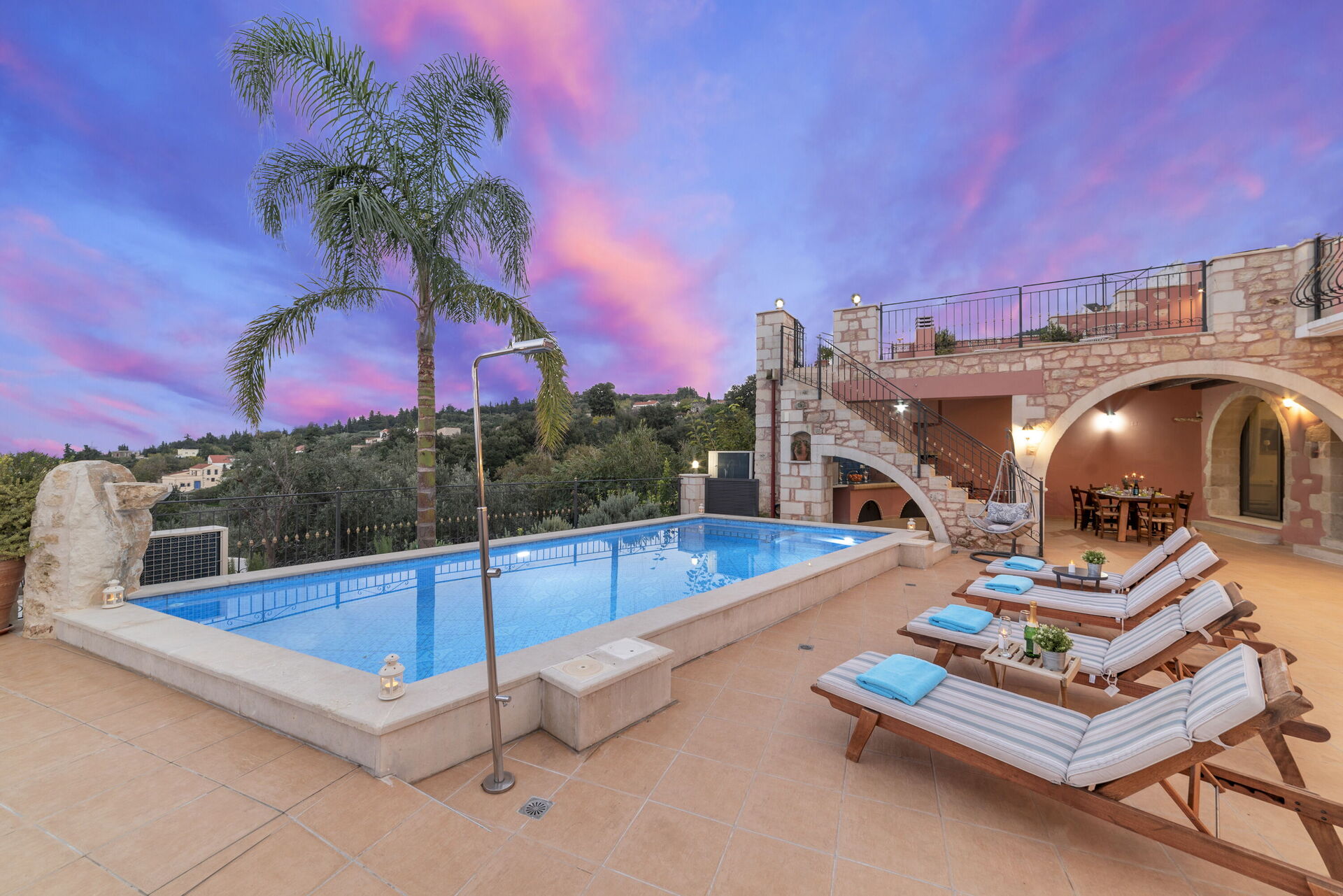 This villa’s central location is within an easy drive of Crete’s most famous areas. Explore the entire island: the cities of Chania and Rethimo, the charming villages scattered here and there, Lake Kournas, and the gorgeous sea in the nearby towns of Georgioupolis, Almyrida and Kalyves.