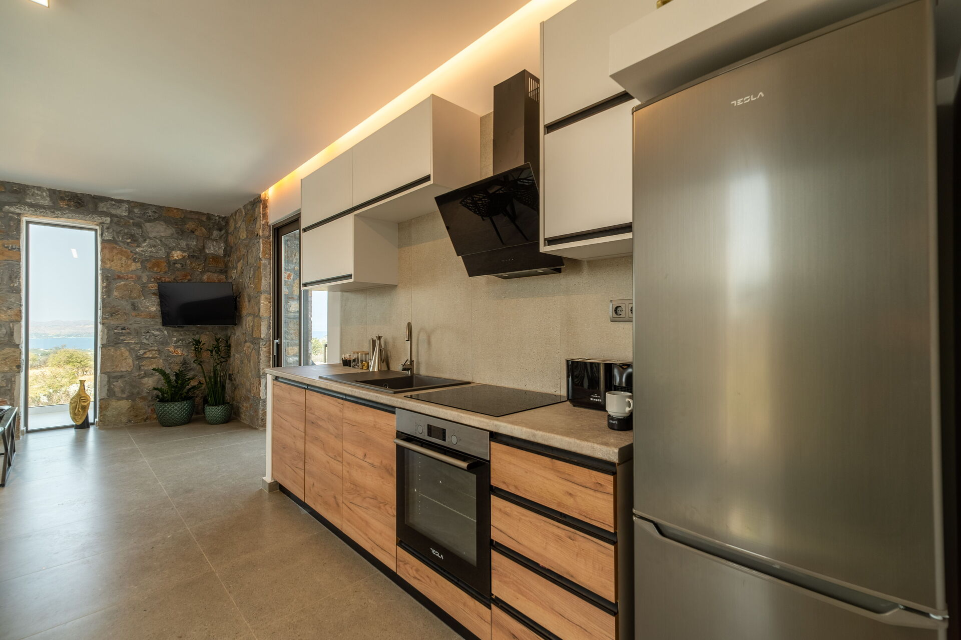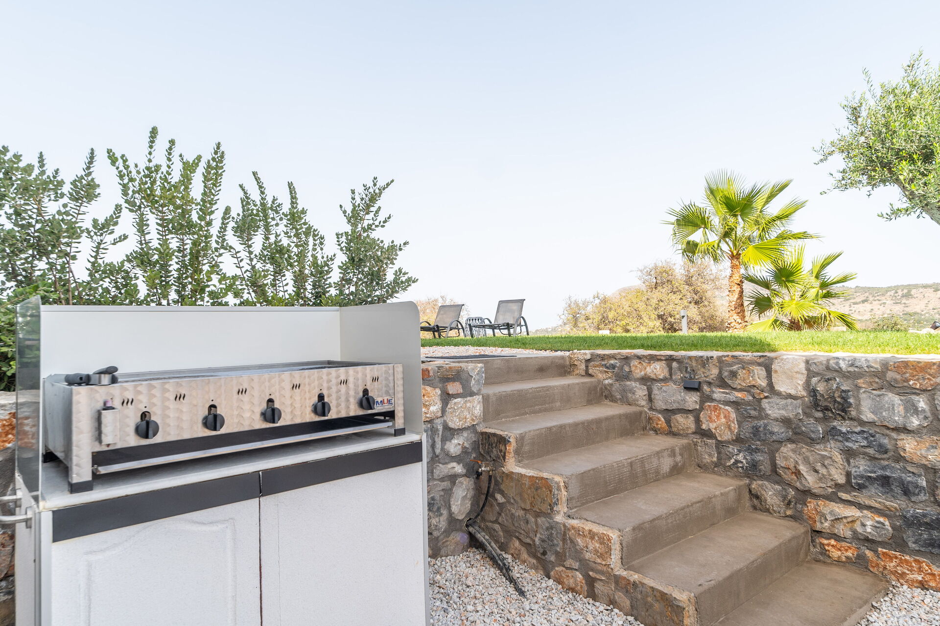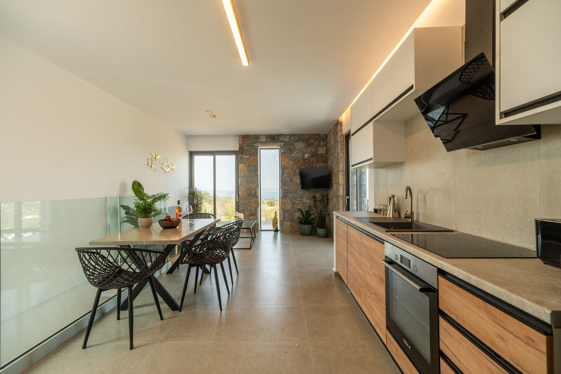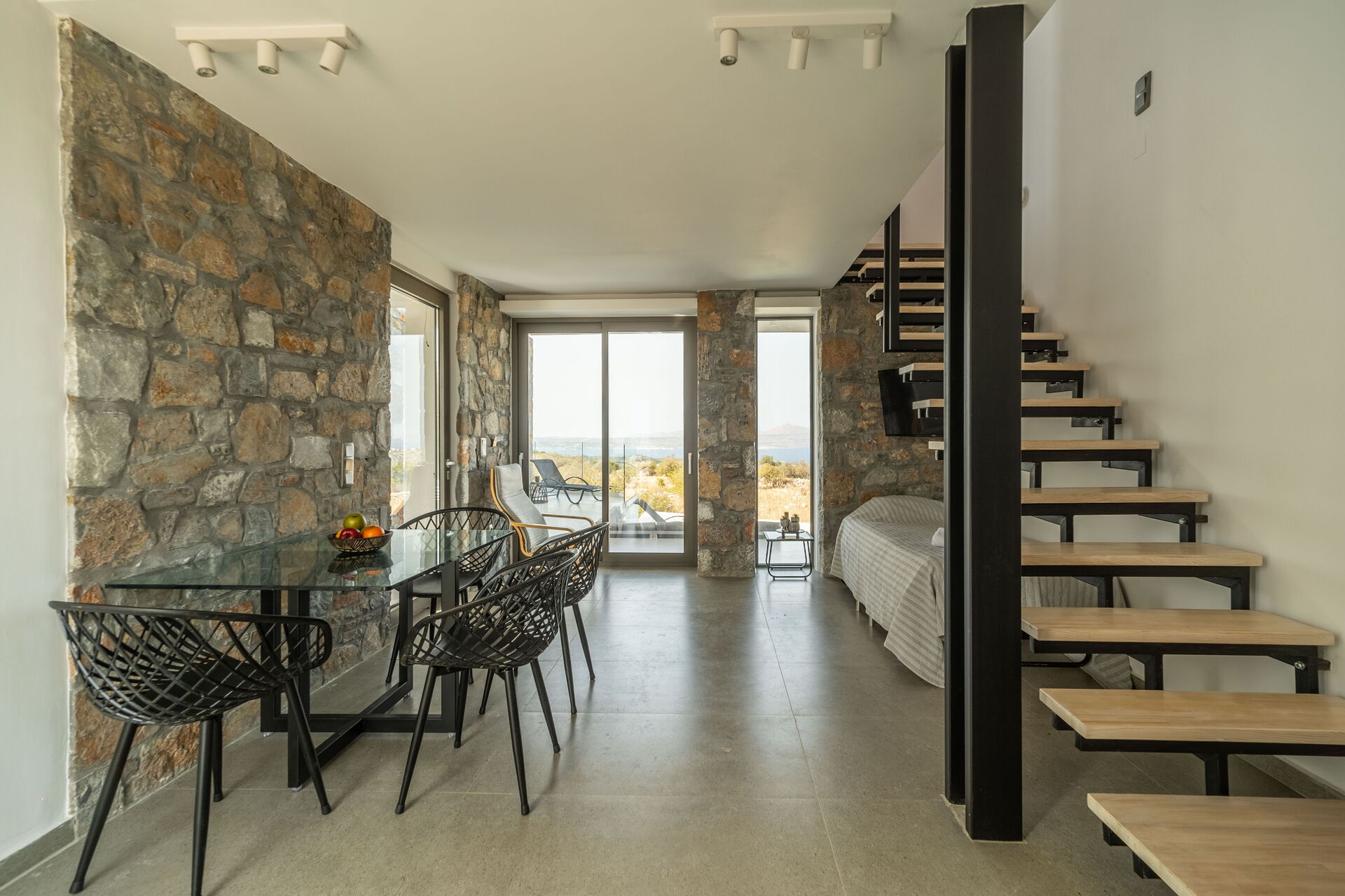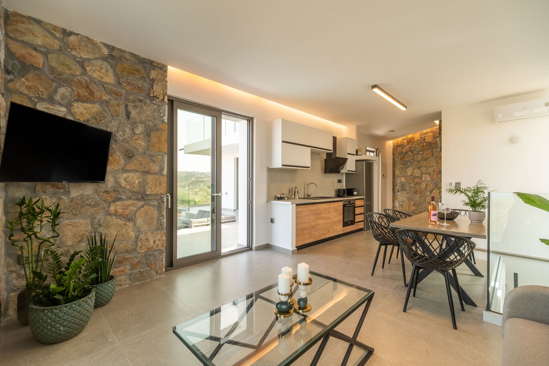 Outside there are a private pool with panoramic views, a hot tub, and a lovely outdoor dining area. The interiors are modern and very comfortable.