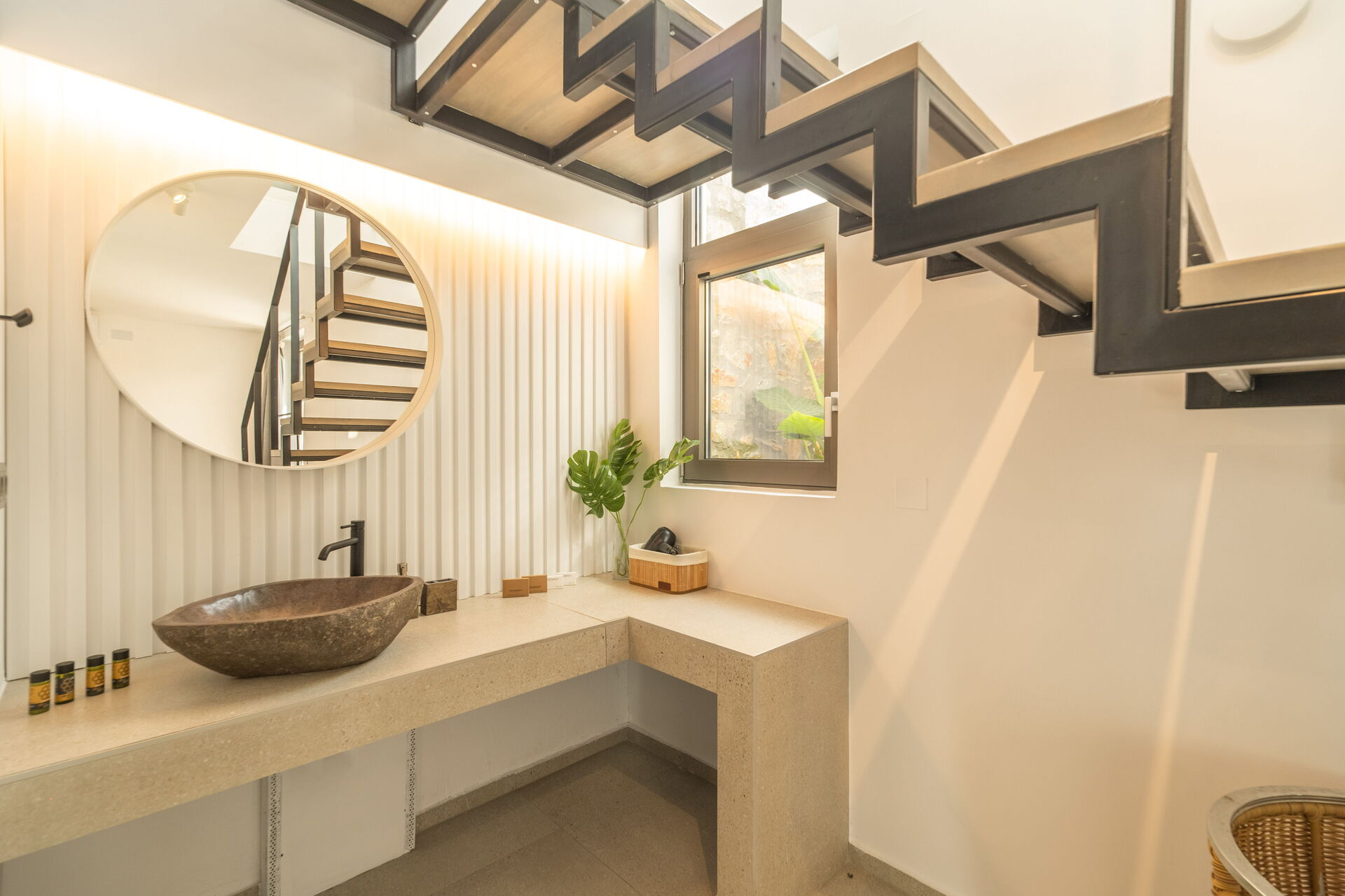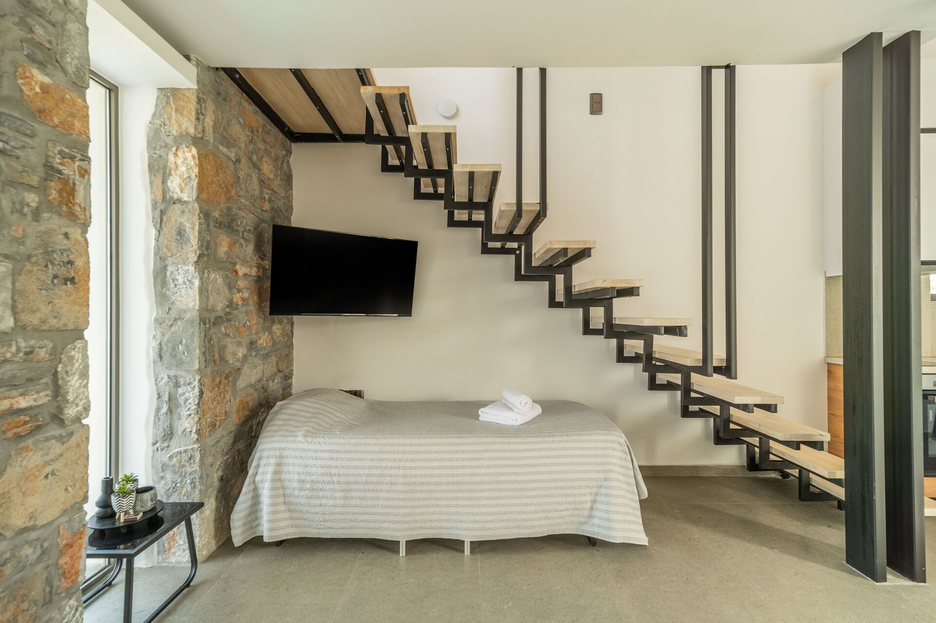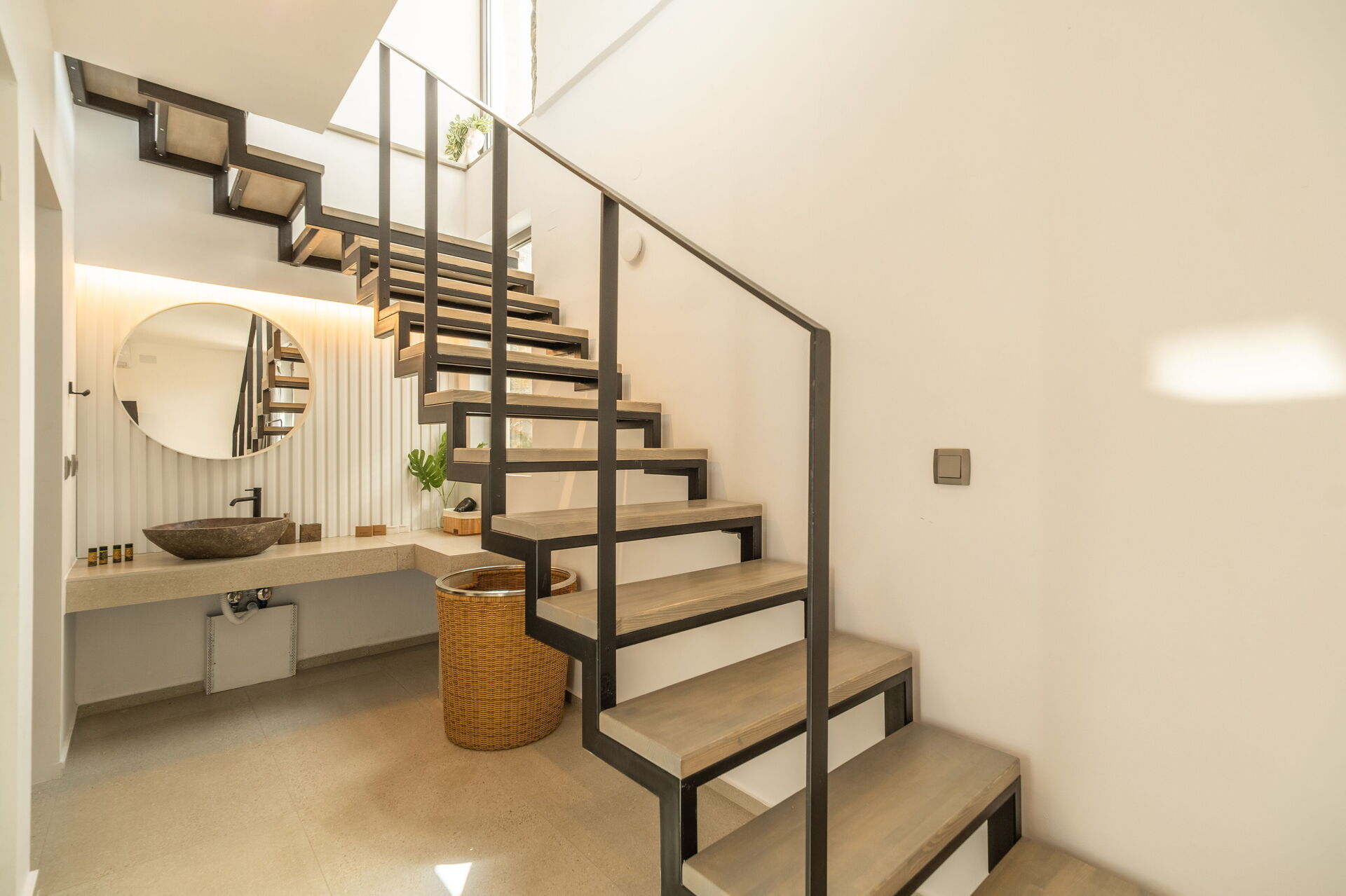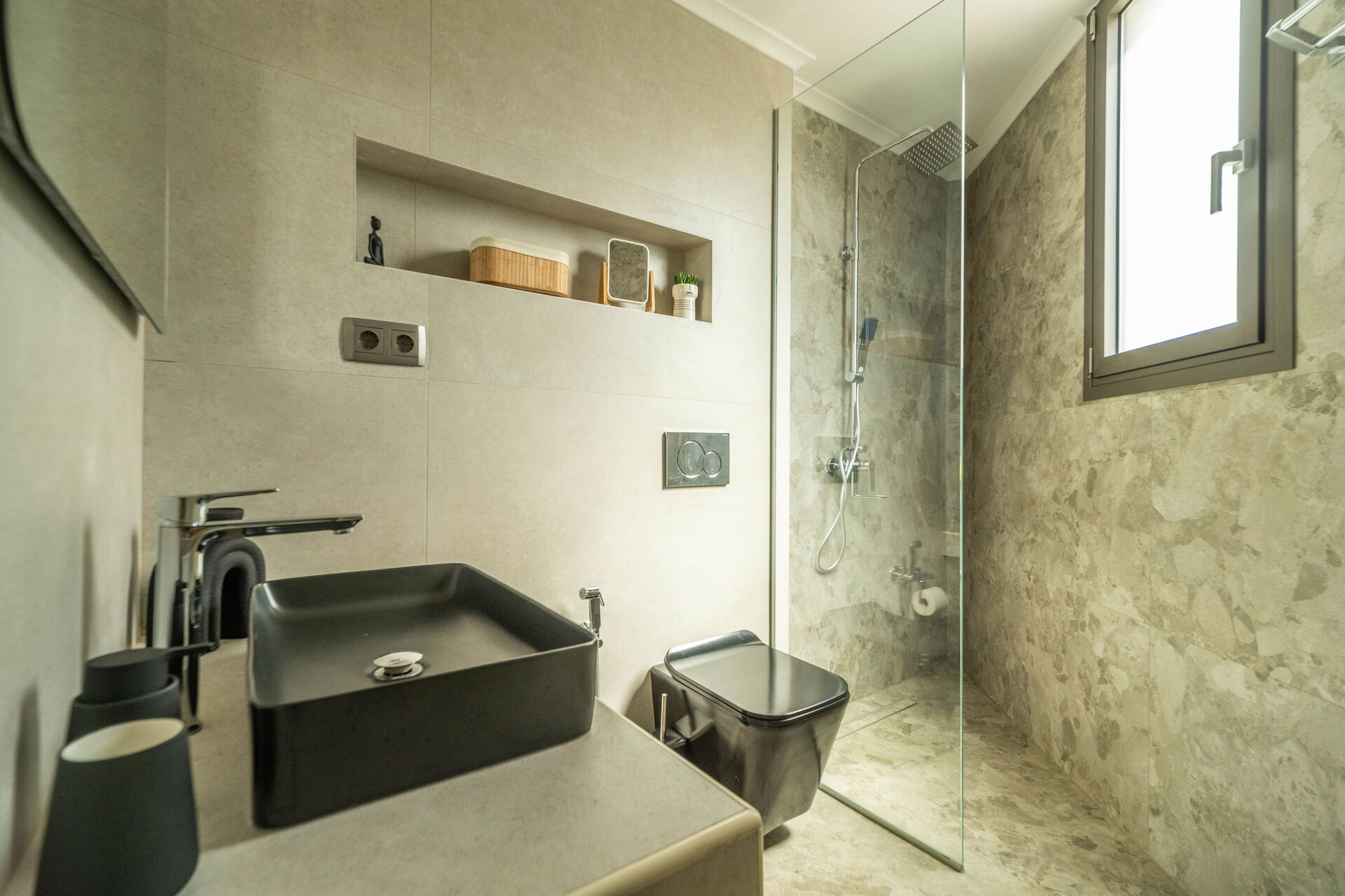 Lower floor (also has outdoor access): double bedroom with private bathroom with shower and space with a washing machine.