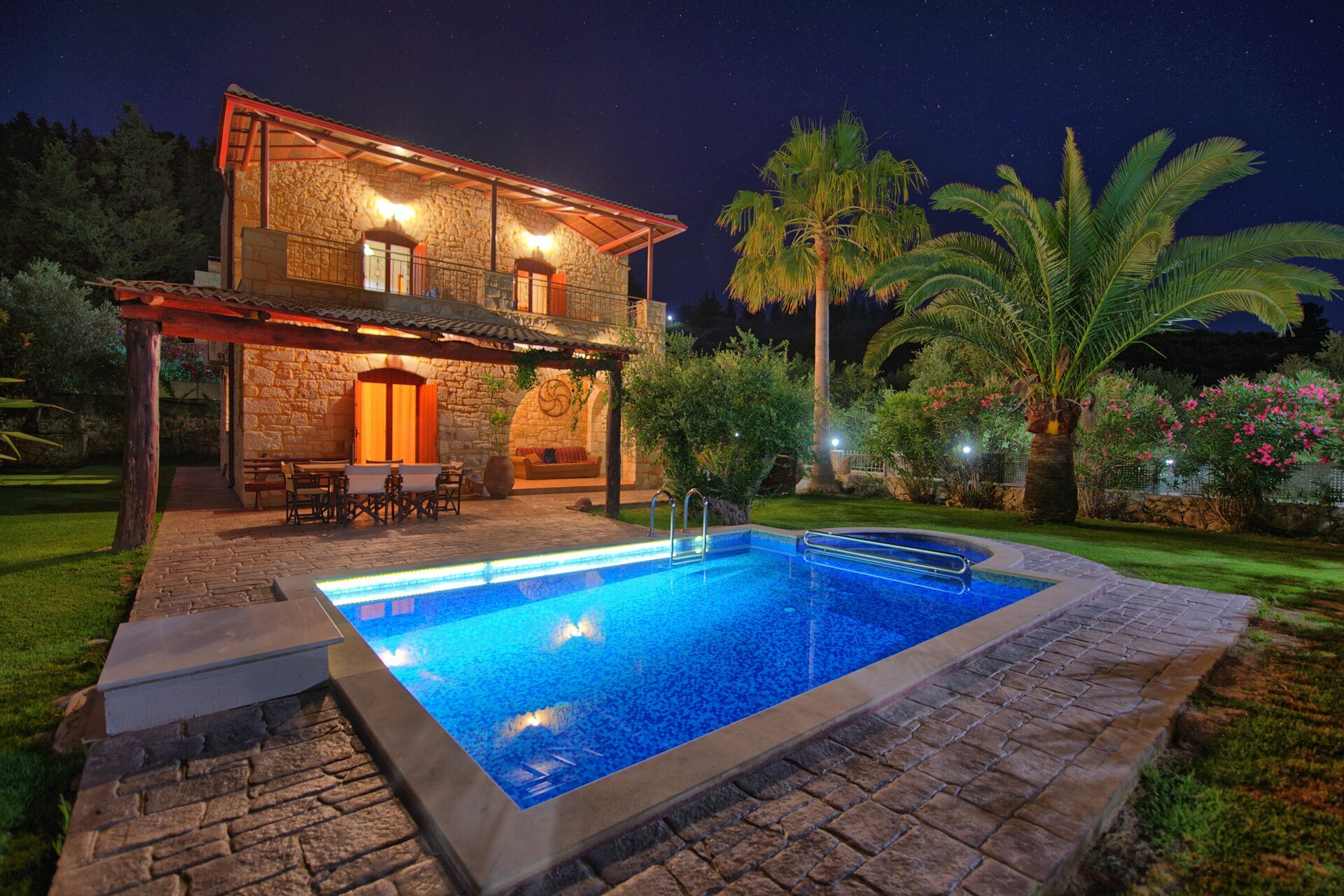 With 3 bedrooms, 2 bathrooms, fully air-conditioned rooms, private pool, spacious gardens and interiors finished in traditional style, Villa Vrisses is a truly perfect holiday home for up to 7 guests to enjoy all the Greek and Cretan hospitality.