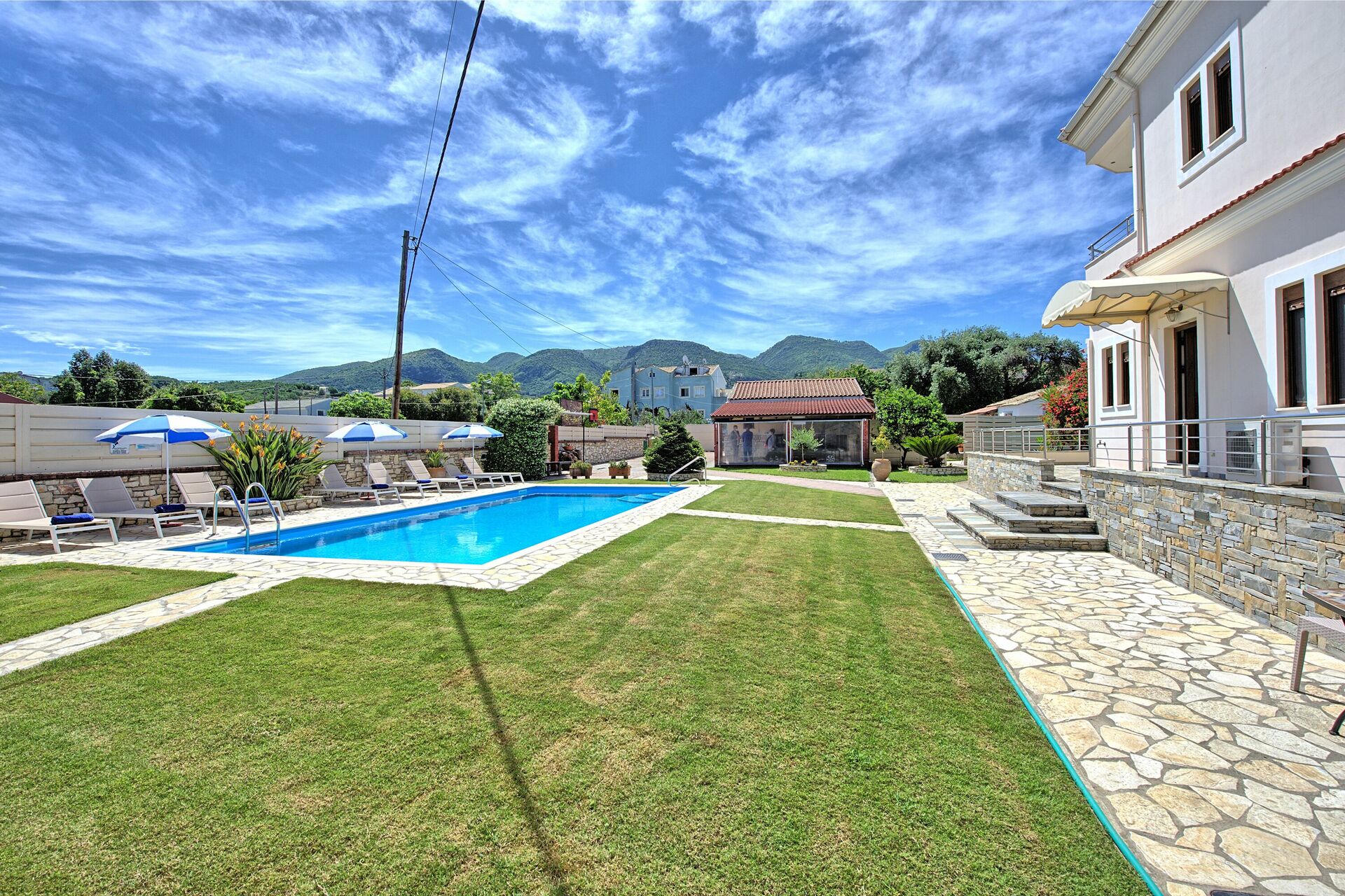 Beautiful Luxury Villa Rental with private swimming pool and extensive private terraces in Acharavi, one of the most demanding areas on the Island of Corfu, Greece.