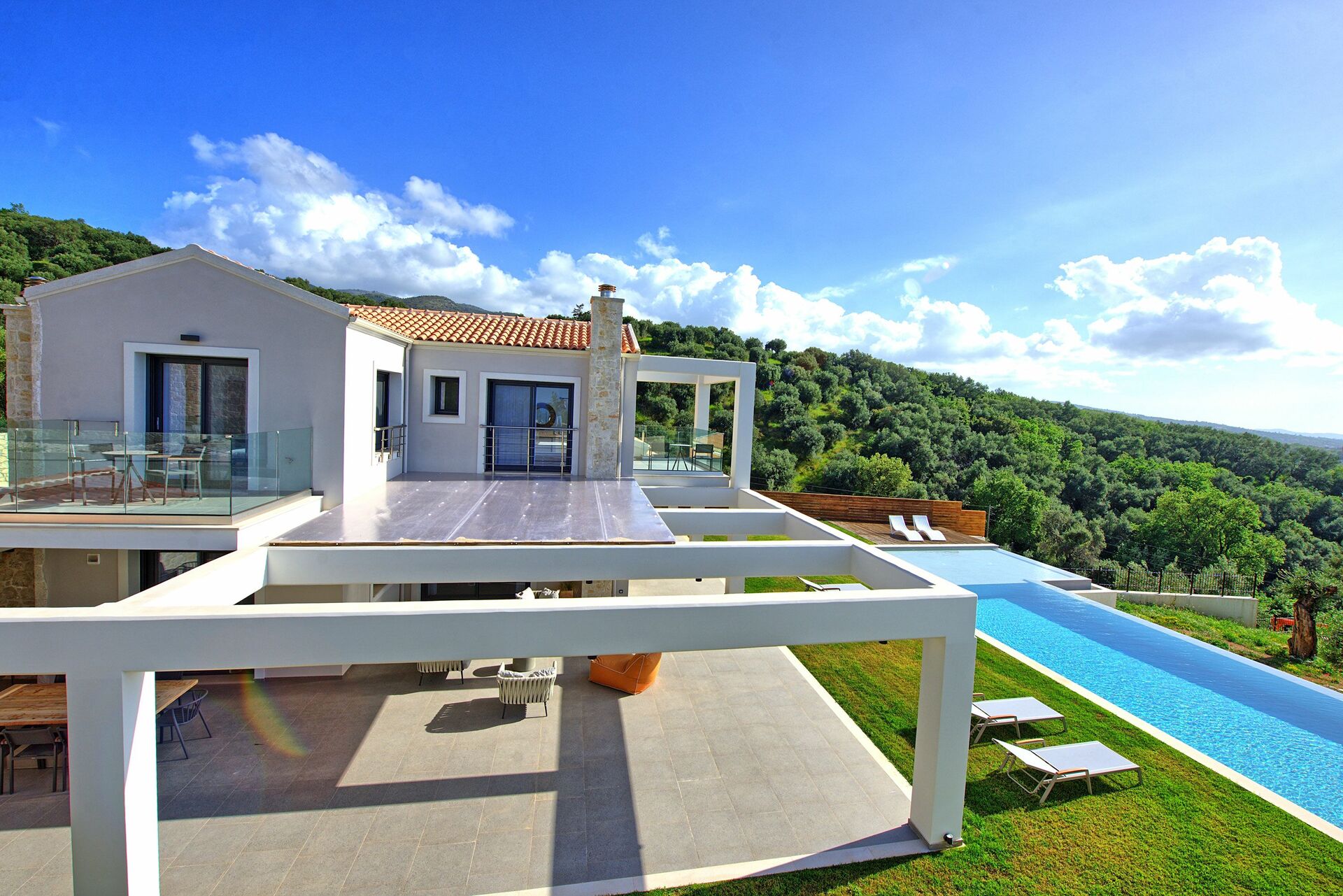 Stunning luxury villa with fantastic private pool and sweeping sea views, on Corfu between Kassiopi and Acharavi.