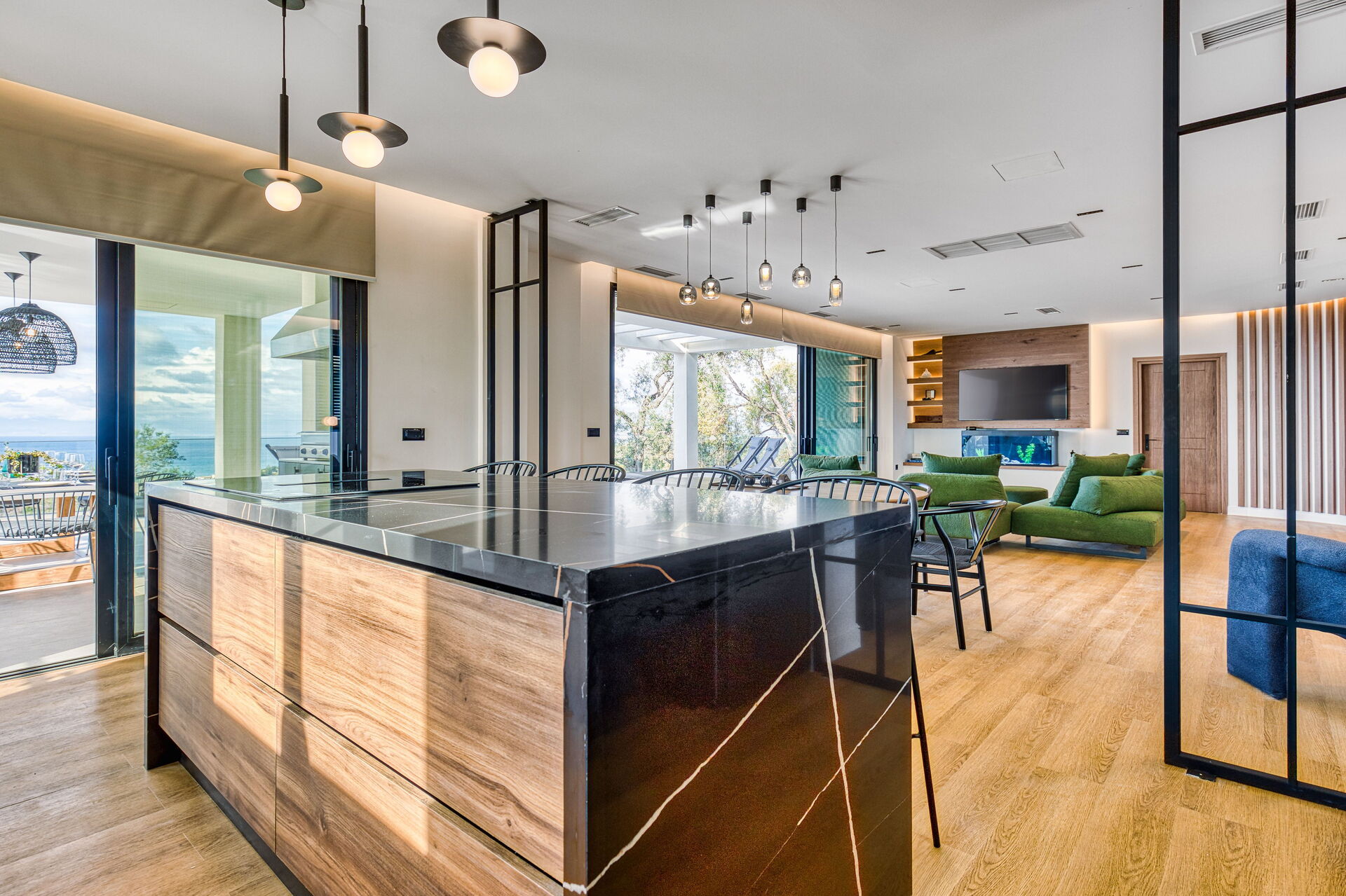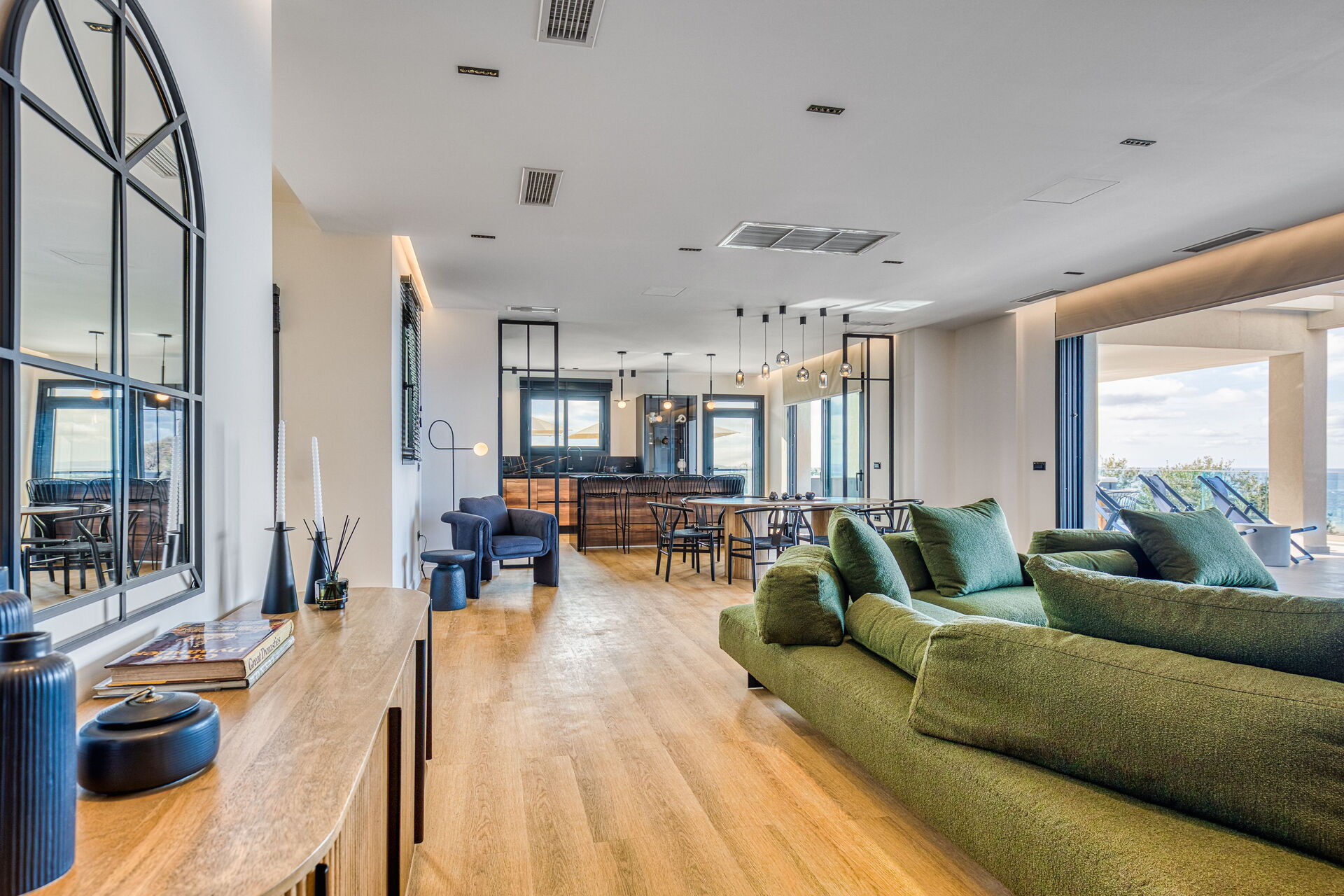 Construction was completed in February 2025, and Villa Dominante is one of the area’s most exclusive villas. Located on the northern coast of Corfu, it offers the setting for an unforgettable vacation with friends and family.