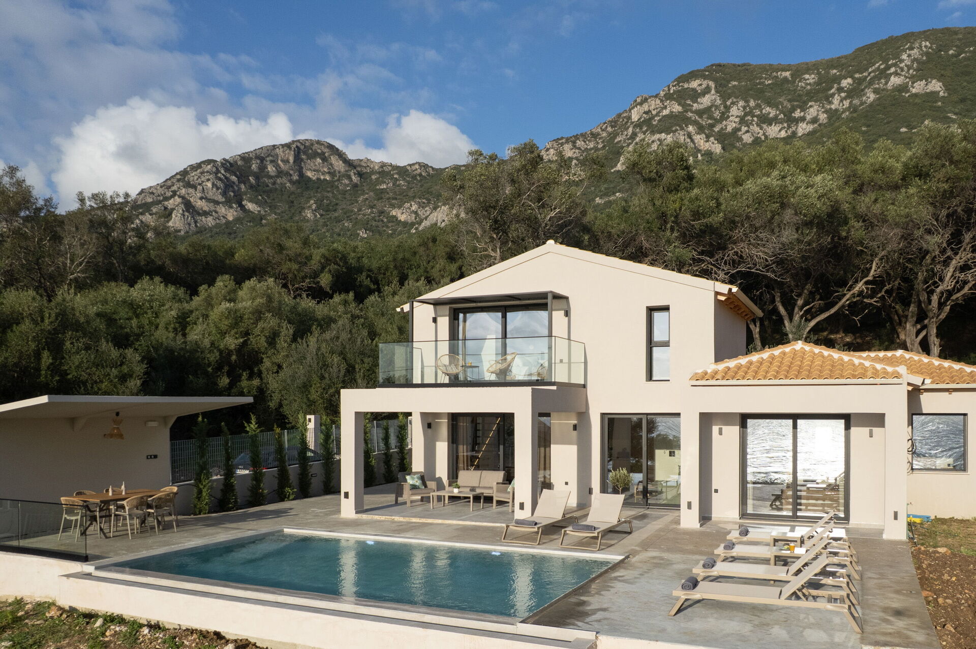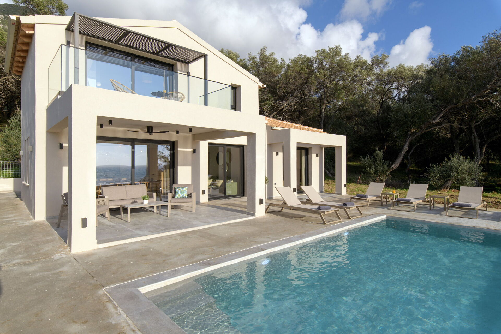 Villa Elais is a brand-new, exclusive designer villa just 100 meters from the sea in Corfu.