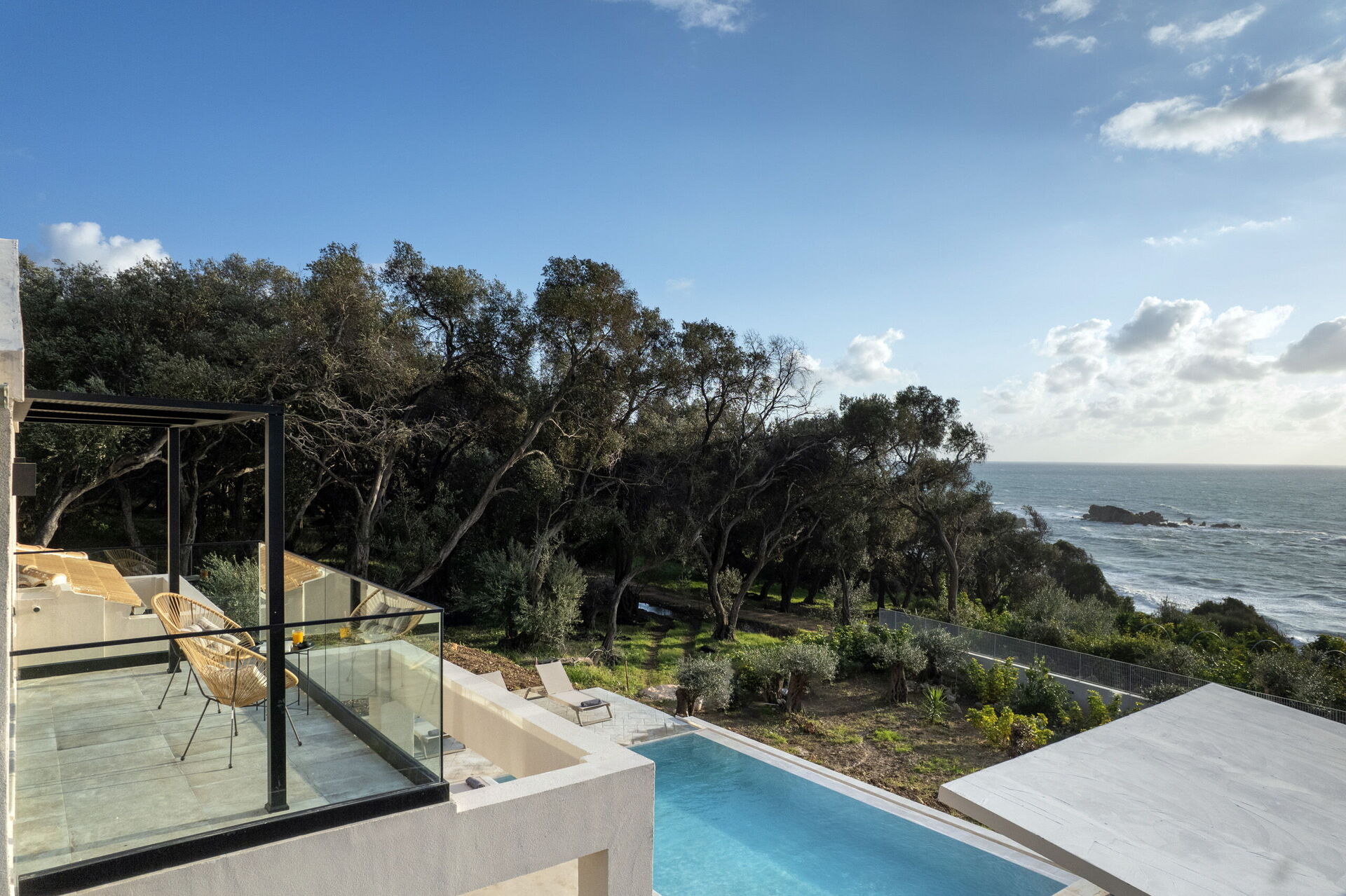 Discover Corfu’s timeless charm at Villa Elais, a pearl of contemporary architecture along the island’s evocative southwestern coast.