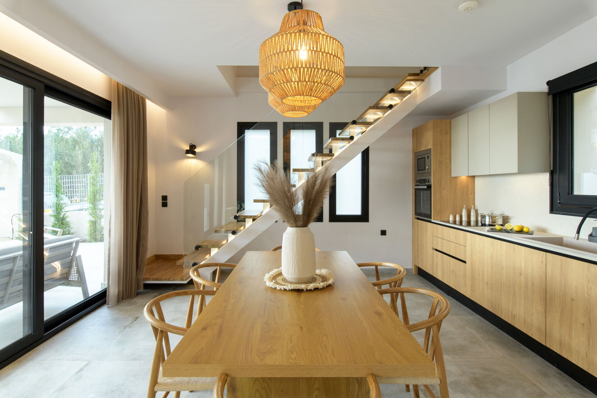 The heart of outdoor life here is the large pool area, designed with the whole family’s relaxation in mind. The outdoor area offers panoramic views and perfect corners for sunset dinners together, thanks to the barbecue area and furnished sunbathing area.
