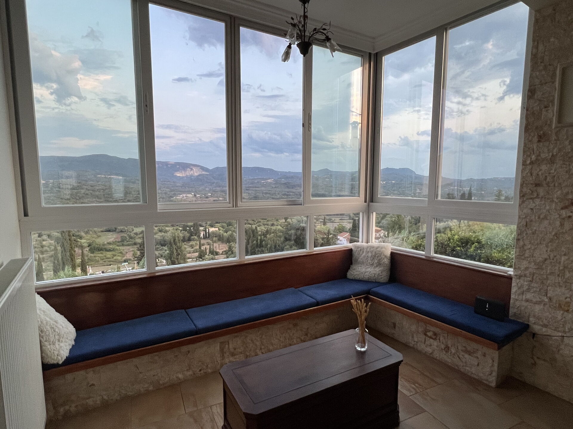 The views are outstanding and it’s a joy to sit on the balcony or in the window seat. It really is so peaceful. Lots of space and comfortable rooms. Thoughtful storage and fully equipped kitchen. The dishwasher is a table top one - felt a waste of electricity to run it so we washed old style!! Would be superb house for a larger family gathering. So much room so nobody is on top of anyone. The village was a bit remote from the areas we enjoyed to spend our time, but it’s a peaceful place to return to at the end of the day and the villagers are friendly and welcoming. Fanis is a lovely host, happy to help in any way, can offer to source you meat or fish and even let us try his own red wine from his vineyard. The village car park is safe for parking rather than using the space outside the villa - unless you rent a tiny car or have full insurance to limit the risk of any knocks. The road is narrow as expected and the locals are so used to them dashing up and down but for visitors they take a little getting used to. There is a village mini shop for breads, milk and juices etc. Doukades is not too far away and has some lovely restaurants. Agios Gordios was our favourite beach. So relaxing and friendly. I would recommend some seat pads for the outside dining table. We’re tall and even for us the chairs are too low for the table height. lots to like about this villa - We had a great stay here. Fanis is welcoming, warm and friendly. Helpful and delightful to his guests.
