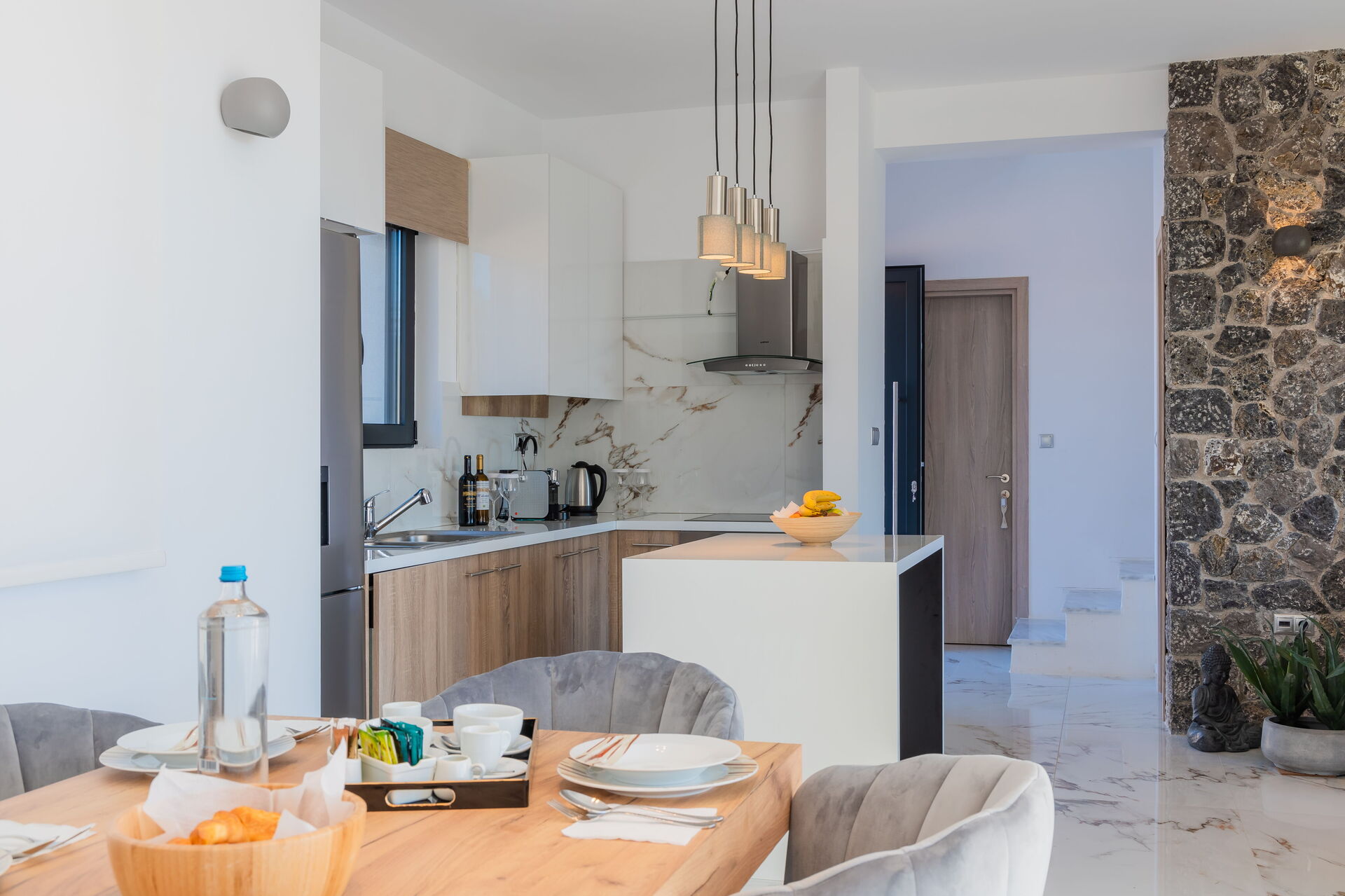 I have given 5 stars for Greek villas before but this one would deserve even more if I could. It has everything you can ask for, 3 luxurious designed rooms with a bathroom each, nice sea view and a wonderful outdoor space. The kitchen is equipped with everything you need including salt, pepper and other things for cooking.