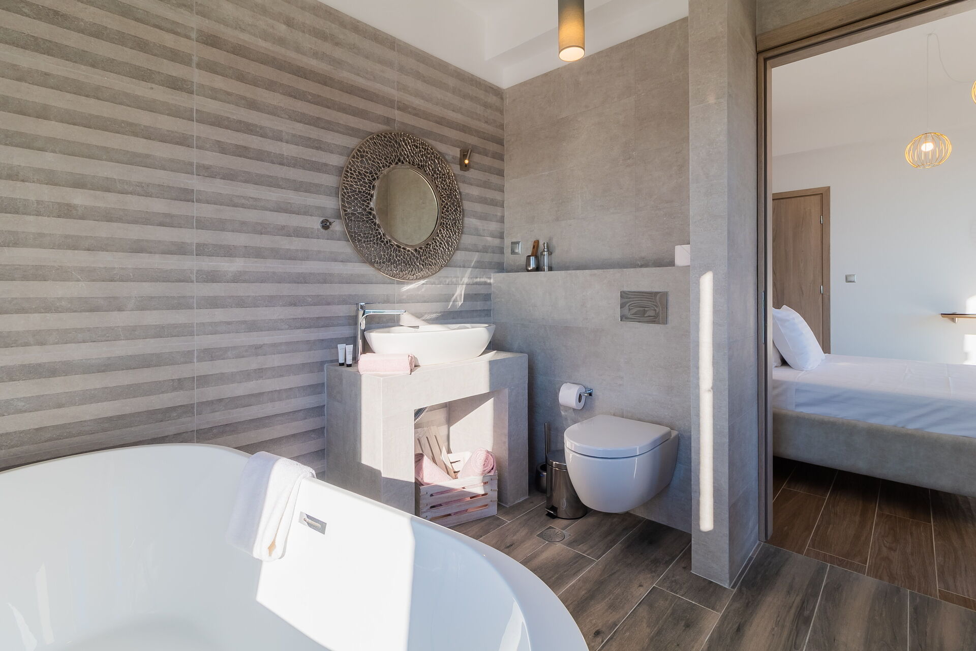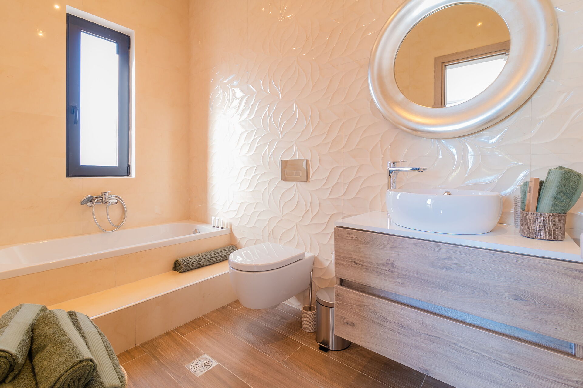 It is a peaceful private countryside location with breathtaking views . Yes it is described beautifully but nothing prepares you for how beautiful the view and villa is . Lovely modern bathrooms, Great quality fittings